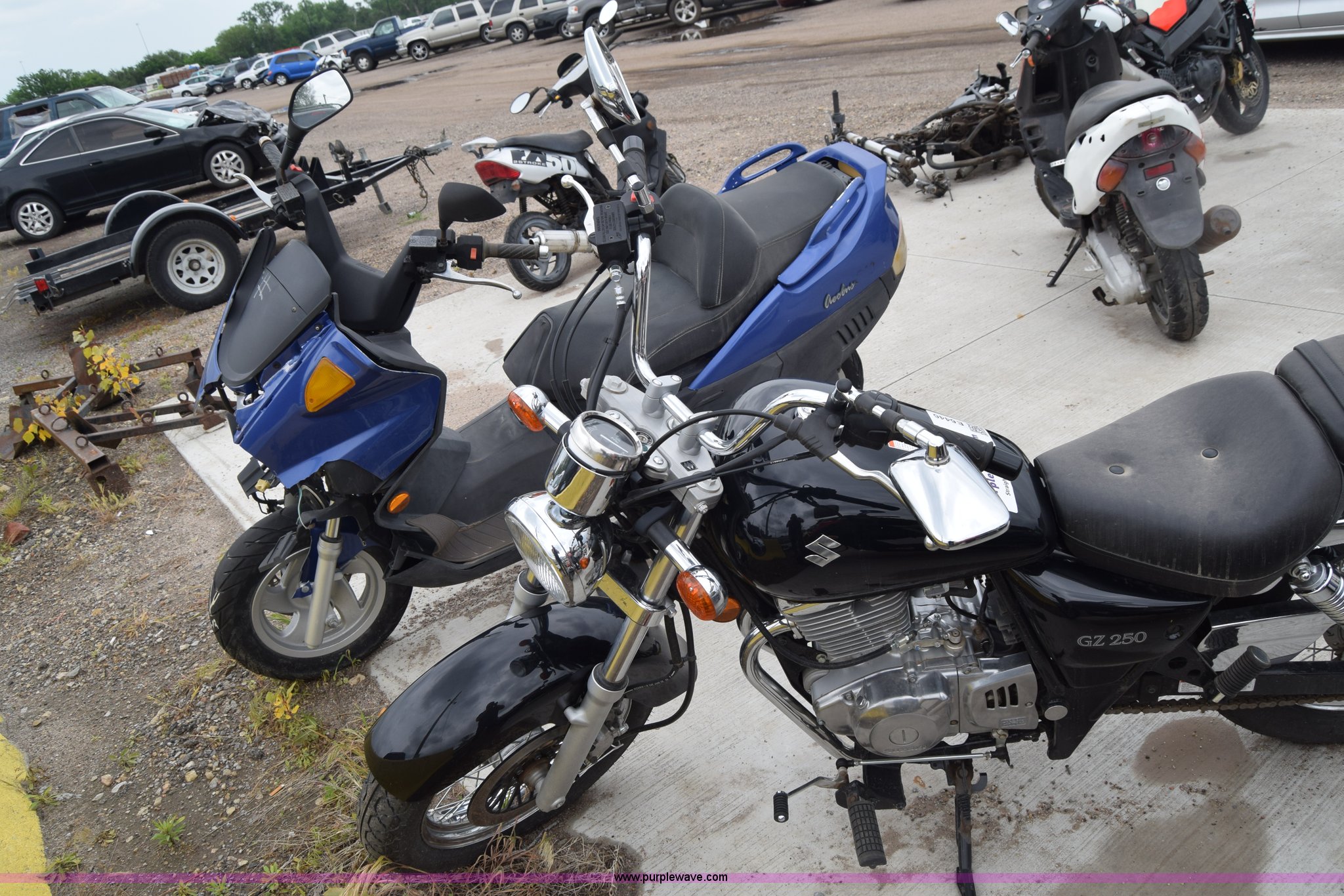 2009 Suzuki GZ250 motorcycle. 29 miles on odometer Actual mileage unknown, 249cc gas engine, Manual transmission, 110/90-16 front tire, 130/90-15 rear tire, Case# 11C028216. Title history is unknown.. Buyer will be required to obtain a motor vehicle inspection from the Kansas Highway Patrol prior to titling. Motor vehicle inspections are by appointment only. Winning bidder will need to contact the Kansas Highway Patrol to make arrangements following the auction.. Vehicle is abandoned. Condition and history are unknown. No additional information is available. Vehicle does not have keys unless notated otherwise in the item listing.. View City Of Wichita Terms for title acquisition and item removal requirements.. VTTNJ48A092100959. Happy Hooker Towing & Transport. 3760 South Broadway. Wichita, KS 67216