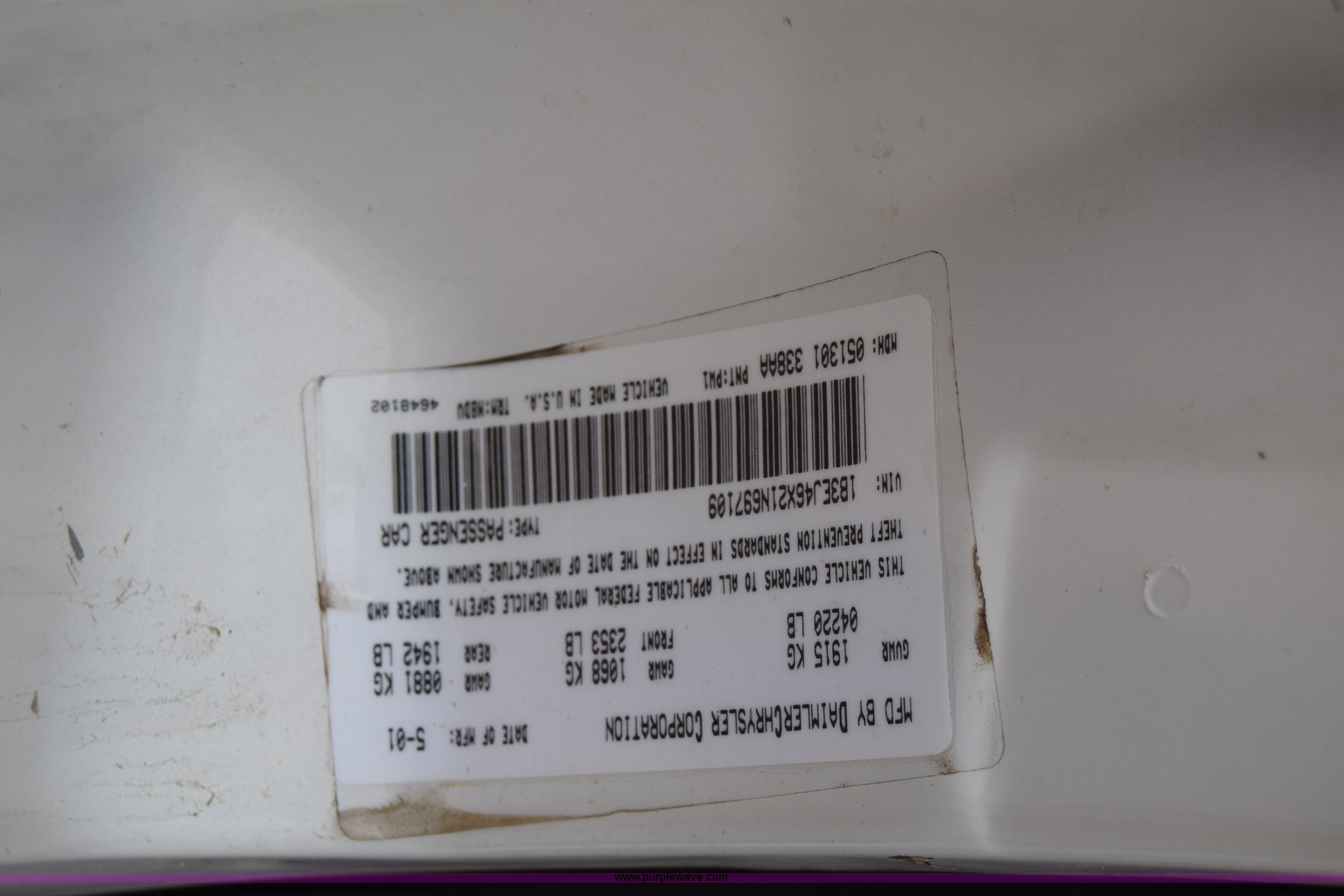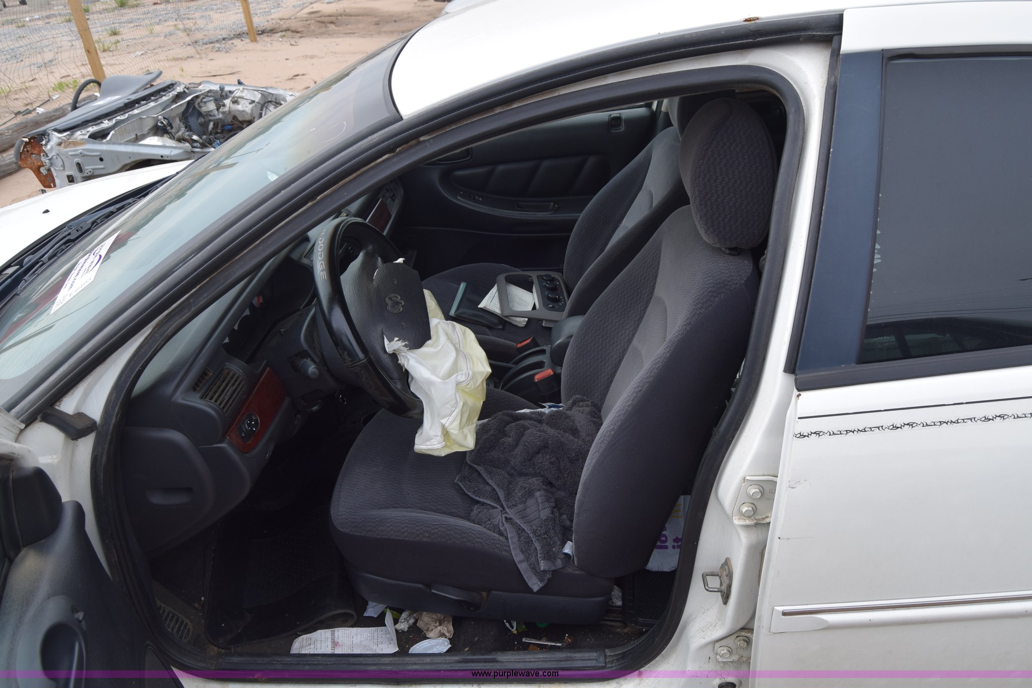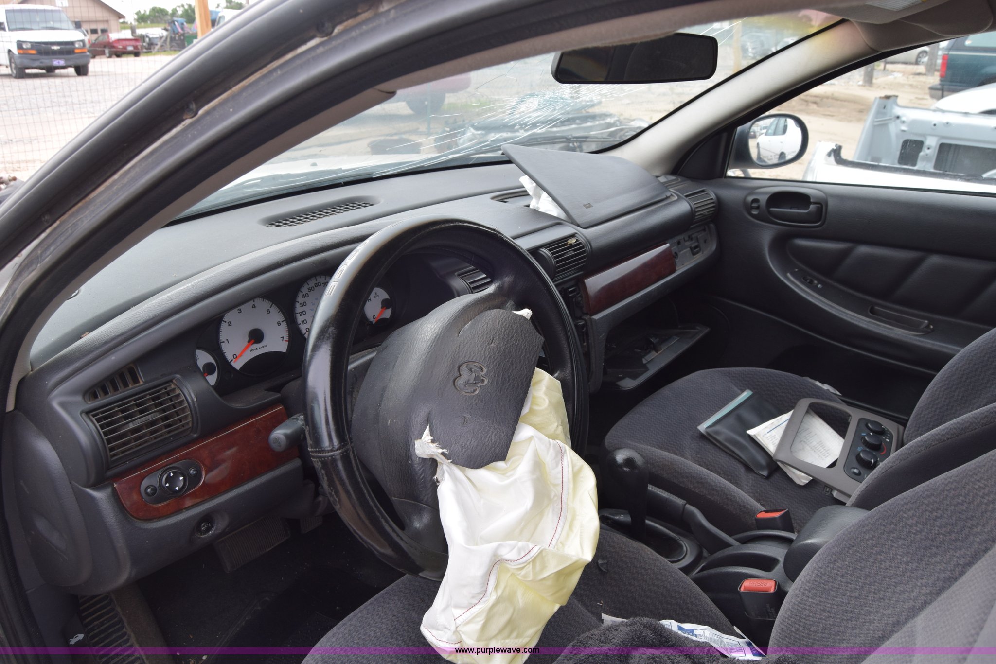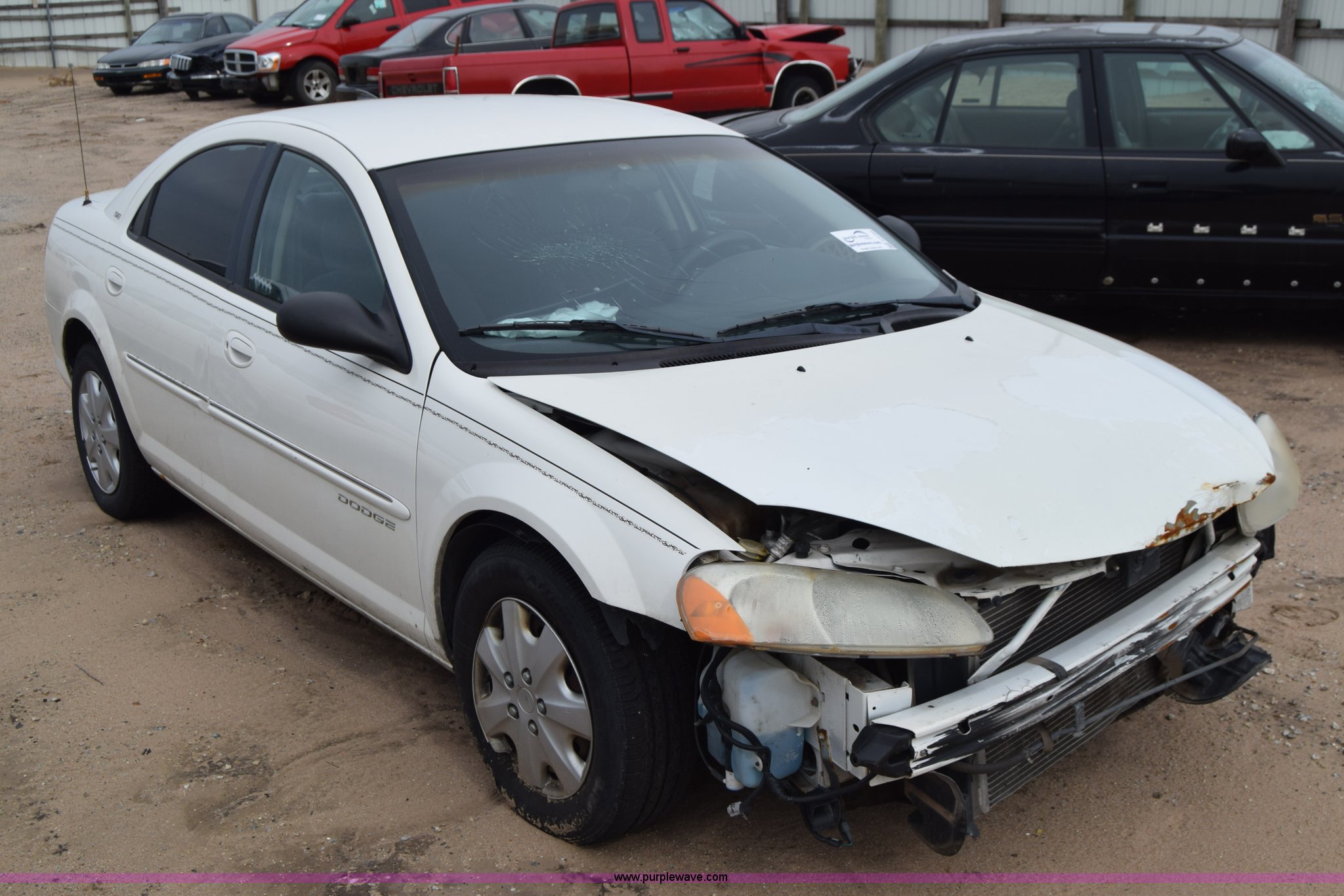 Purple Wave is selling a used Passenger Vehicle in Kansas. This item is a 2001 Dodge Stratus SE with the following: Unknown miles on odometer, 2.4L L4 DOHC 16V gas engine, Automatic transmission, AC and heat, Tilt, Cruise, Power windows, locks, and mirrors, Cloth interior, 205/65R15 tires, Substantial front end damage, Air bags deployed, Front bumper missing, Interior/exterior cosmetic damage, Dents and scratches, Radio missing, Case# 15C018563