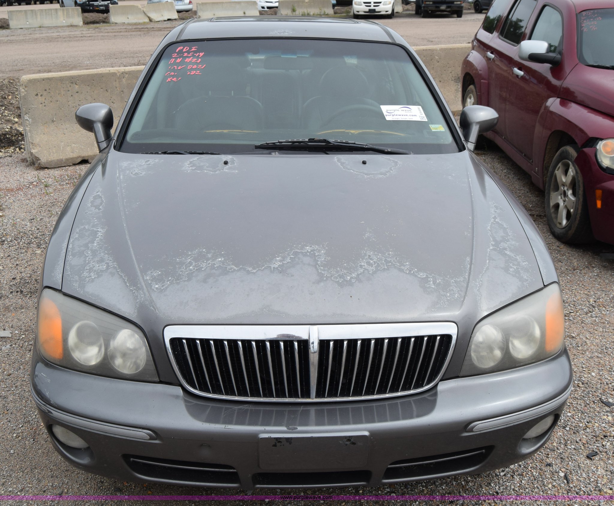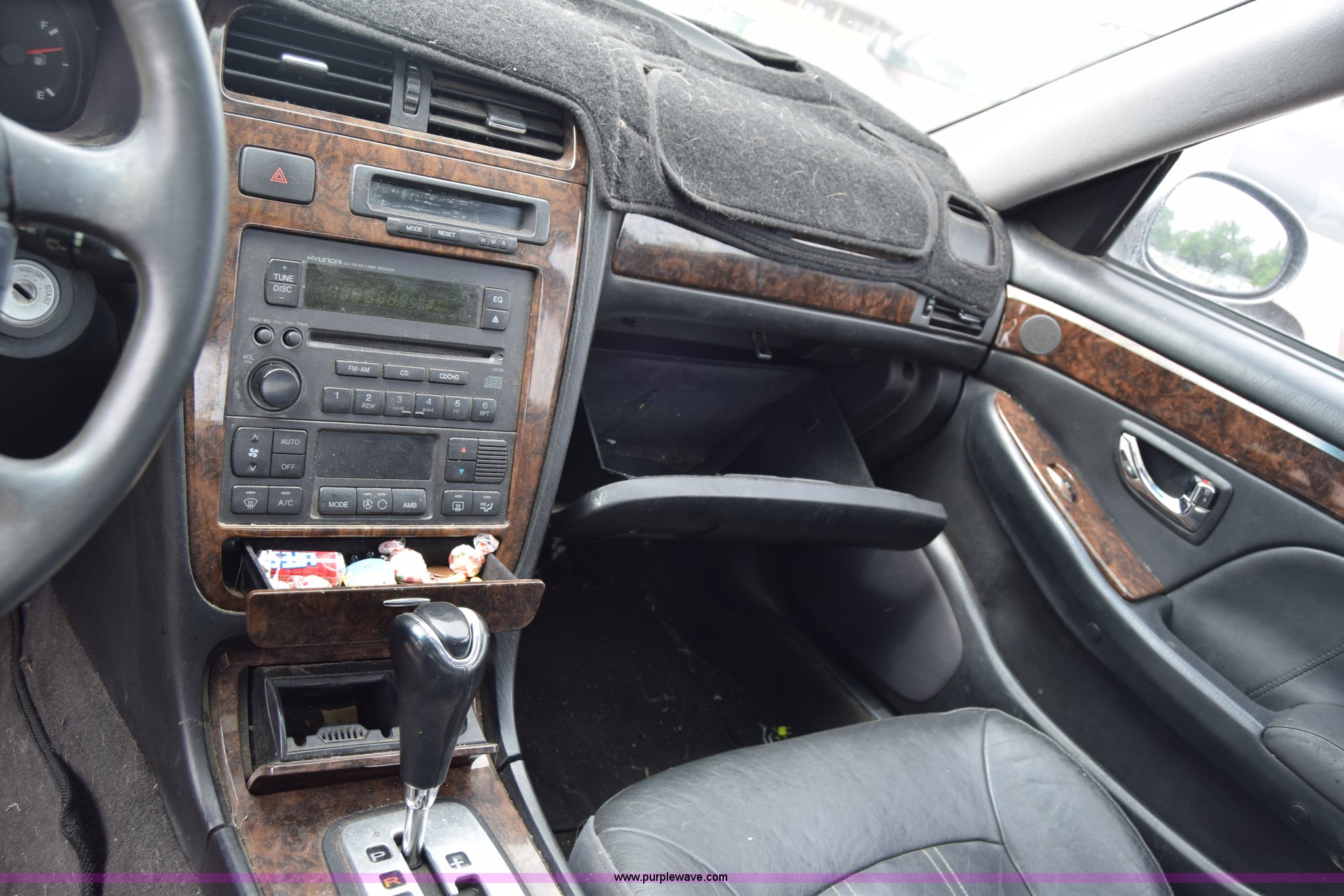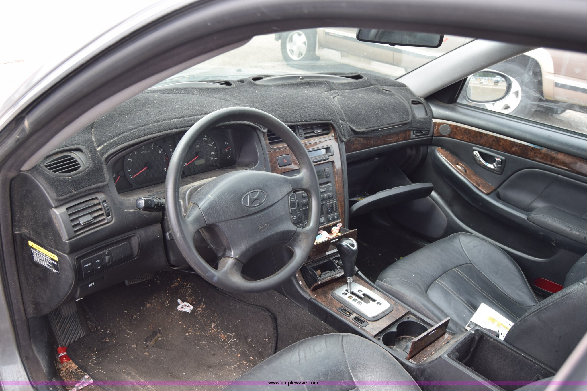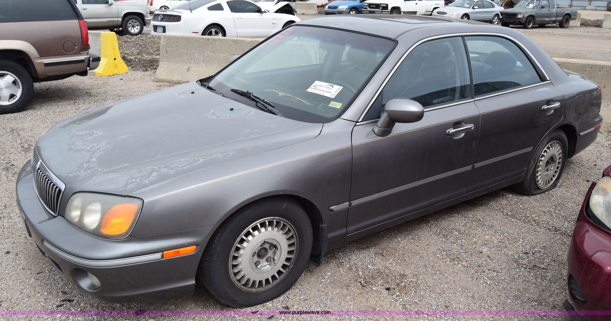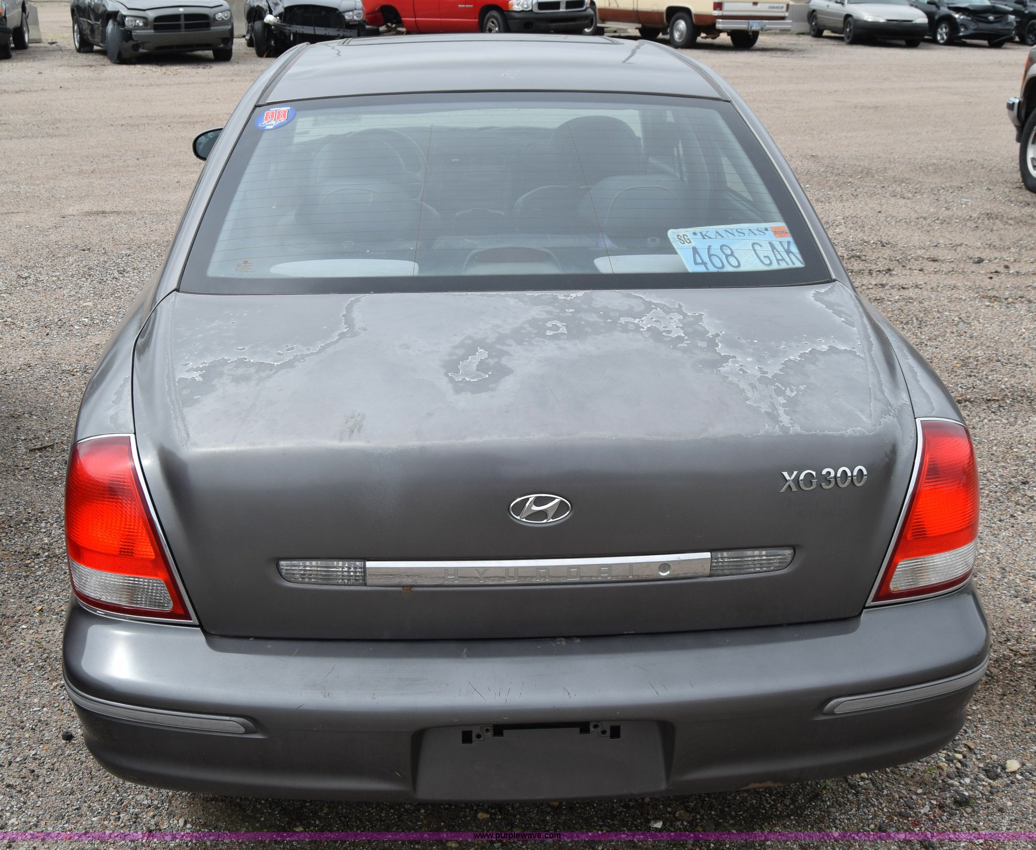 Purple Wave is selling a used Passenger Vehicle in Kansas. This item is a 2001 Hyundai XG300 with the following: Unknown miles on odometer, 3.0L V6 DOHC 24V gas engine, Automatic transmission, AC and heat, Tilt, Cruise, AM/FM/CD, Power windows, locks, and mirrors, Vinyl interior, Sunroof, 205/65R15 tires, Hood will not open, Interior/exterior cosmetic damage, Dents and scratches, Rust, One tire flat, Paint faded, Contents included, Case# 15C12172