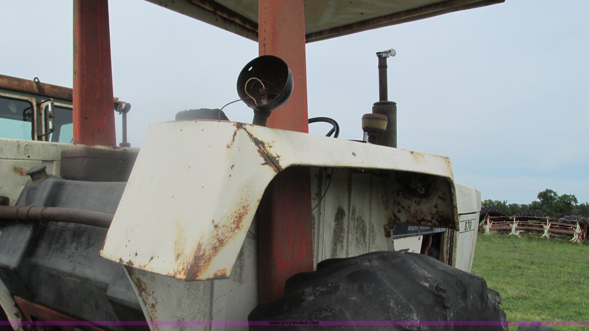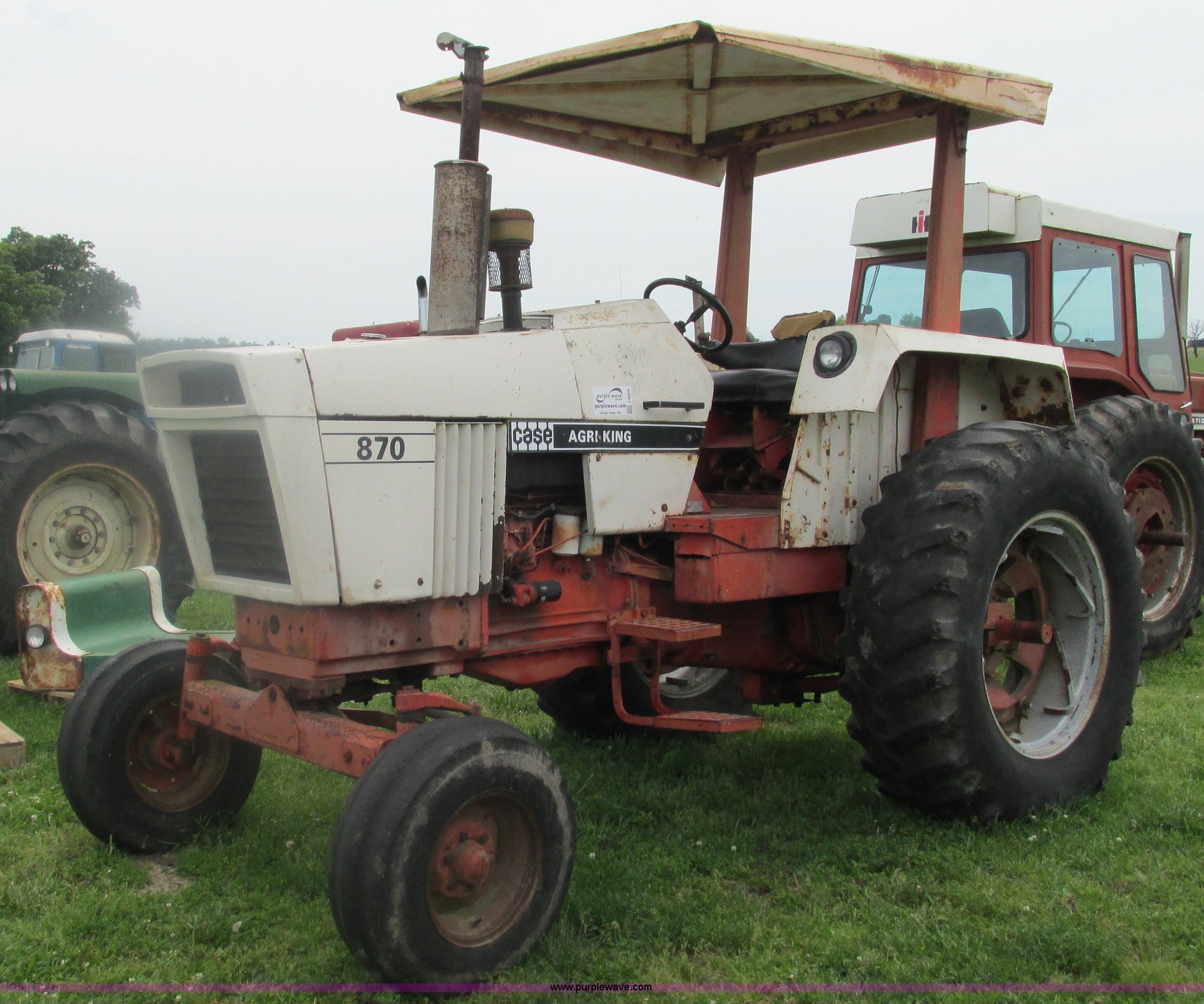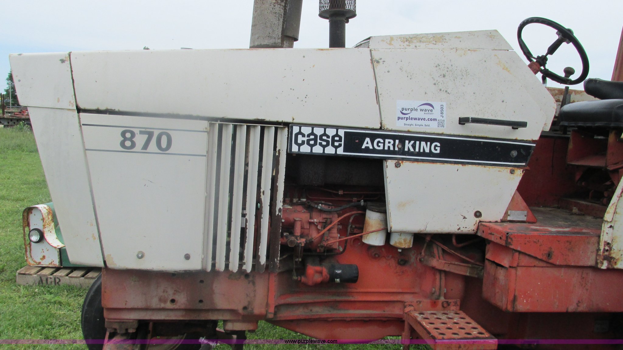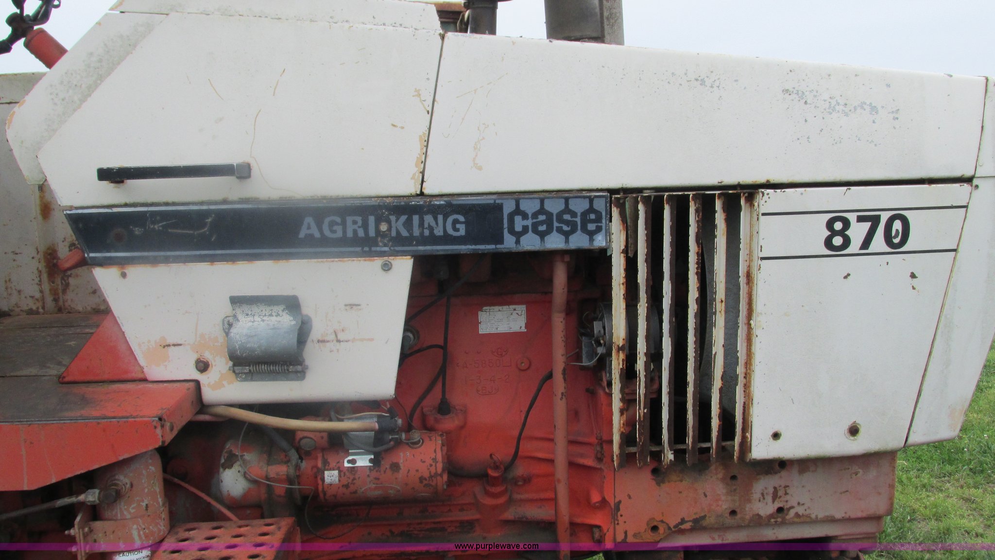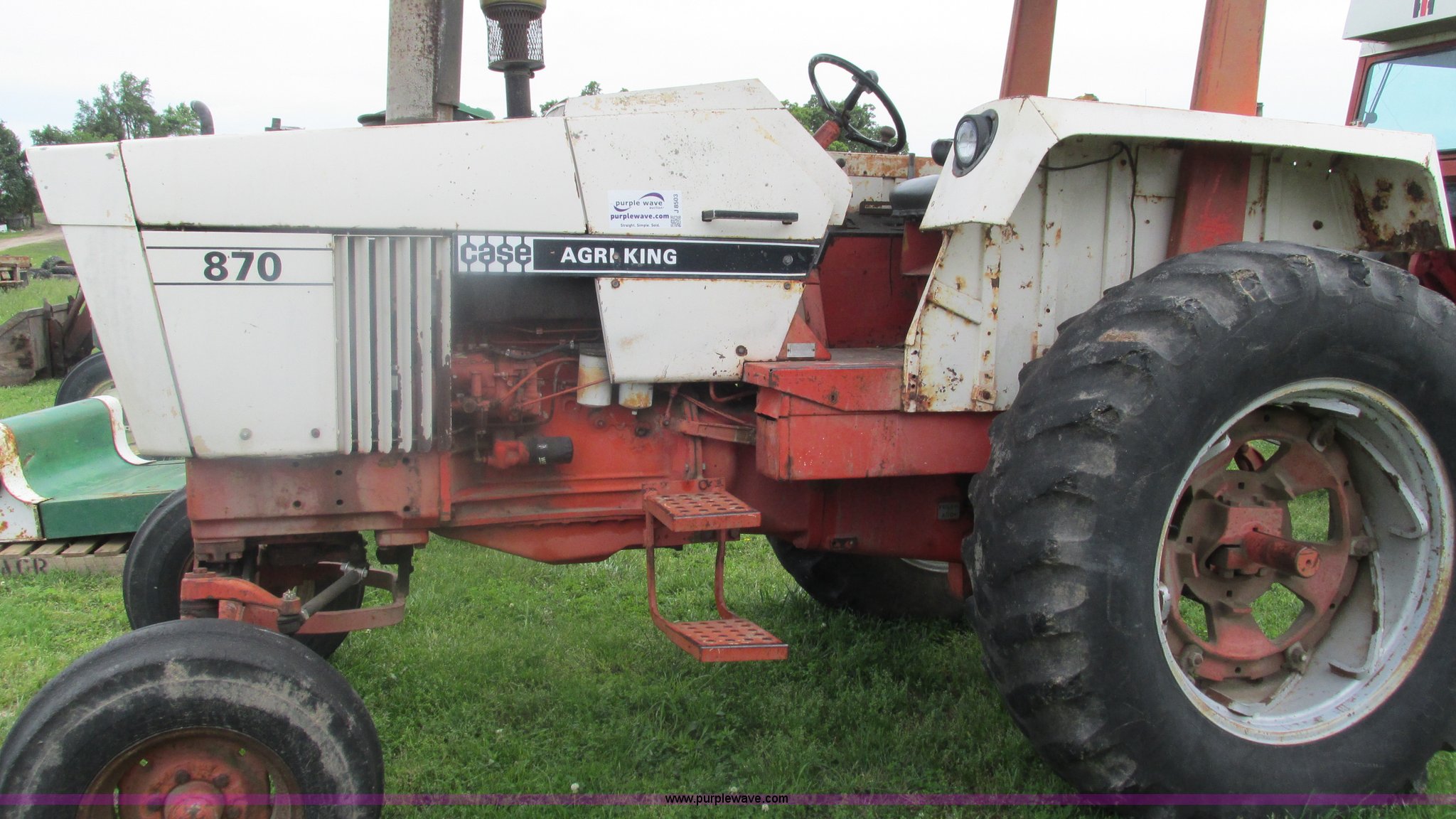 Purple Wave is selling a used Tractor in Missouri. This item is a Case 870 tractor with the following: 4,105 hours on meter, Cummins A301BG diesel engine, Manual transmission, 8F-2R gears, Canopy, Suspension seat, Three point, 540 PTO, (2) rear hydraulic remote sets, 18.4-34 rear tires, Rust, Serial 8684214