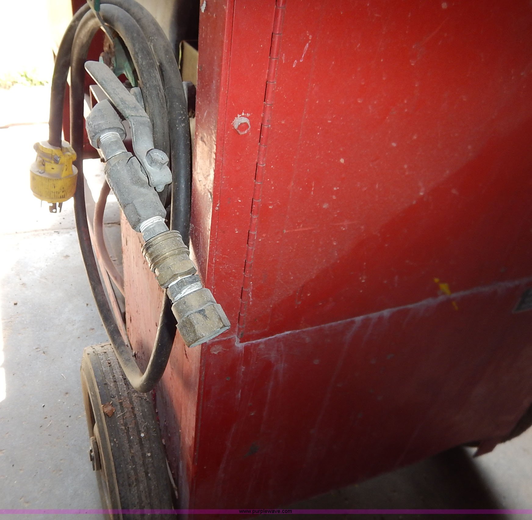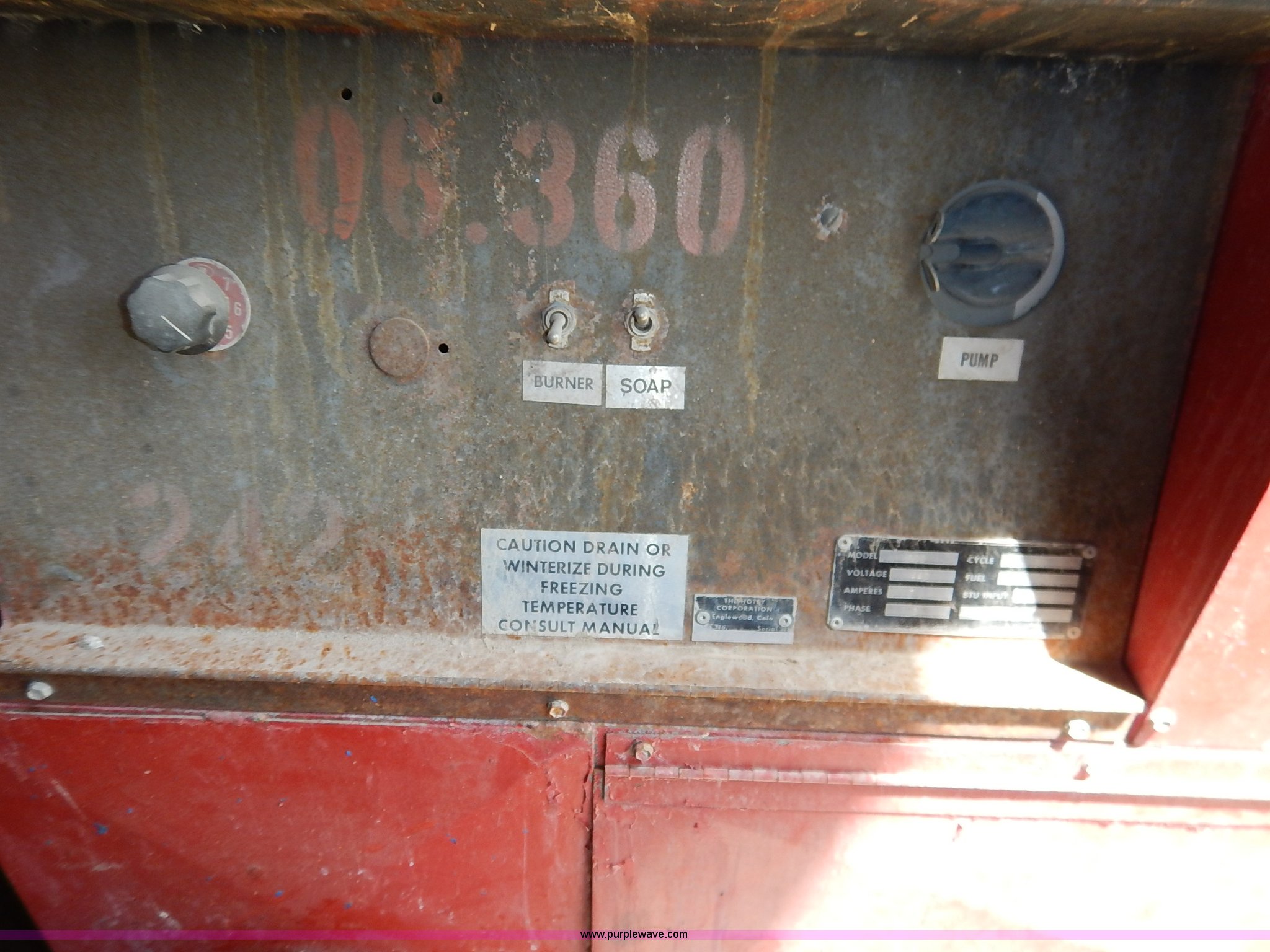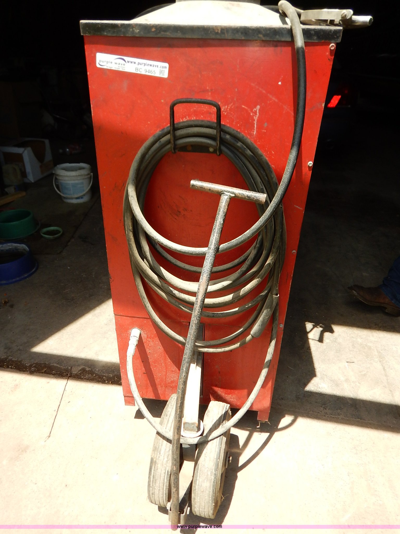 Purple Wave is selling a used Pressure Washer in Kansas. This item is a Hotsy 900 pressure washer with the following: Hose and wand, Quick attach water coupler, 440/220V, Three phase, 420,000 BTU input, Oil fired, Serial 52977