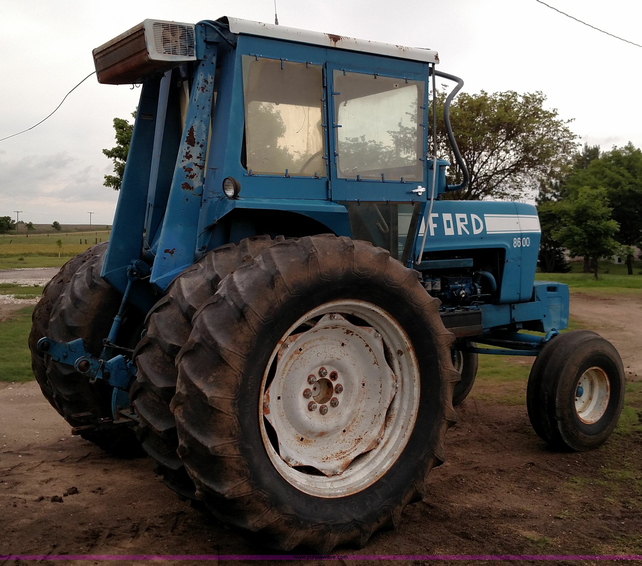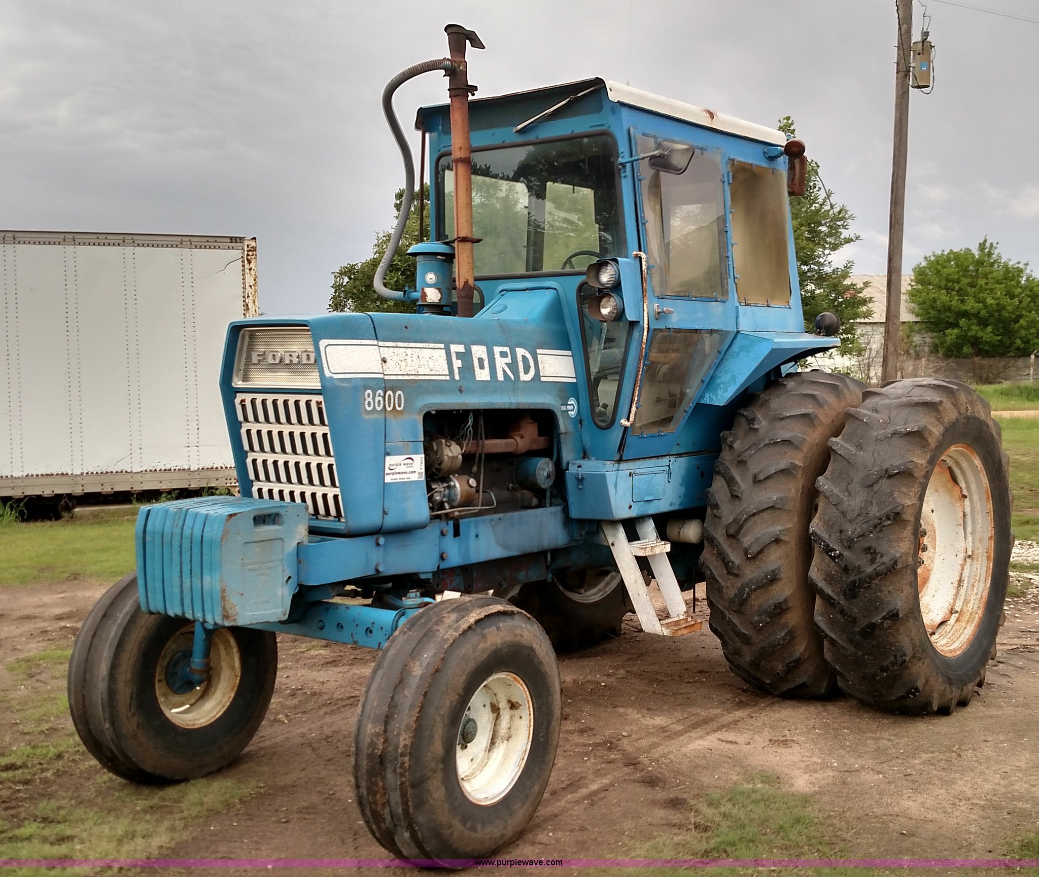 Purple Wave is selling a used Tractor in Kansas. This item is a Ford 8600 tractor with the following: 8,885 hours on meter, Ford six cylinder diesel engine, Manual transmission, 8F-2R gears, Enclosed cab, Suspension seat, Three point, Draw bar, (2) rear hydraulic remotes, (9) suitcase weights, Rear wheel weights, 11.00-16 front tires, 18.4-38 rear tires, Recently replaced battery, Hi-side of dual power will not engage, Serial X8868