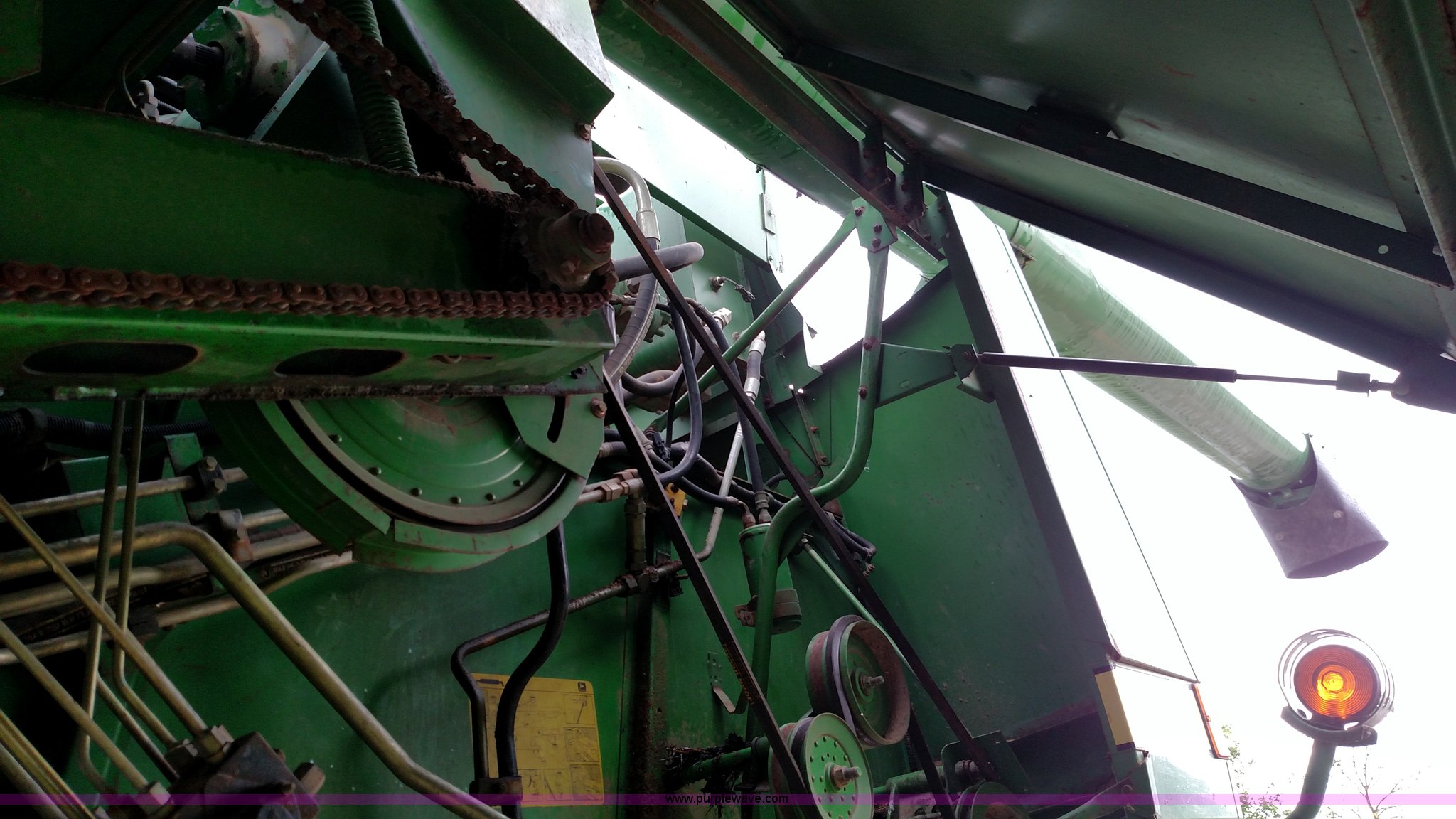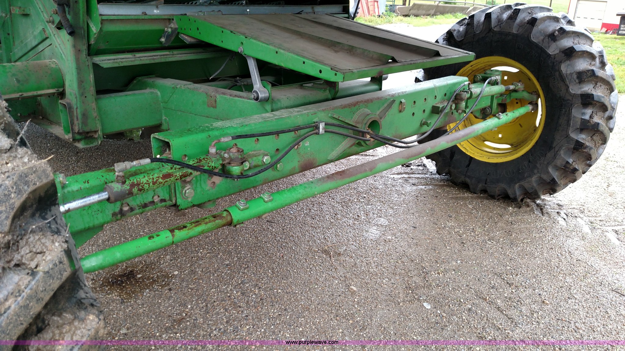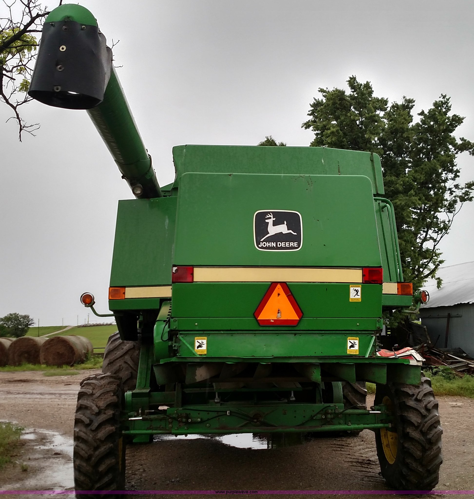 Purple Wave is selling a used Combine in Kansas. This item is a 1994 John Deere 9600 combine with the following: 2,801 engine hours on meter, 1,976 separator hours on meter, John Deere six cylinder diesel engine, Hydrostatic transmission, 3F-3R gears, AC and heat, AM/FM, Tilt steering wheel, Suspension seat, Work lights, Straw chopper, Stainless steel troughs in bin, Bin extensions, 30.5L-32 front tires, 18.9-26 rear tires, Unloading auger flighting and tube has been replaced, Injector pump rebuilt 800 hours ago, Hydraulic leak on right side, will be fixed prior to auction date, Serial H09600X65811