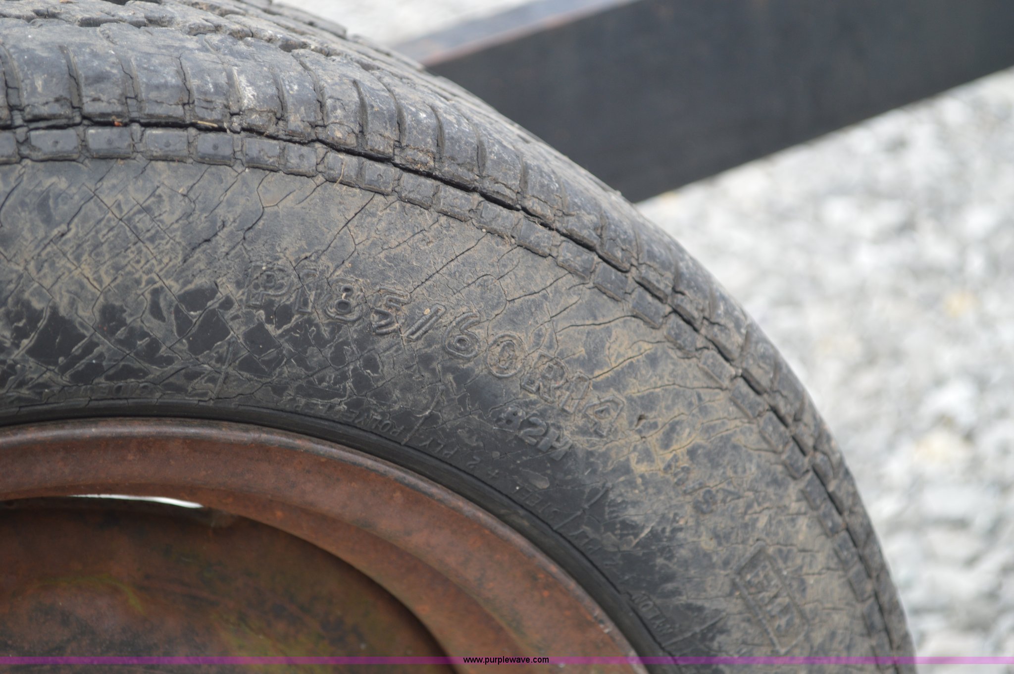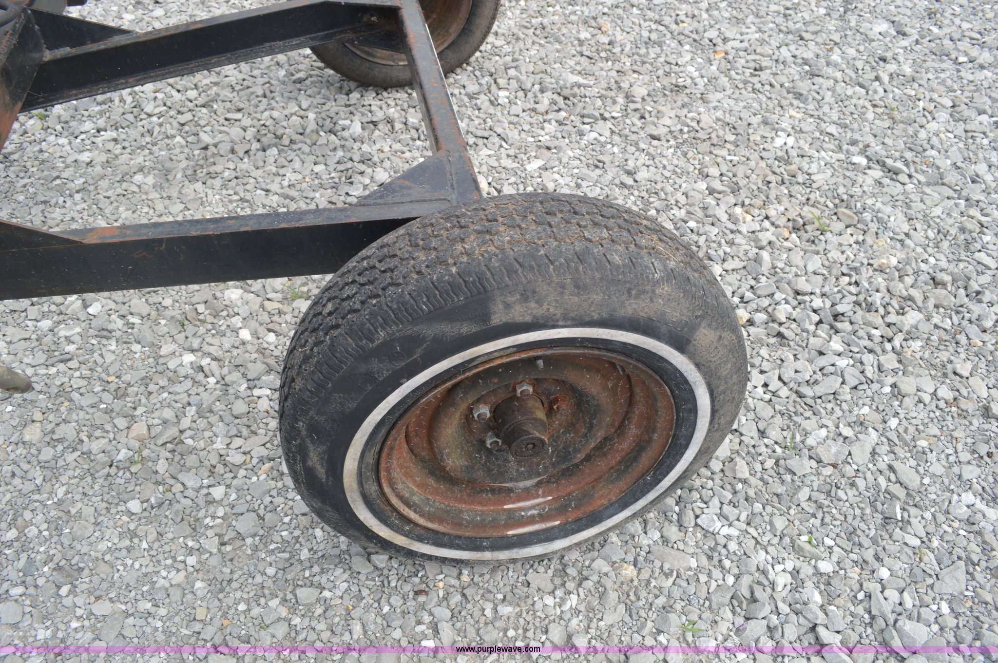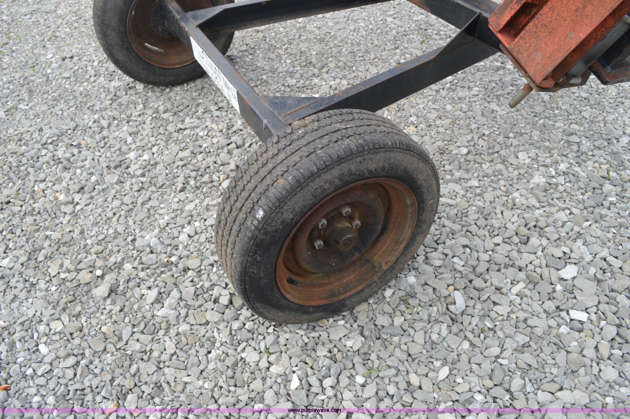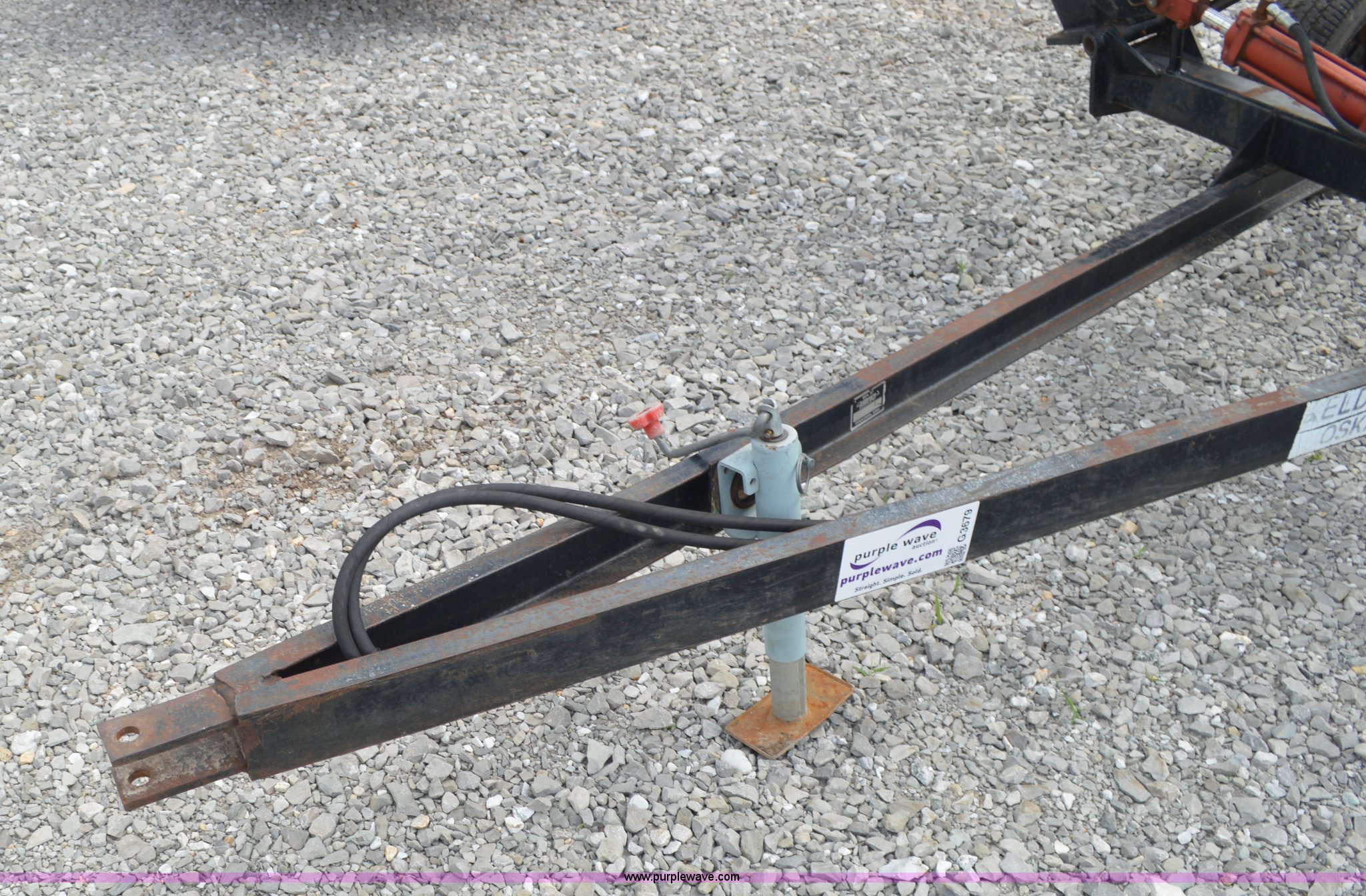 Purple Wave is selling a used Hay Rake in Missouri. This item is a Kelderman hay rake with the following: 10 wheels, Pin hitch, Manual jack, 185/60R14 tires, Serial KRCTT883