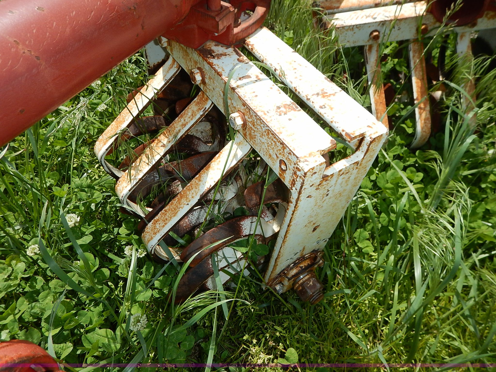 Purple Wave is selling a used Field Cultivator or Sweep Plow in Kansas. This item is a Lilliston rolling cultivator with the following: 15'W, Six row, 30" spacing, (2) 18" side disks, Three point