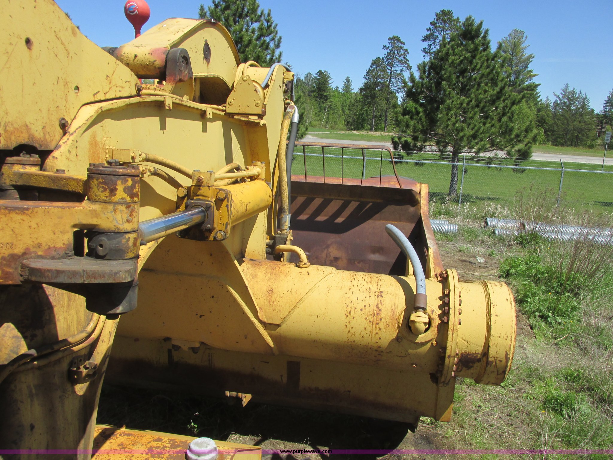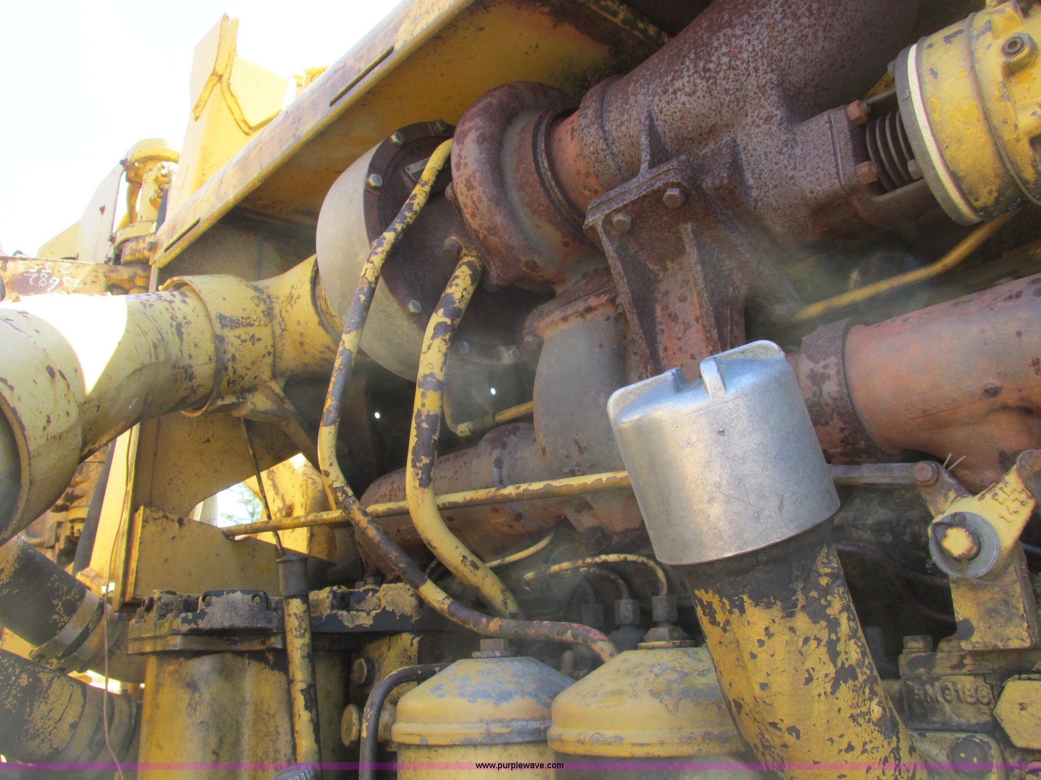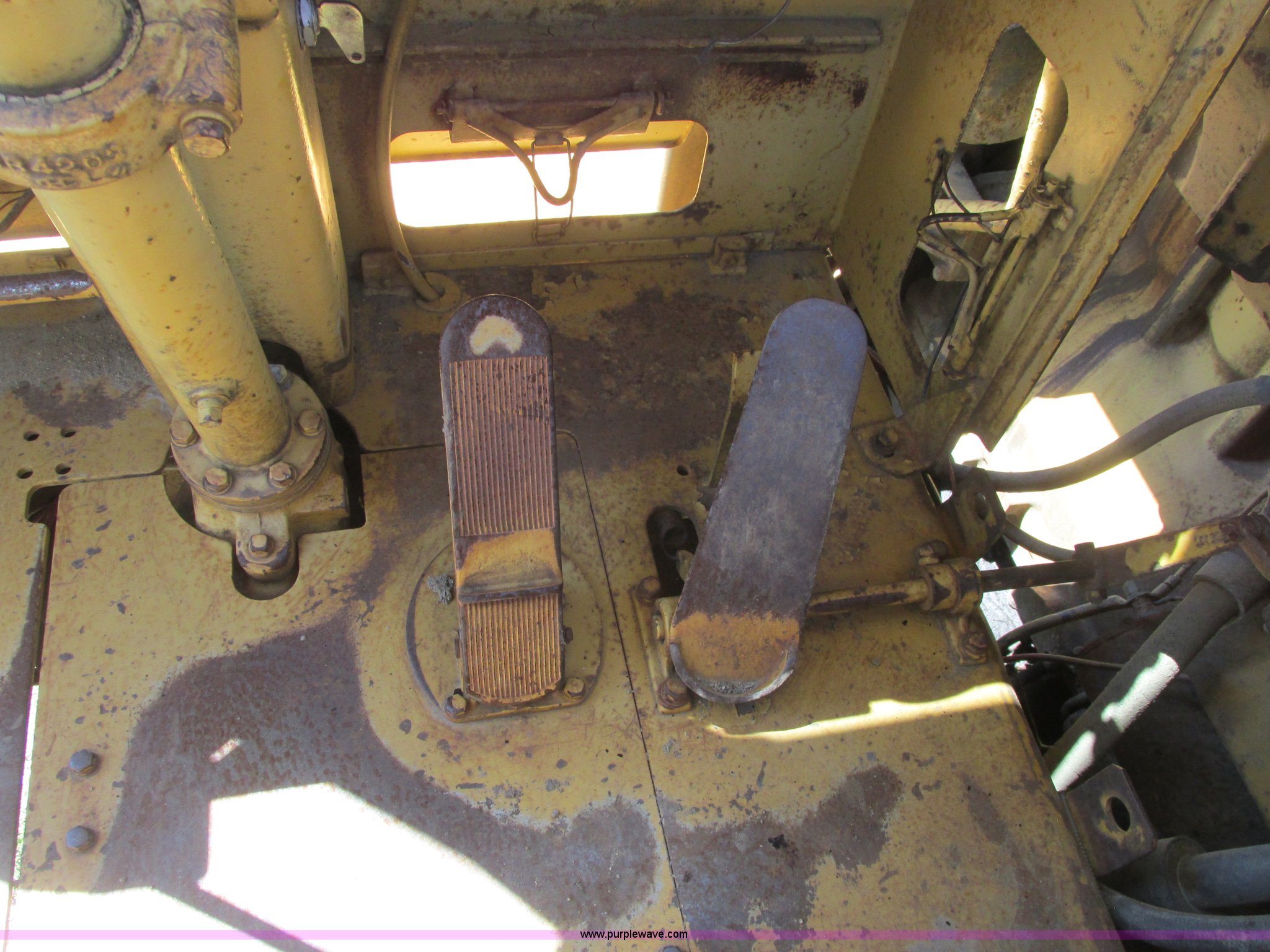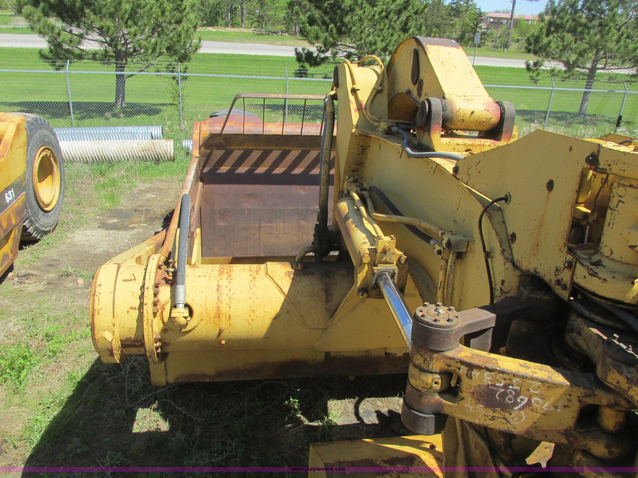 Purple Wave is selling a used Conventional Scraper in Minnesota. This item is a 1964 Caterpillar 631B conventional scraper with the following: Caterpillar six cylinder turbo diesel engine, Powershift transmission, 5F-1R gears, EROPS, Front work lights, 31 cu. yd. bowl capacity, Rear push block, Hydraulic lift, Lever scraper controls, Air brakes, Firestone 33.25-35-E3 front tires, Goodyear 33.25-35 rear tires, 76,300 lbs. base operating weight, Serial 13G1521, Unit# 23