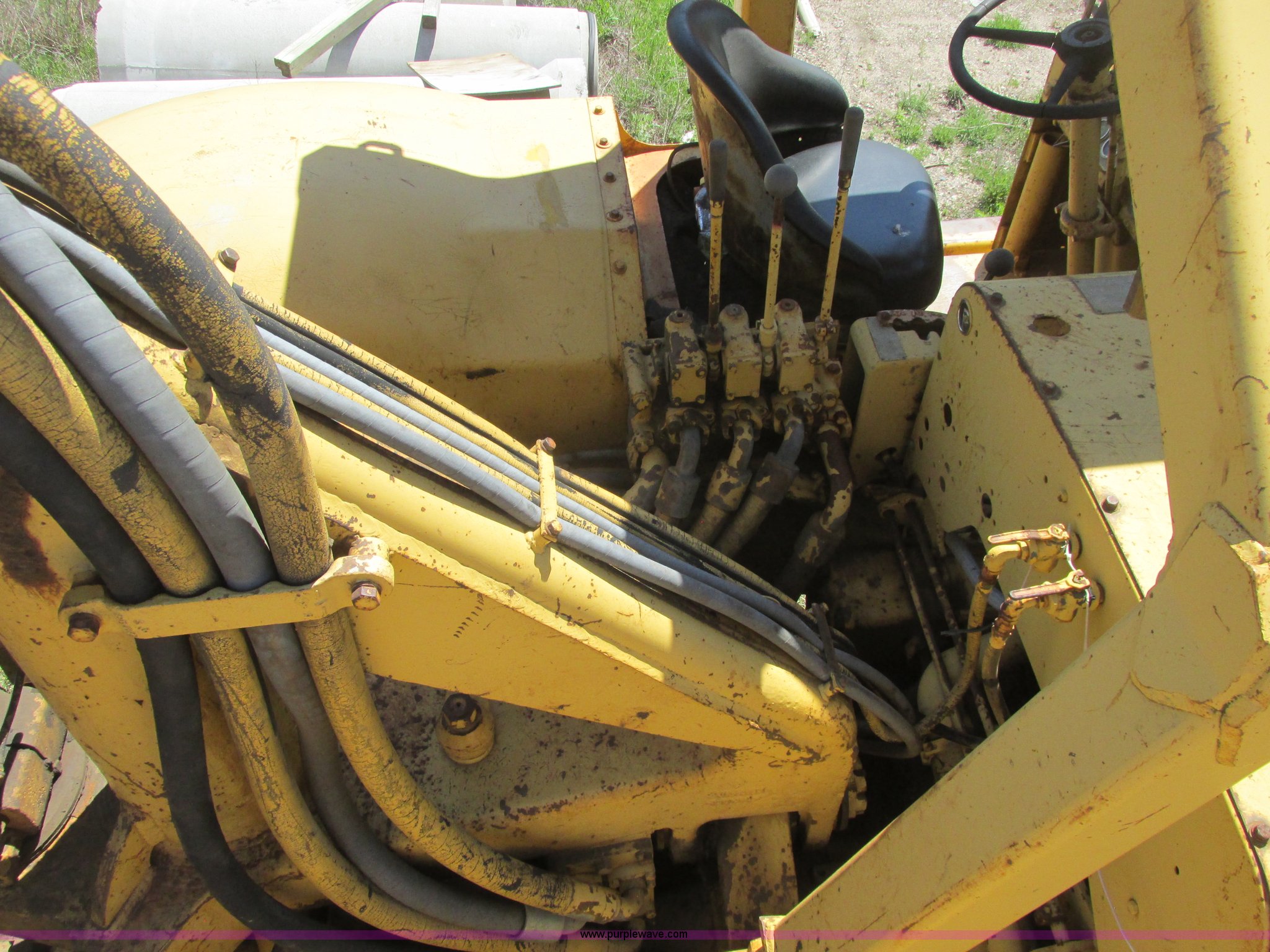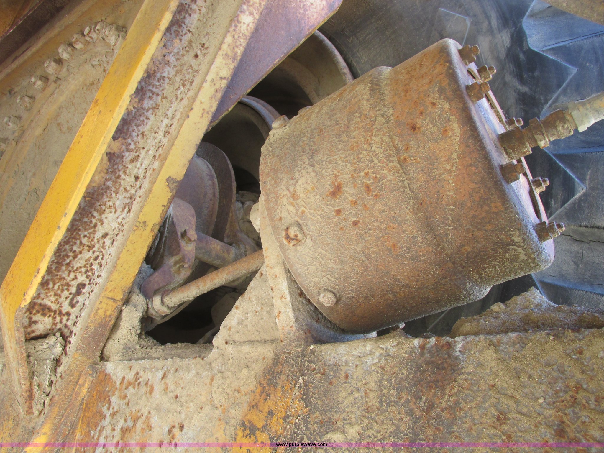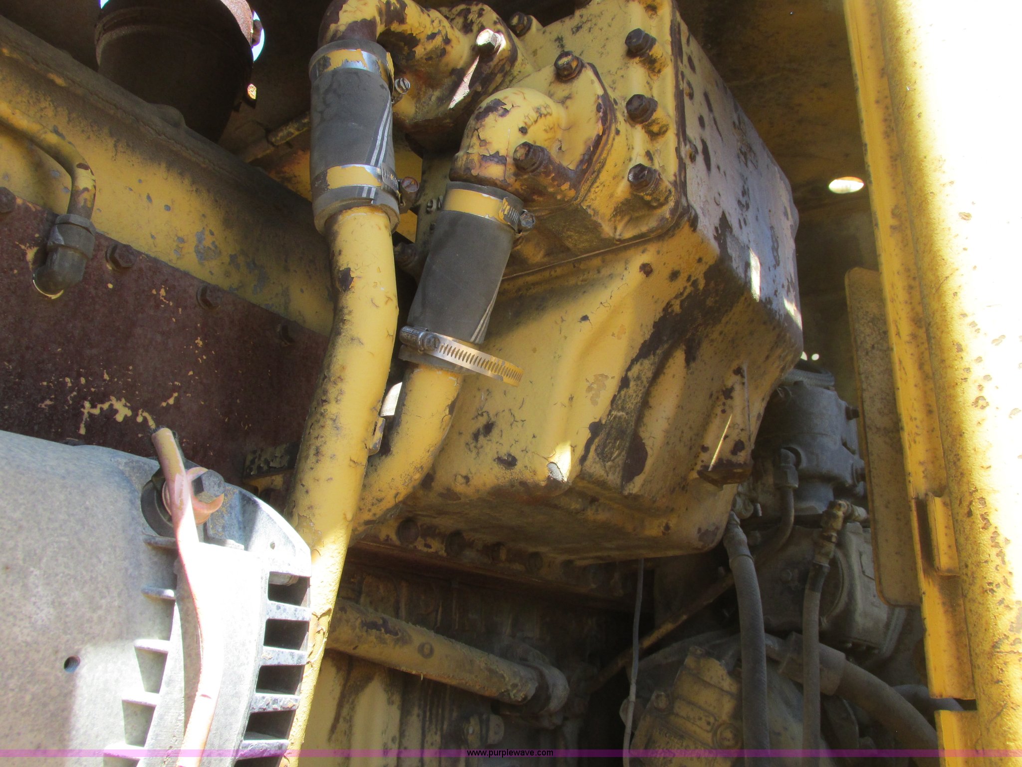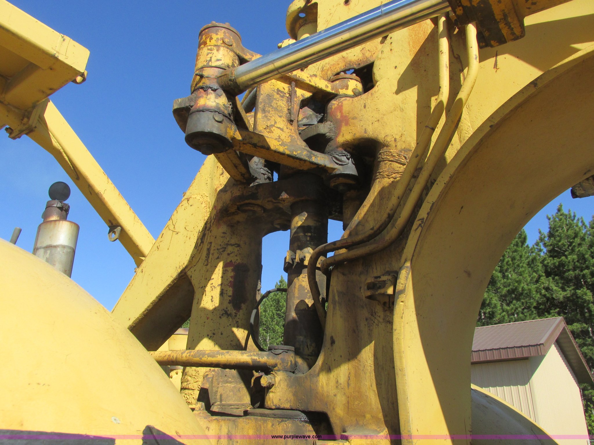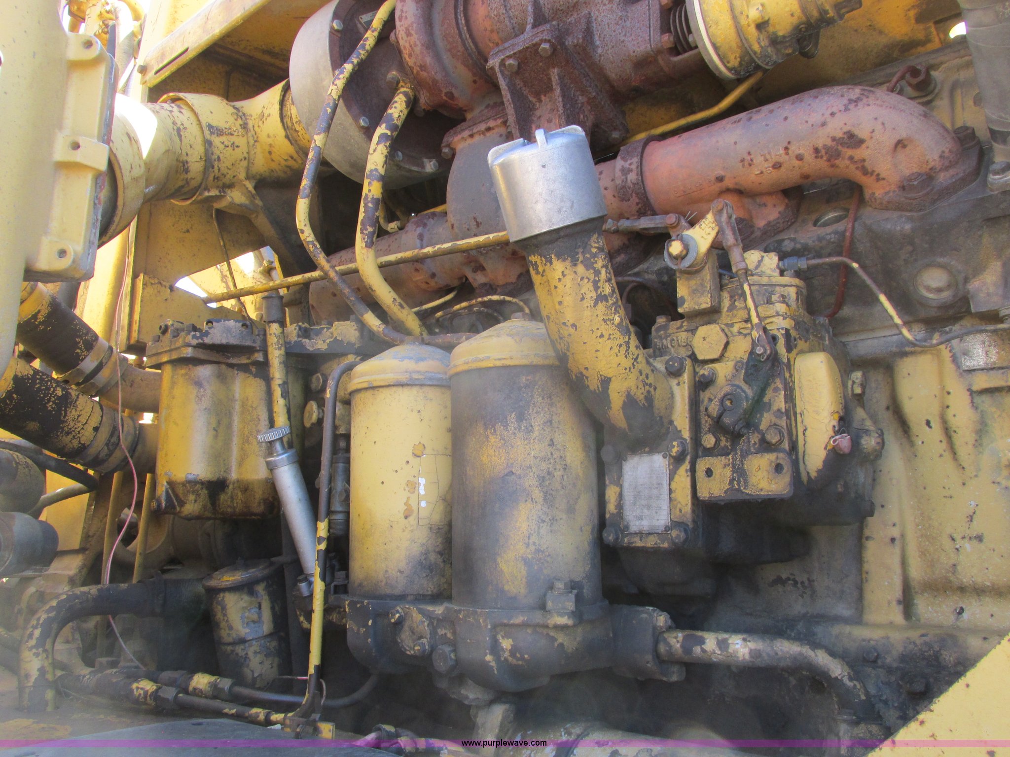 Purple Wave is selling a used Conventional Scraper in Minnesota. This item is a 1964 Caterpillar 631B conventional scraper with the following: Caterpillar six cylinder turbo diesel engine, Powershift transmission, 5F-1R gears, EROPS, Front work lights, 31 cu. yd. bowl capacity, Rear push block, Hydraulic lift, Lever scraper controls, Air brakes, Firestone 33.25-35-E3 front tires, Goodyear 33.25-35 rear tires, 76,300 lbs. base operating weight, Serial 13G1521, Unit# 23