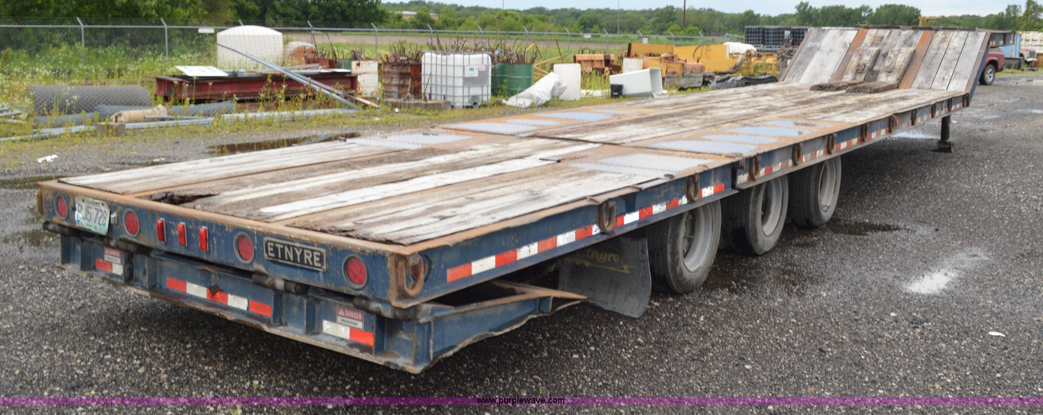 Purple Wave is selling a used Equip. Trailer in Kansas. This item is a 1996 Etnyre SR35TL3-T1 equipment trailer with the following: 48'L x 101"W, 24'L deck, 10'L dove tail, 4'L dove tail ramp, D-ring tie-downs, Air suspension, Air brakes, 215/75R17.5 tires, GVWR 88,520