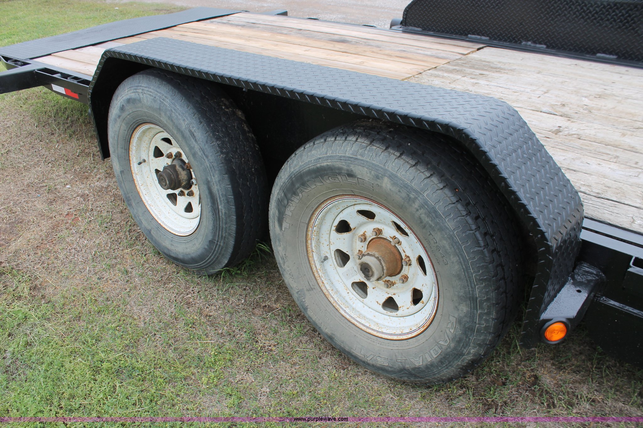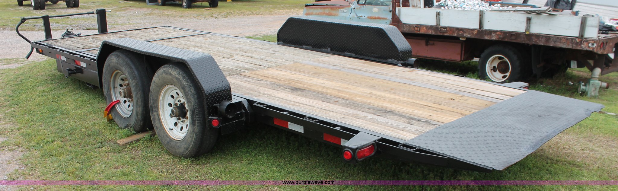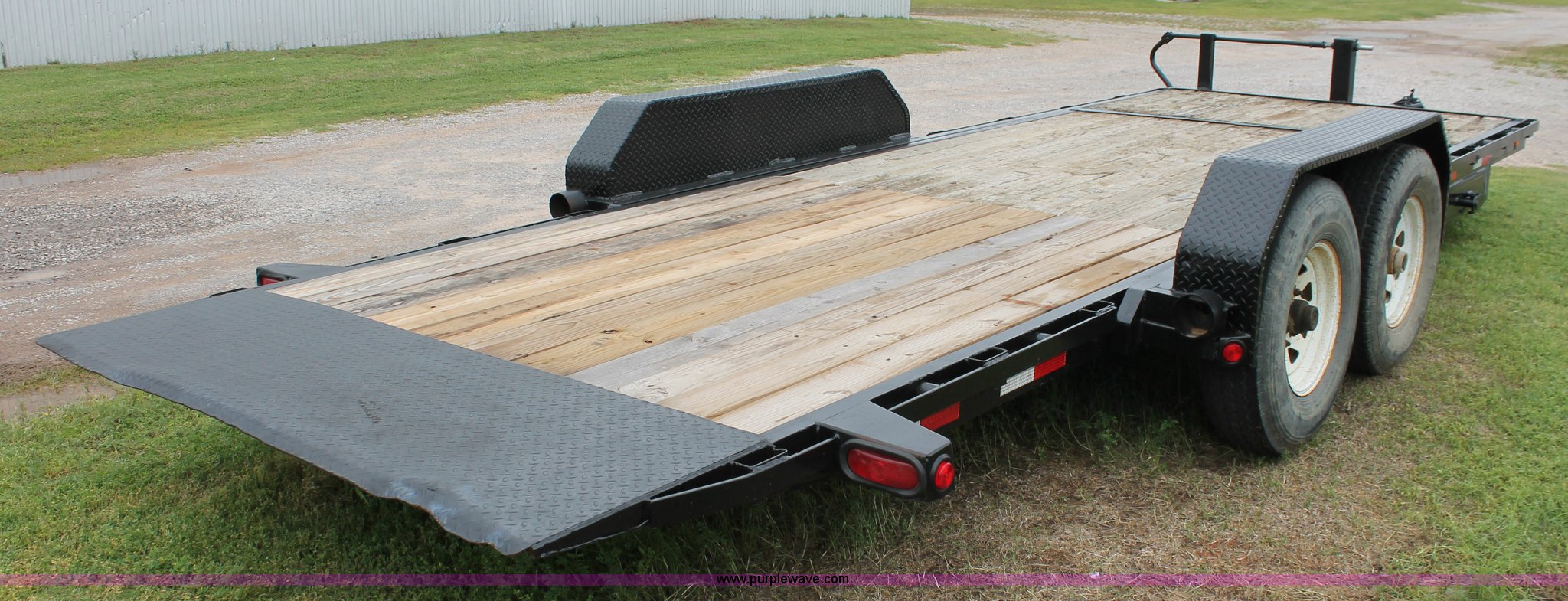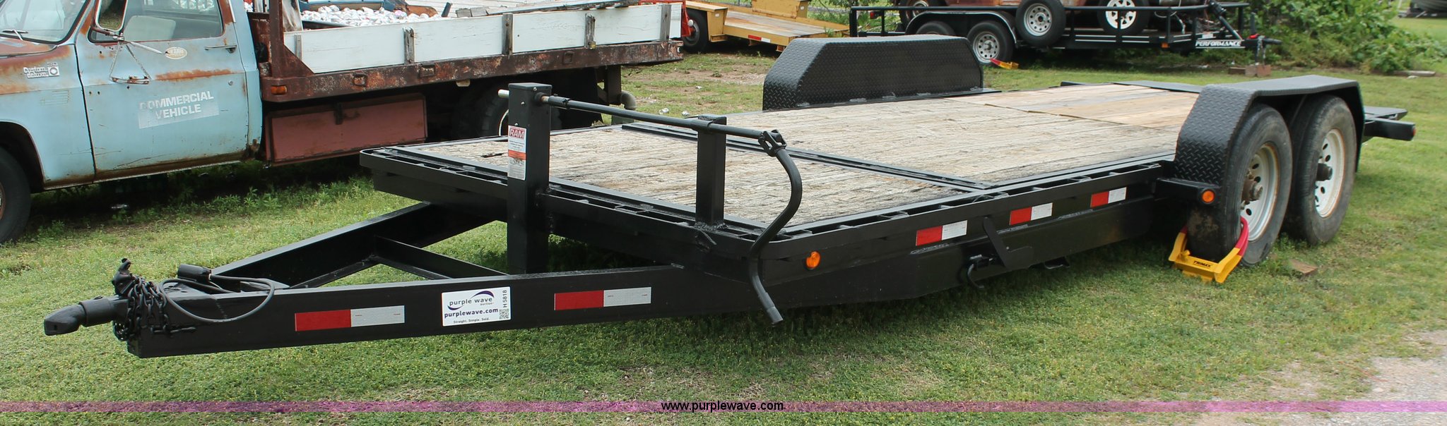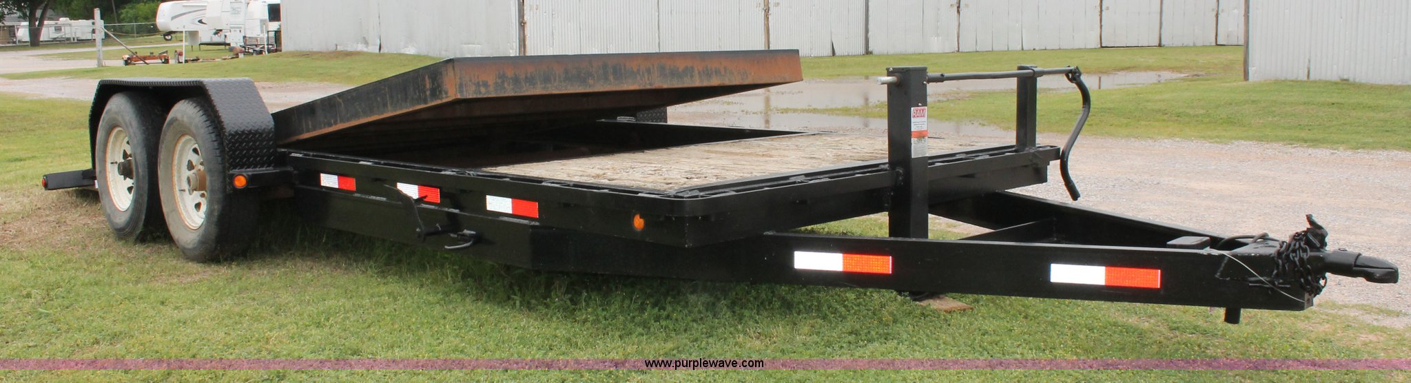Purple Wave is selling a used Equip. Trailer in Oklahoma. This item is a 2006 shop built tilt deck trailer with the following: 26' overall length, 17'L x 82"W tilt deck, 4'L x 82"W front deck, Stake side pockets, 2" ball hitch, ST235/80R16 tires