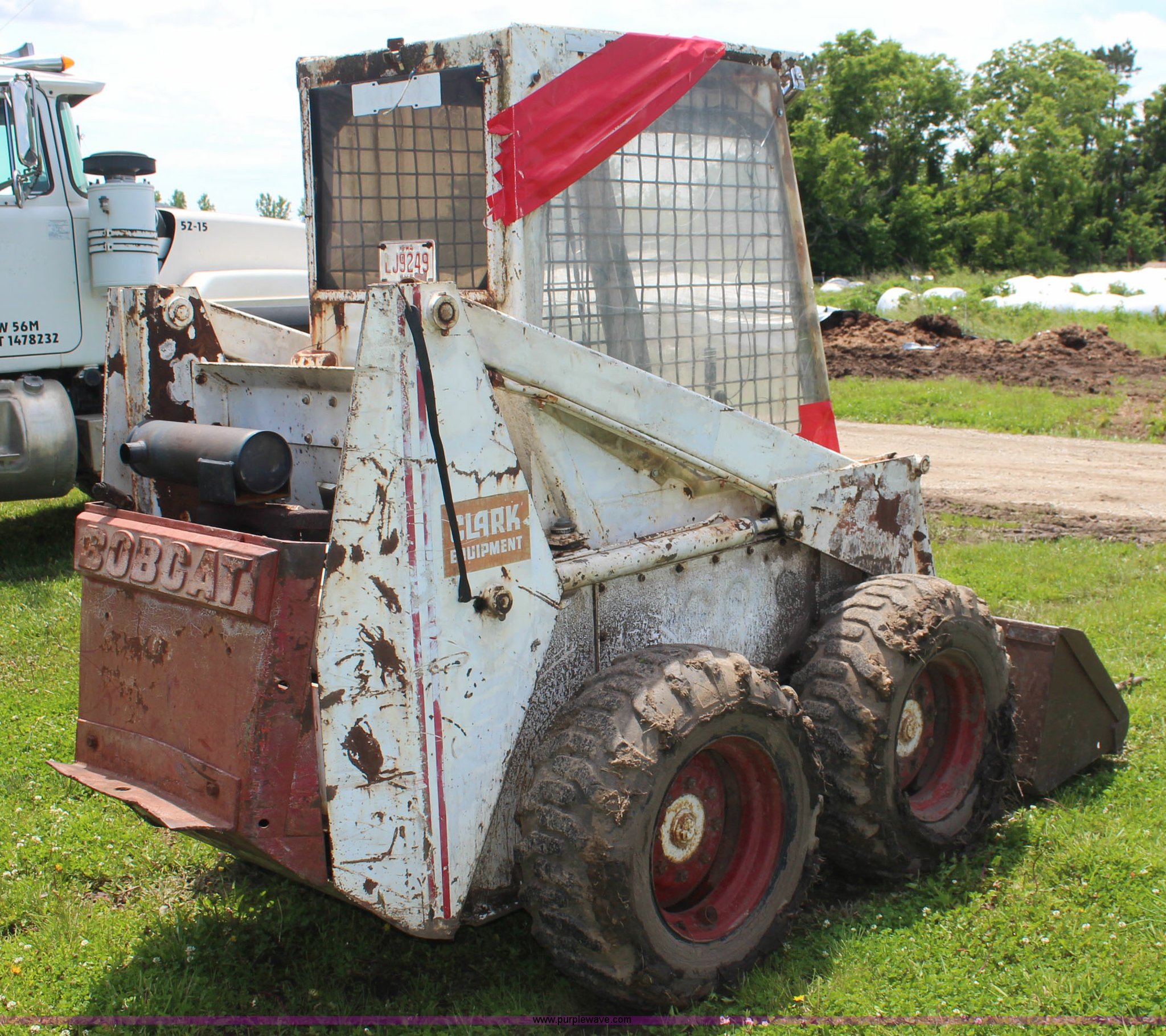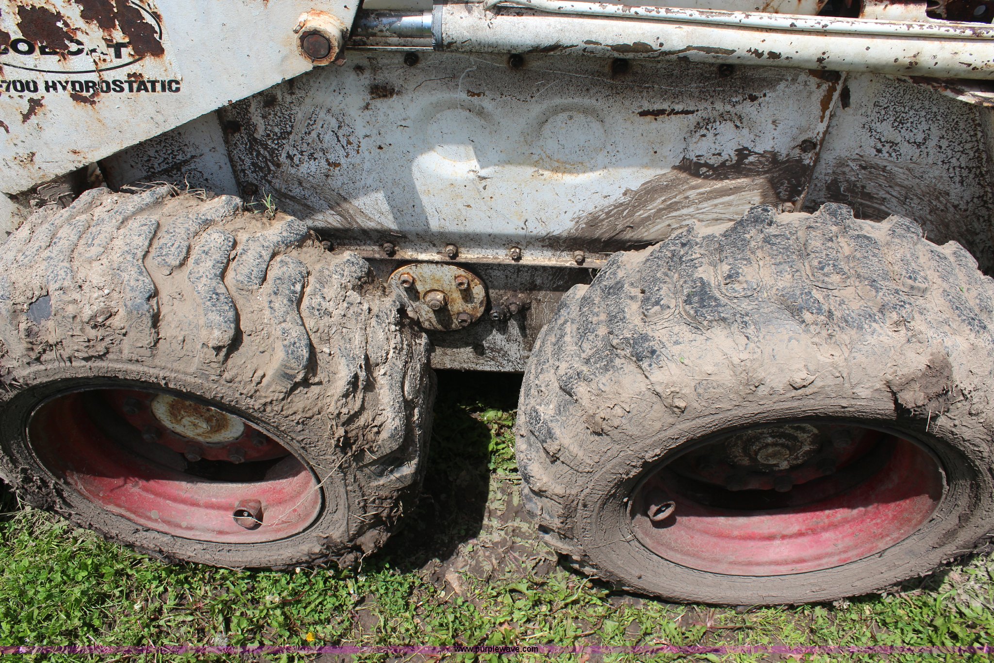 Bobcat M700 skid steer. 1,870 hours on meter, Wisconsin four cylinder gas engine 30 HP, Hydrostatic transmission, Canopy, 60"W bucket, Auxiliary hydraulics, Manual quick coupler, 10-16.5 tires, Serial 4957-D-1266U9M. View equipment video. 393 E 1400 Road. Baldwin City, KS 66006