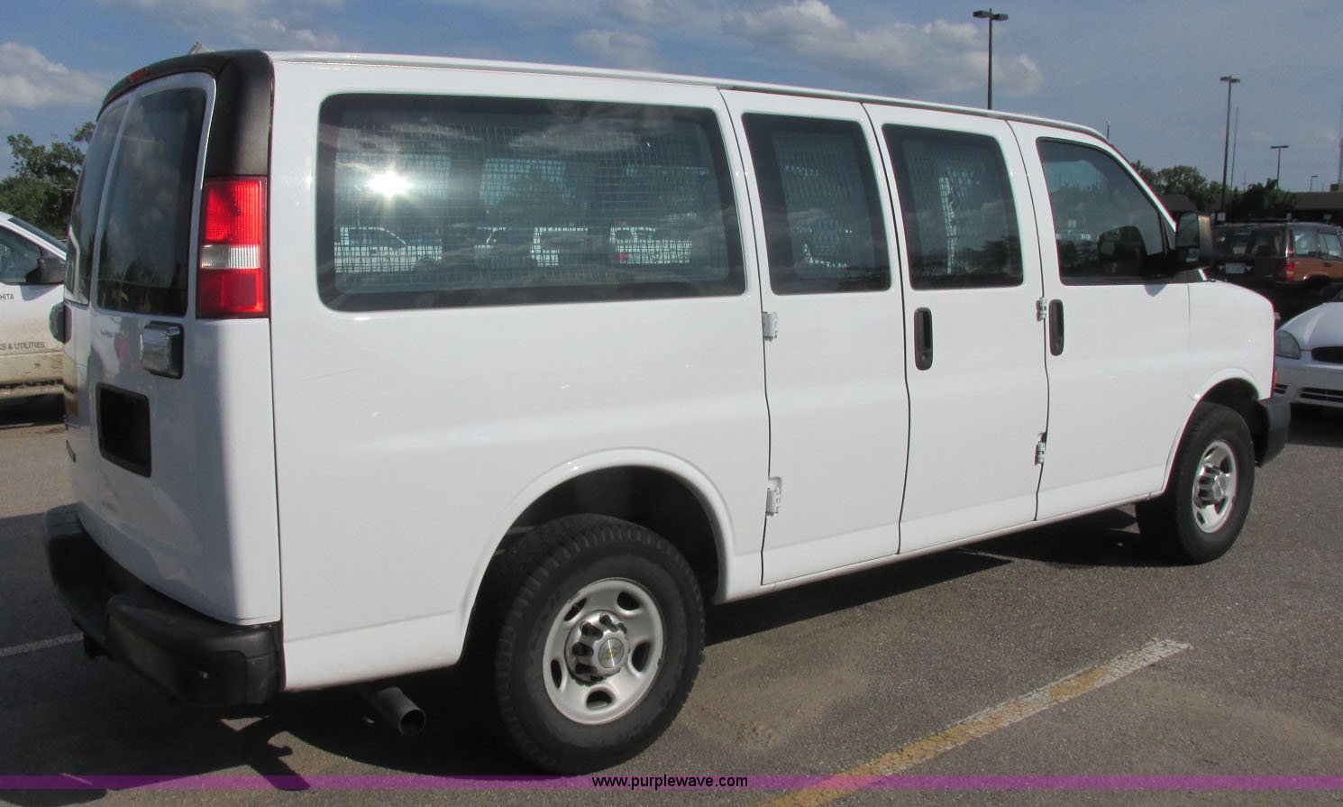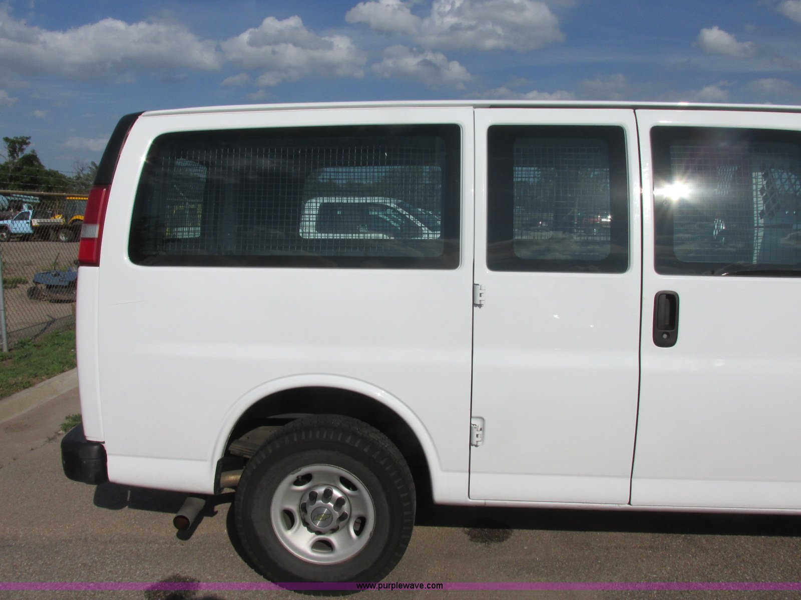 Purple Wave is selling a used 3/4 or 1 Ton Pickup or Van in Kansas. This item is a 2011 Chevrolet Express 2500 Cargo van with the following: 72,428 miles on odometer, 6.0L V8 OHV 16V FFV gas engine, Automatic transmission, AC and heat, AM/FM, Power windows and locks, Vinyl interior, Cargo divider, Rear window security cage, Shelving, Receiver hitch, Trailer wiring, LT245/75R16 tires, Scratches, Unit# 002428