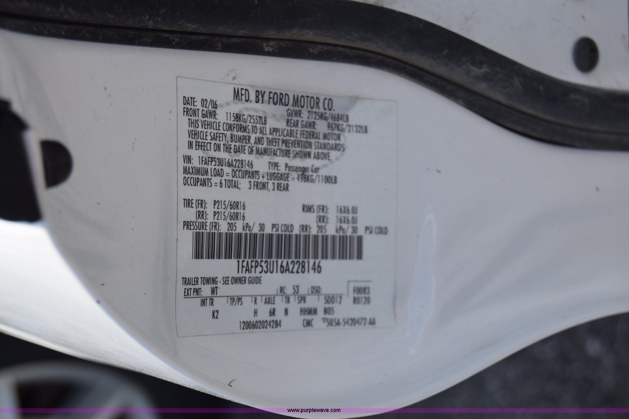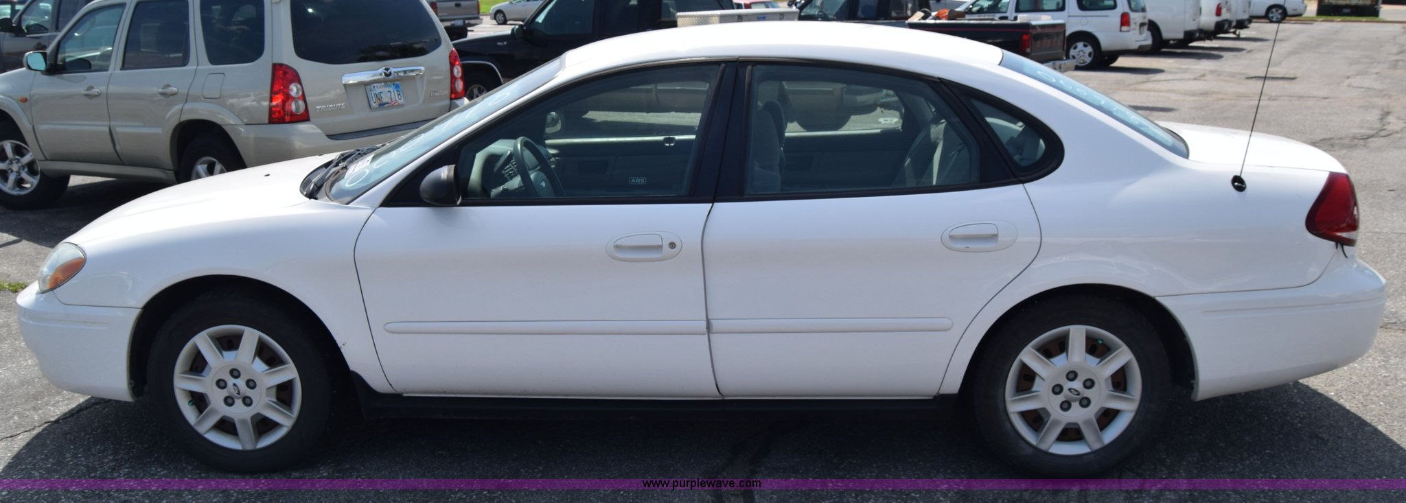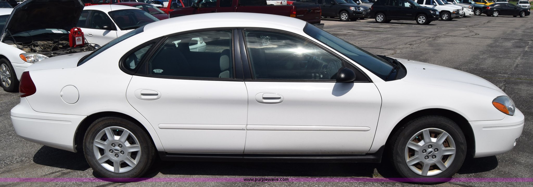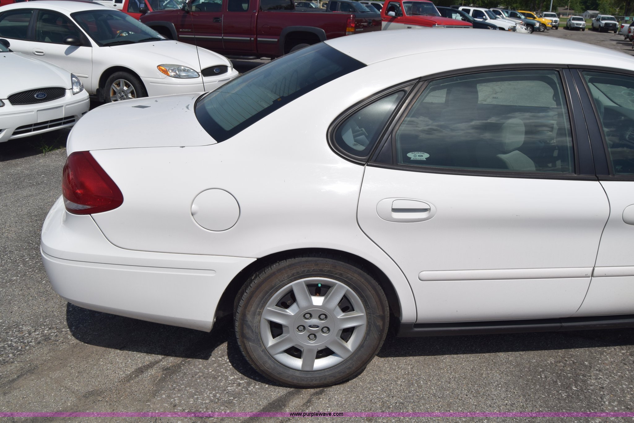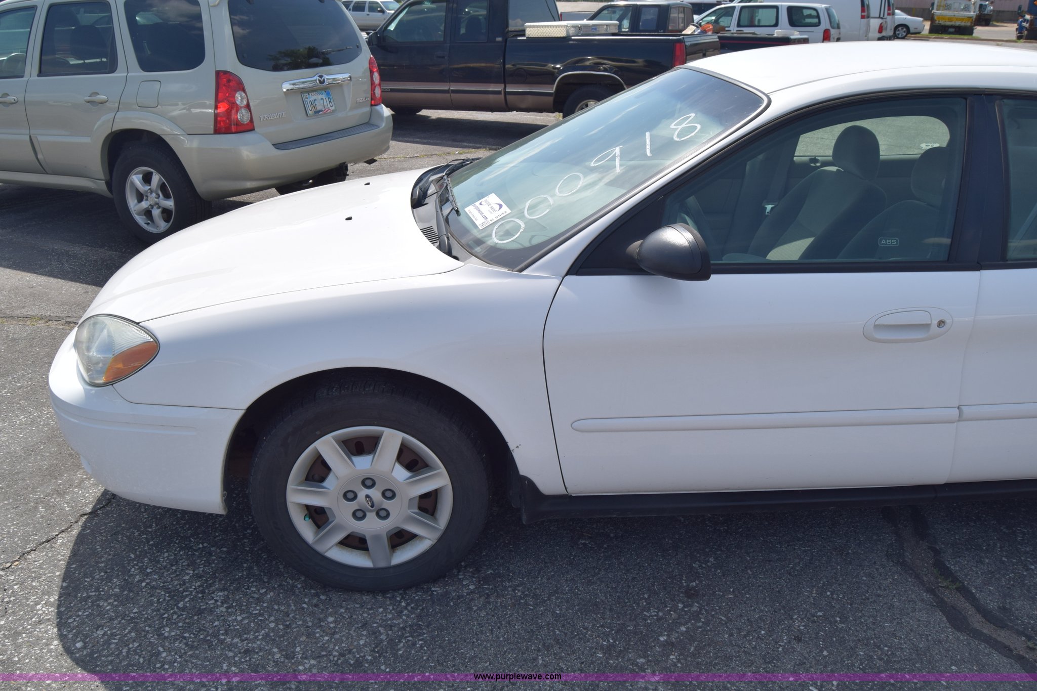 Purple Wave is selling a used Passenger Vehicle in Kansas. This item is a 2006 Ford Taurus SE with the following: 105,369 miles on odometer, 3.0L V6 OHV 12V gas engine, Automatic transmission, AC and heat, Tilt, Cruise, AM/FM/cassette, Power windows, locks, and mirrors, Cloth interior, 215/60R16 tires, Port holes in trunk, Paint peeling, Hail damage, Unit# 000918
