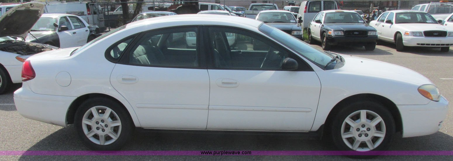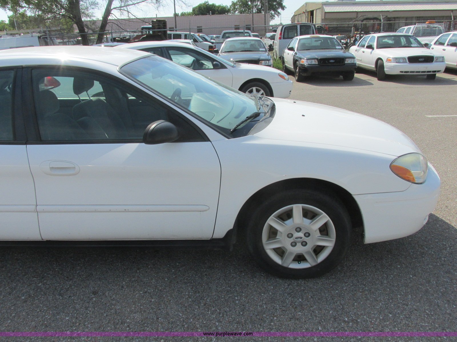 Purple Wave is selling a used Passenger Vehicle in Kansas. This item is a 2006 Ford Taurus SE with the following: 96,149 miles on odometer, 3.0L V6 OHV 12V gas engine, Automatic transmission, AC and heat, Tilt, Cruise, AM/FM/cassette, Power windows, locks, and mirrors, Cloth interior, 215/60R16 tires, Port hole in trunk, Scratches, Dents, Hail damage, Paint peeling, Unit# 001163