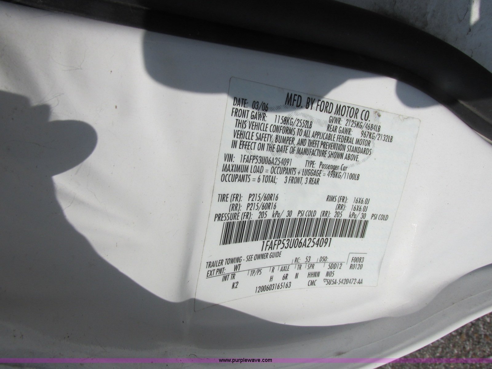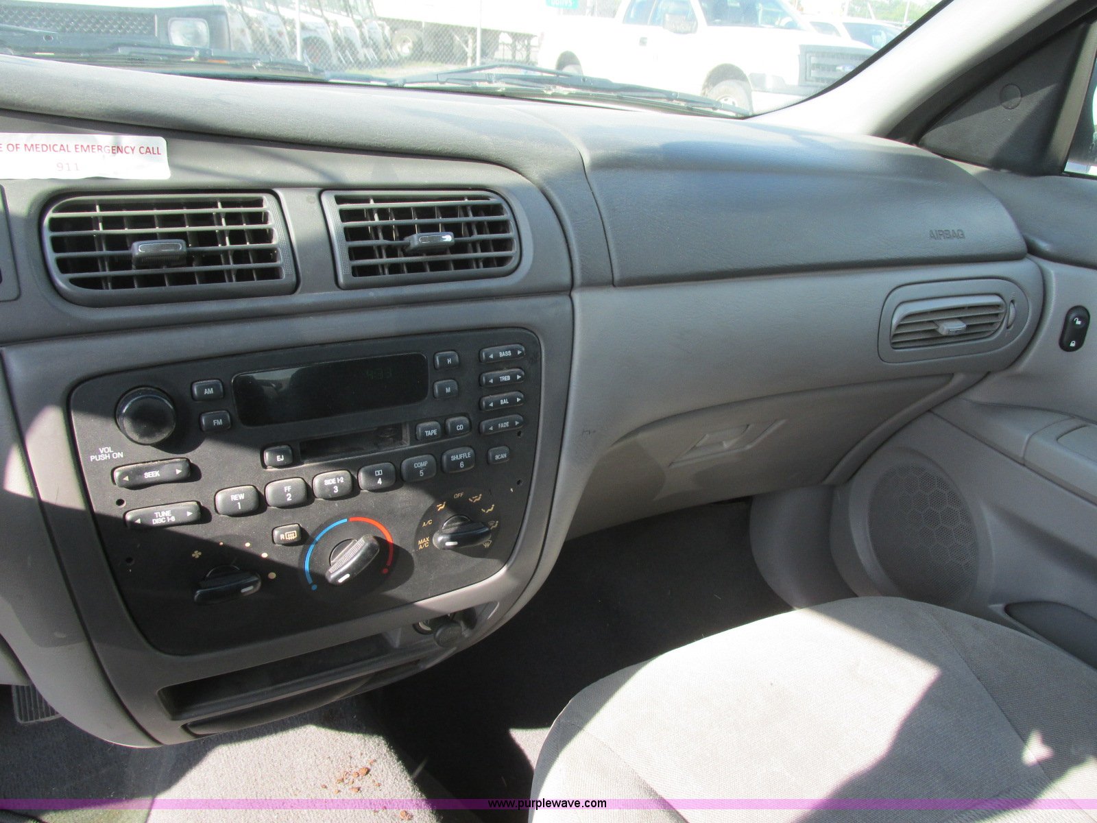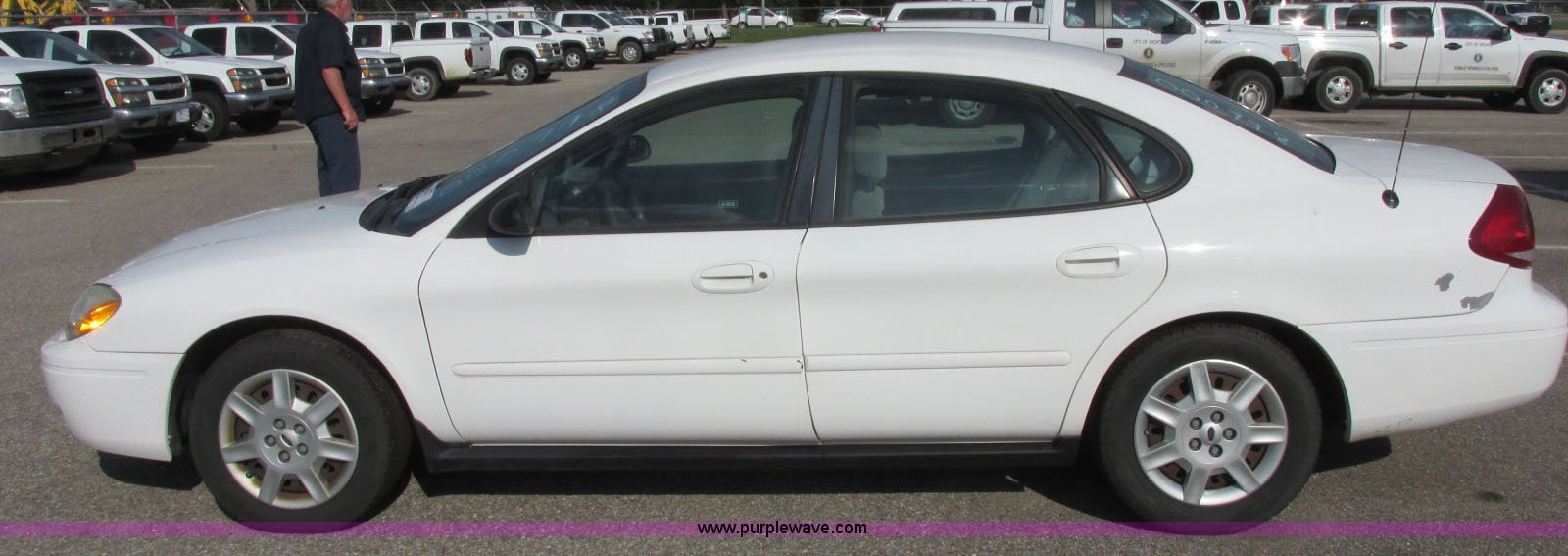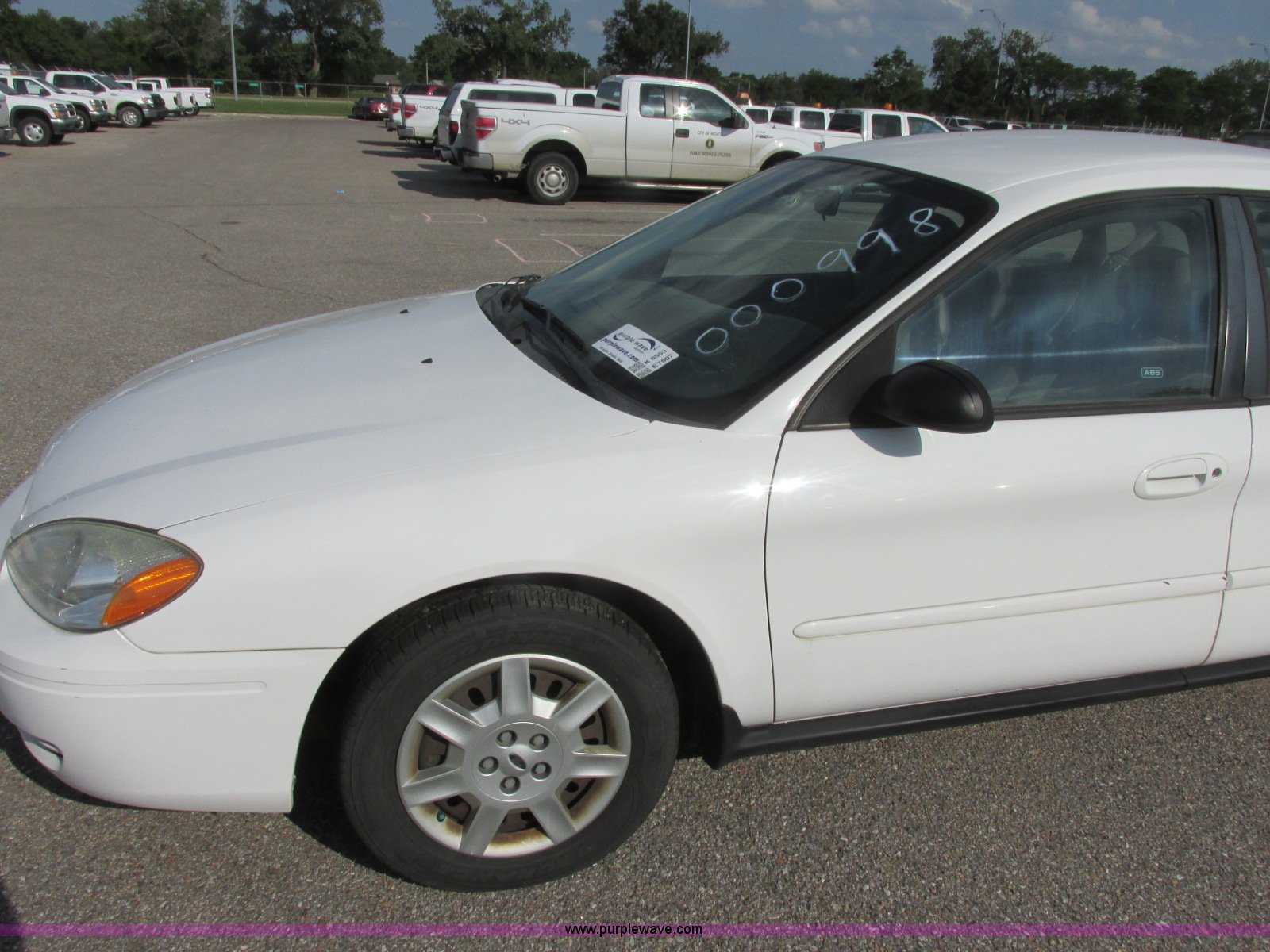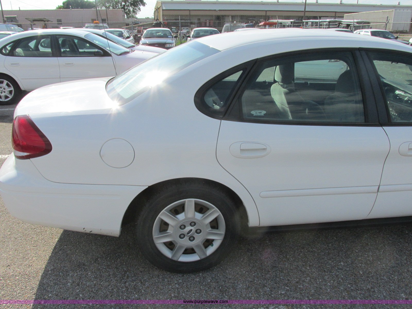 Purple Wave is selling a used Passenger Vehicle in Kansas. This item is a 2006 Ford Taurus SE with the following: 126,203 miles on odometer, 3.0L V6 OHV 12V gas engine, Automatic transmission, AC and heat, Tilt, Cruise, AM/FM/cassette, Power windows, locks, and mirrors, Cloth interior, P215/60R16 tires, Paint peeling, Hail damage, Scratches, Dents, Unit# 000998