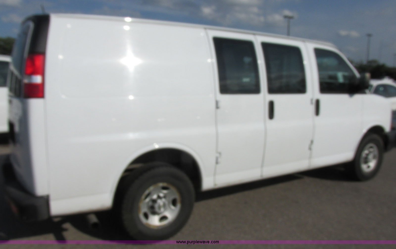Purple Wave is selling a used 3/4 or 1 Ton Pickup or Van in Kansas. This item is a 2007 Chevrolet Express 2500 Cargo van with the following: 102,142 miles on odometer, 6.0L V8 OHV 16V gas engine, Automatic transmission, AC and heat, AM/FM, Manual windows and locks, Vinyl interior, Cargo divider, Shelving, Laptop stand, Strobe light, Receiver hitch, Trailer wiring, LT245/75R16 tires, Interior/exterior cosmetic damage, Paint peeling, Scratches, Dents, Unit# 001365