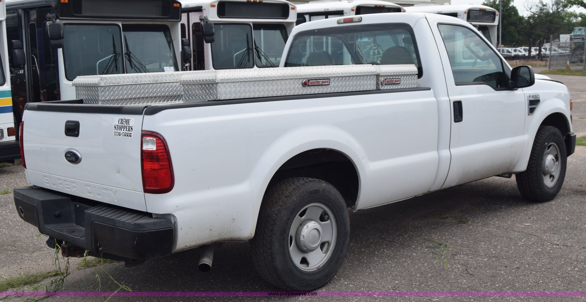 Purple Wave is selling a used 3/4 or 1 Ton Pickup or Van in Kansas. This item is a 2008 Ford F250 Super Duty XL pickup truck with the following: 115,233 miles on odometer, 5.4L V8 SOHC 16V gas engine, Automatic transmission, AC and heat, AM/FM, Manual windows and locks, Vinyl interior, Front tow hooks, Long bed, Toolbox, Receiver hitch, Trailer wiring, LT245/75R17 tires, Interior/exterior cosmetic damage, Scratches, Dents, Unit# 001344