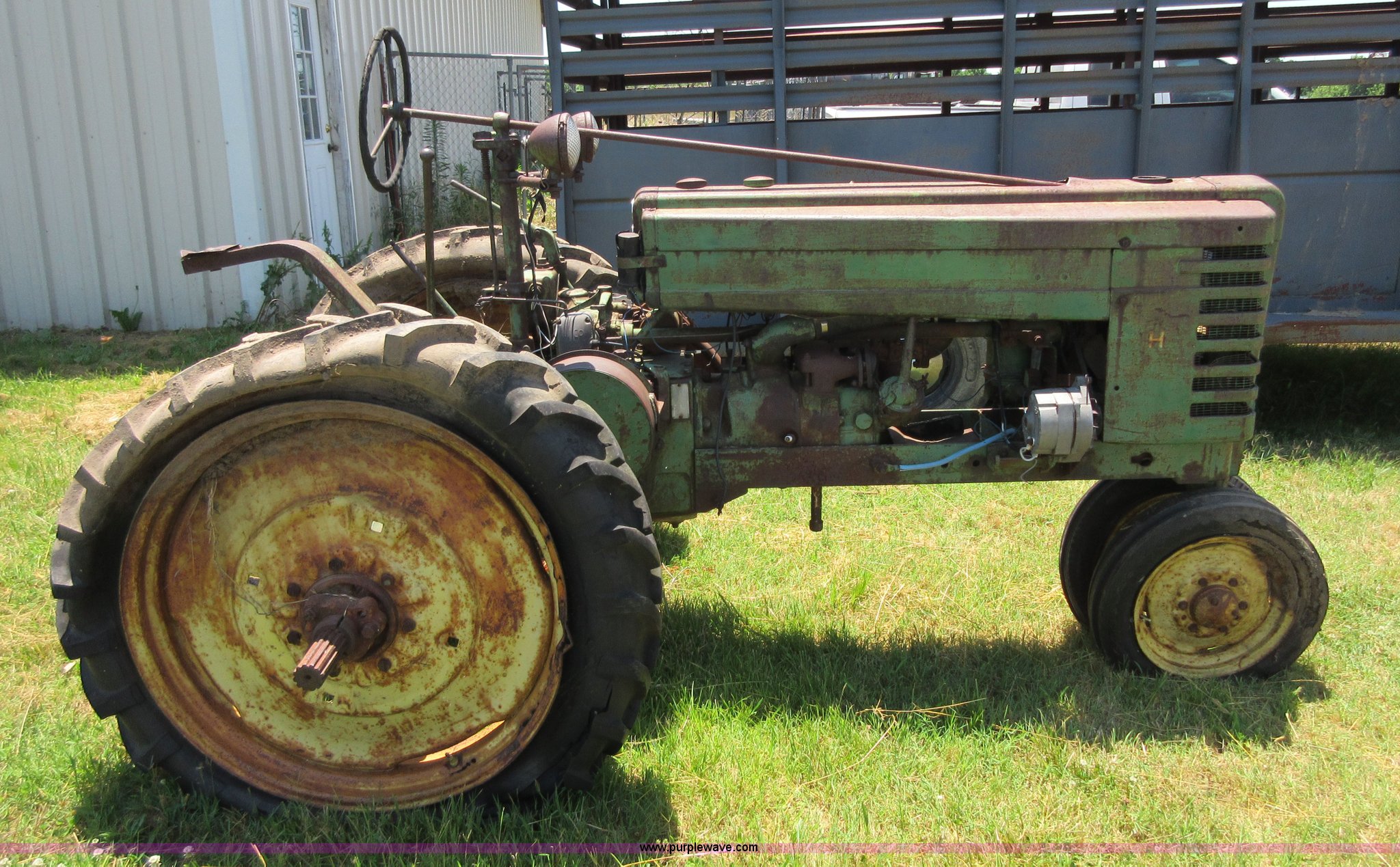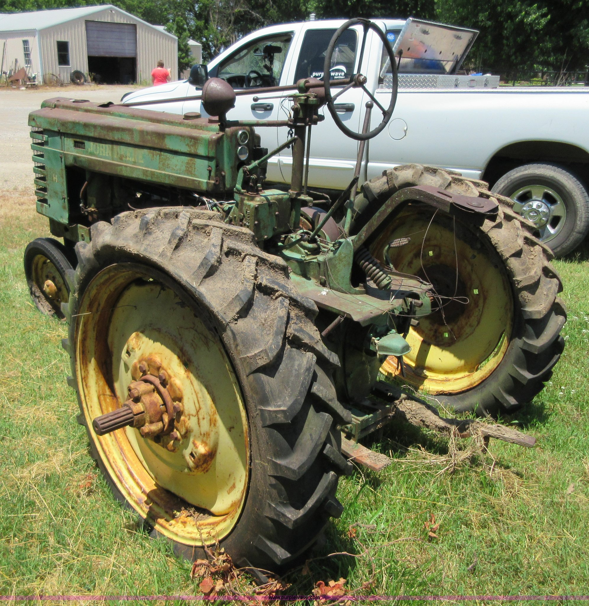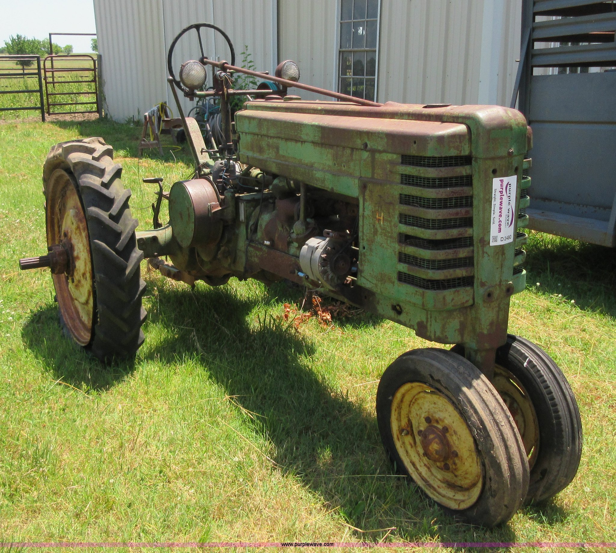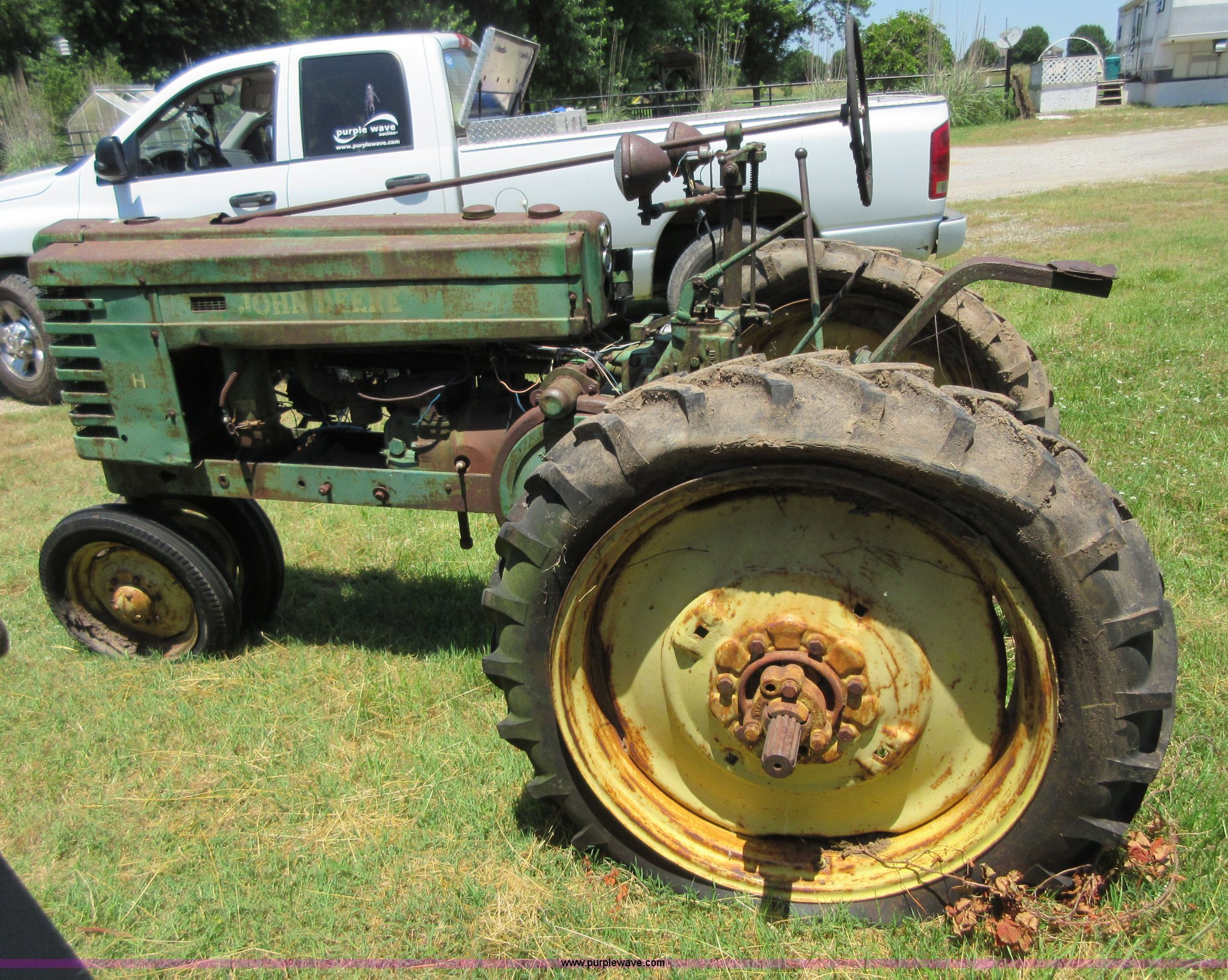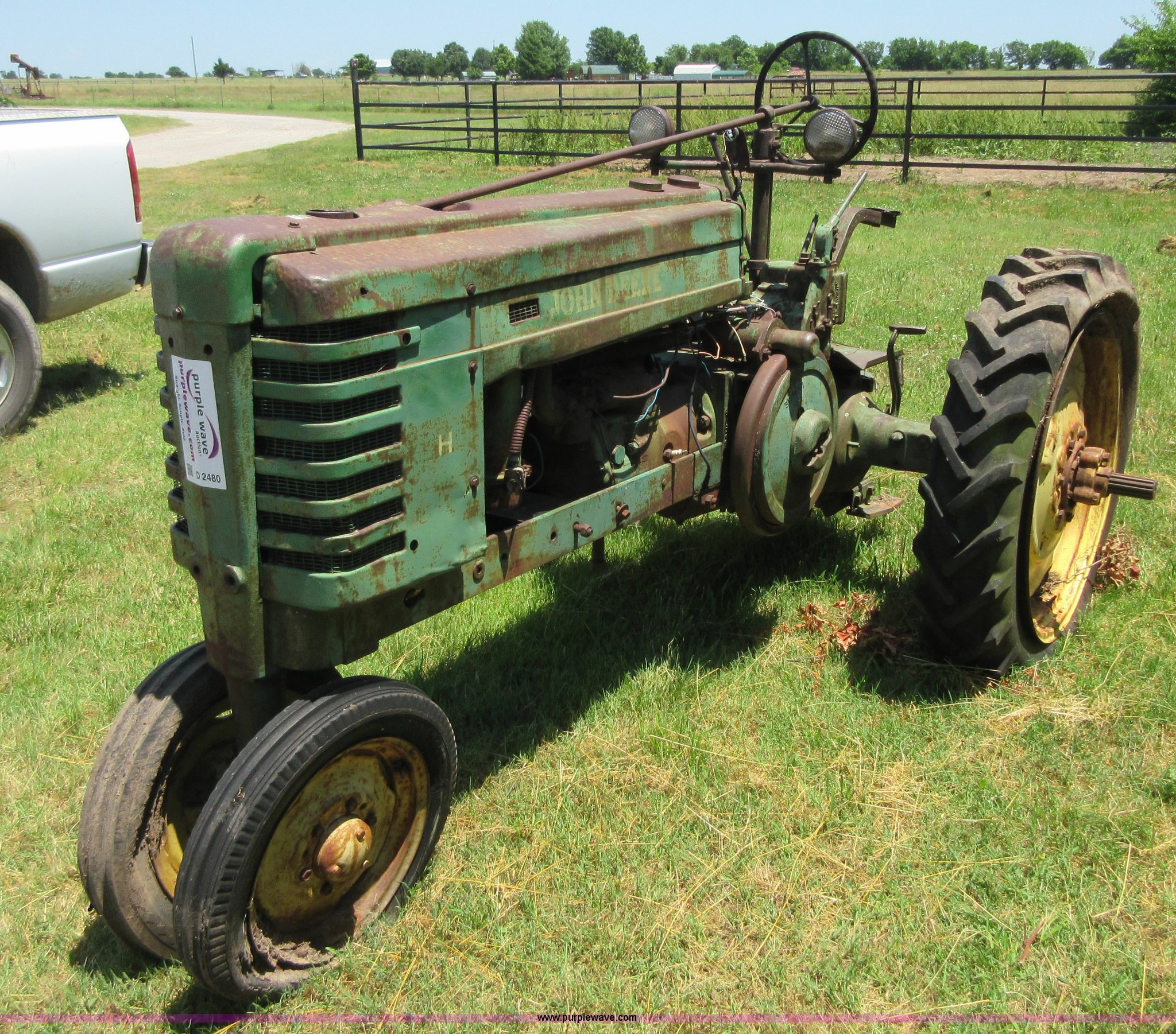Purple Wave is selling a used Tractor in Oklahoma. This item is a 1945 John Deere H tractor with the following: John Deere two cylinder gas engine, Manual transmission, 3F-1R gears, Draw bar, 540 PTO, Serial 55082