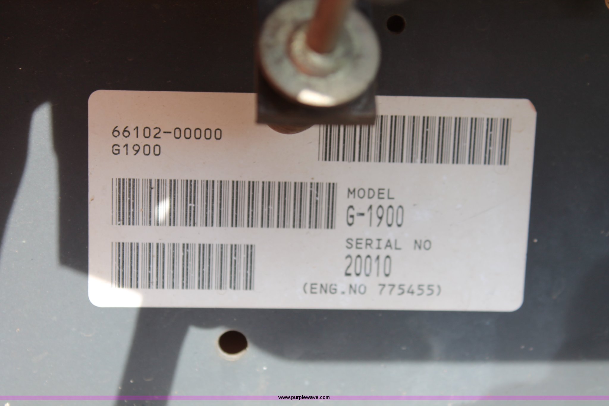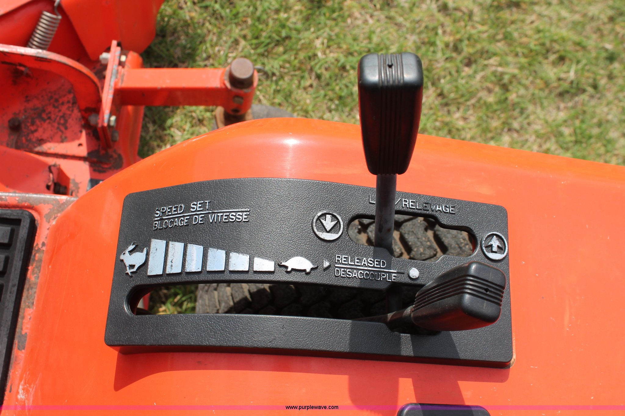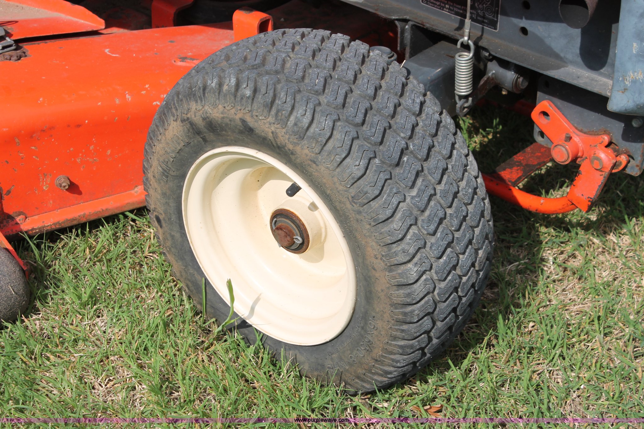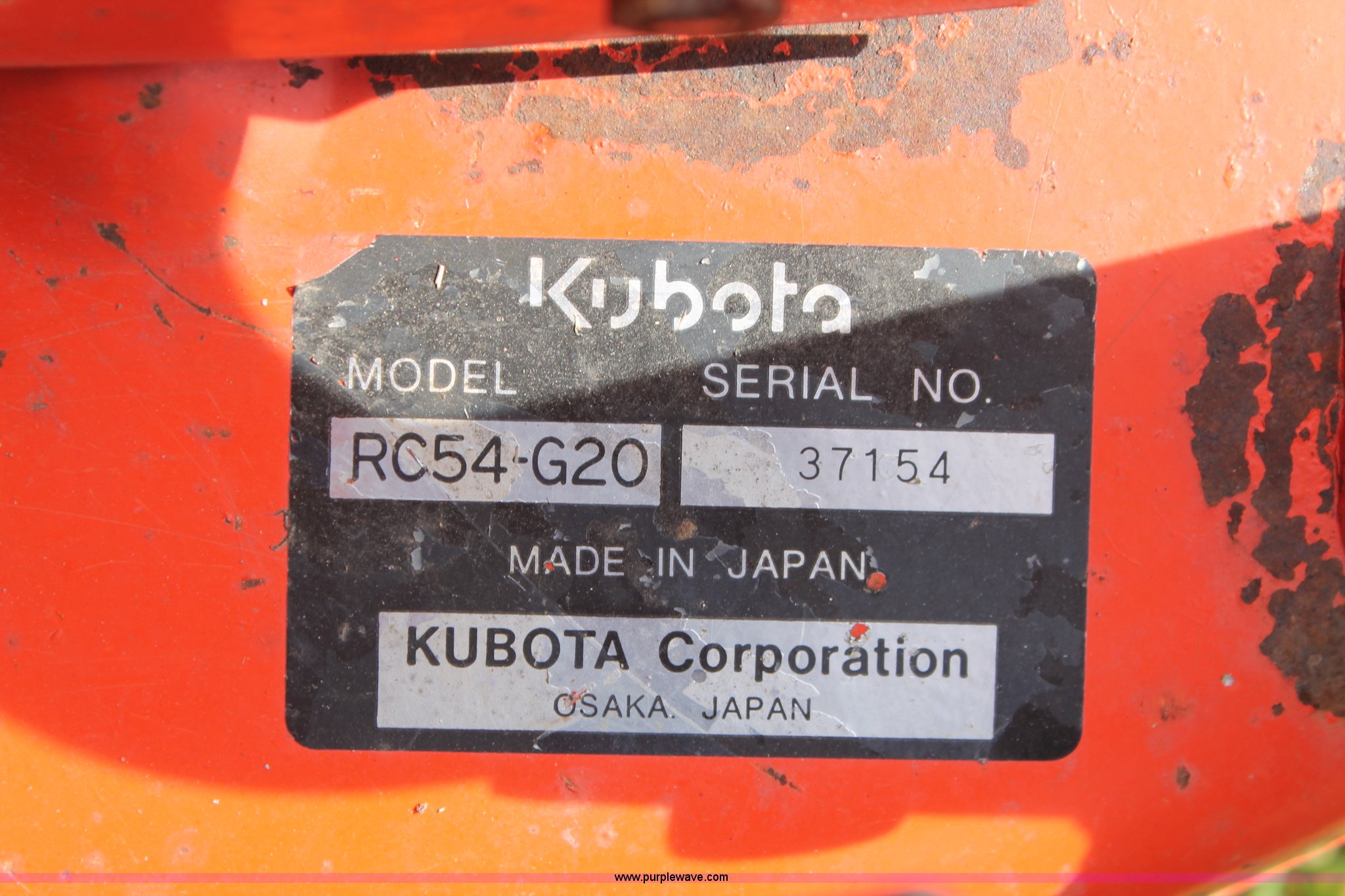 Purple Wave is selling a used Lawn Mower in Oklahoma. This item is a Kubota G1900 lawn mower with the following: 1,074 hours on meter, 54" cut, Kubota D722-E 719cc three cylinder diesel engine, Serial 775455, Hydrostatic transmission, Kubota RC54-G20 deck, Serial 37154, Pin hitch, 16x6.50-8 NHS front tires, 13x10.50-12 rear tires, Serial 20010