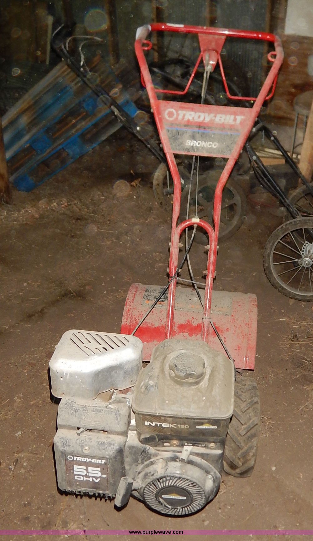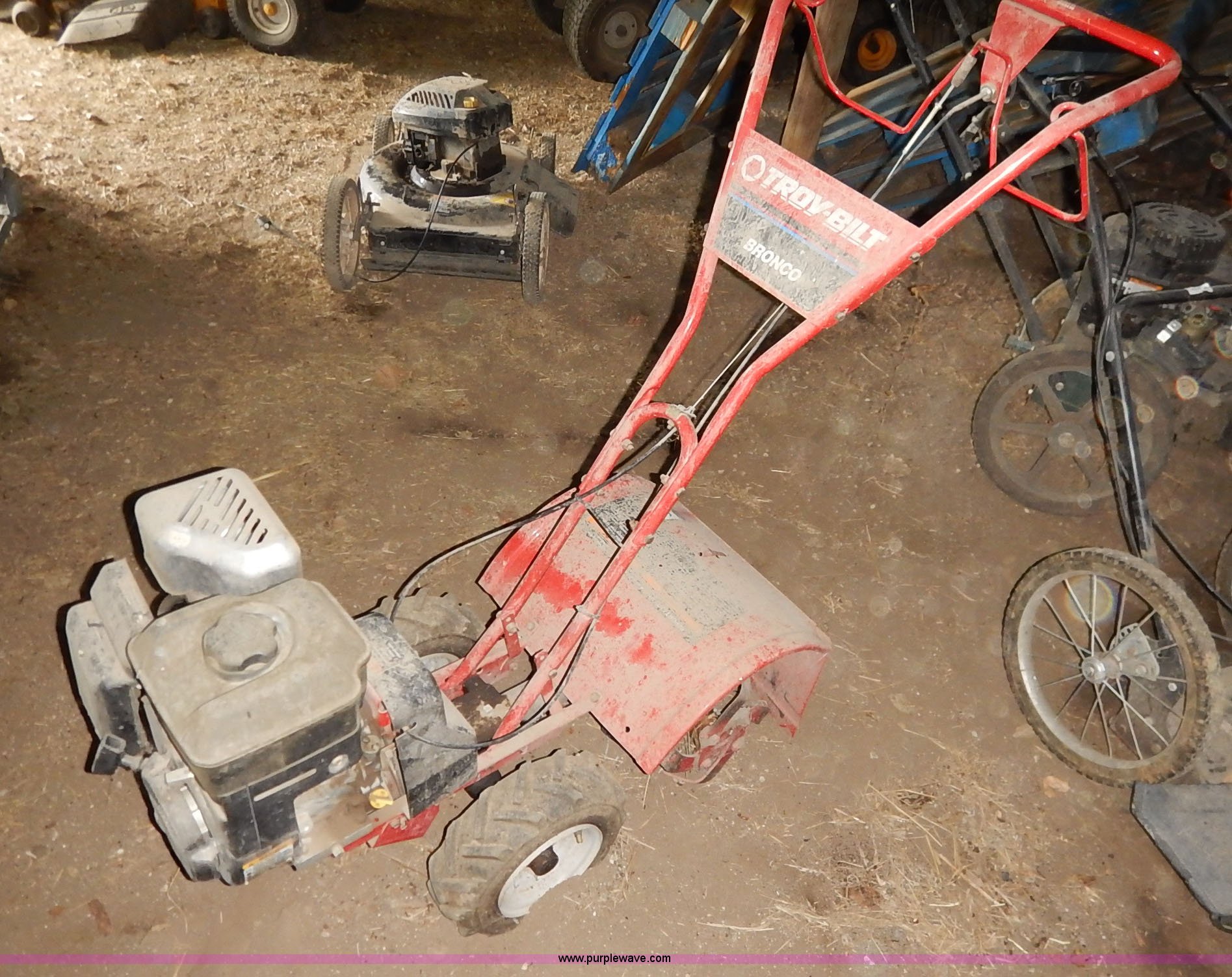 Purple Wave is selling a used Rotary Tillage in Kansas. This item is a Troy-Bilt Bronco rear tine tiller with the following: Troy-Bilt 5.5 HP gas engine, 16"W path, Self-leveling control included, Unknown operating condition