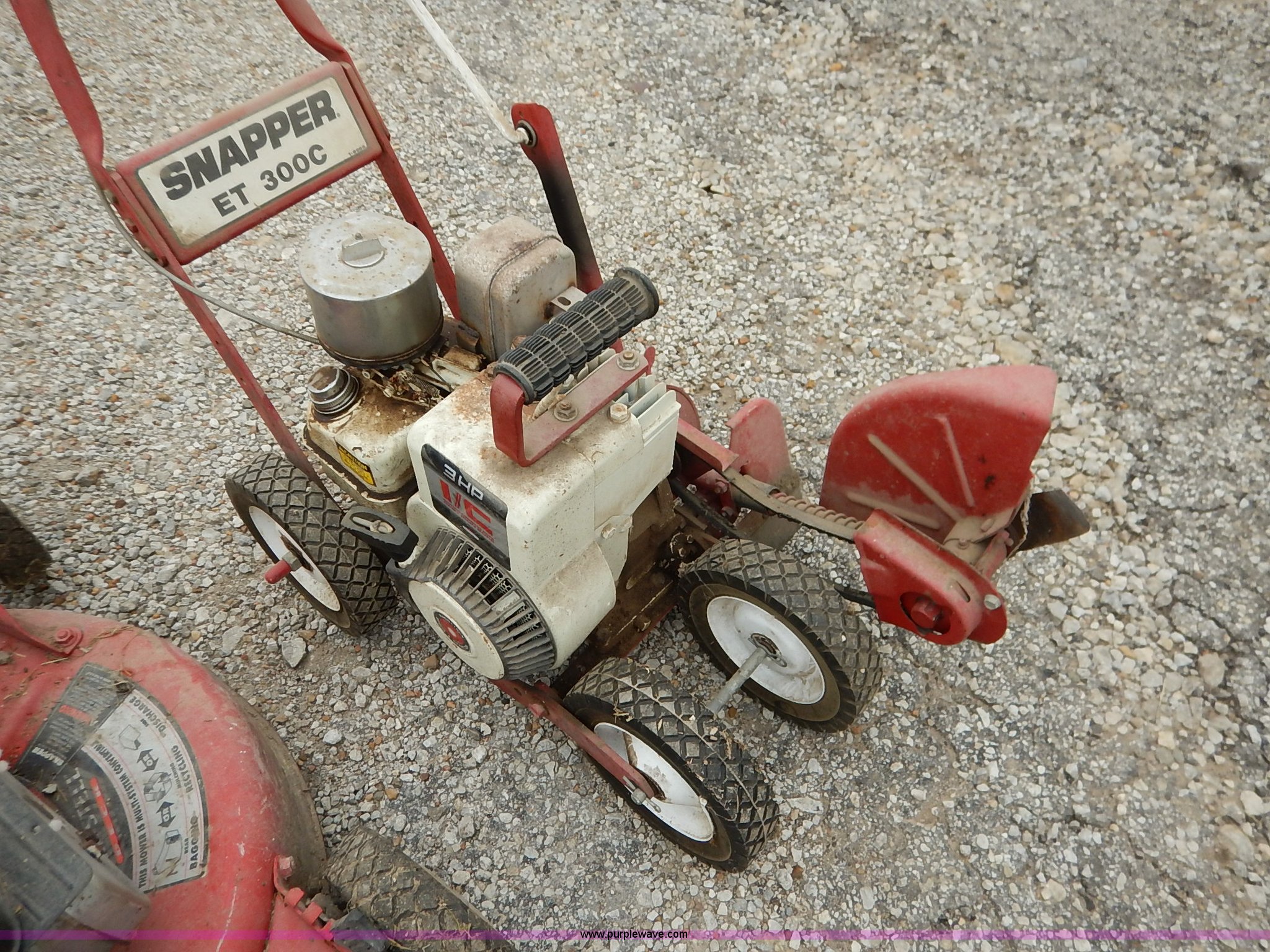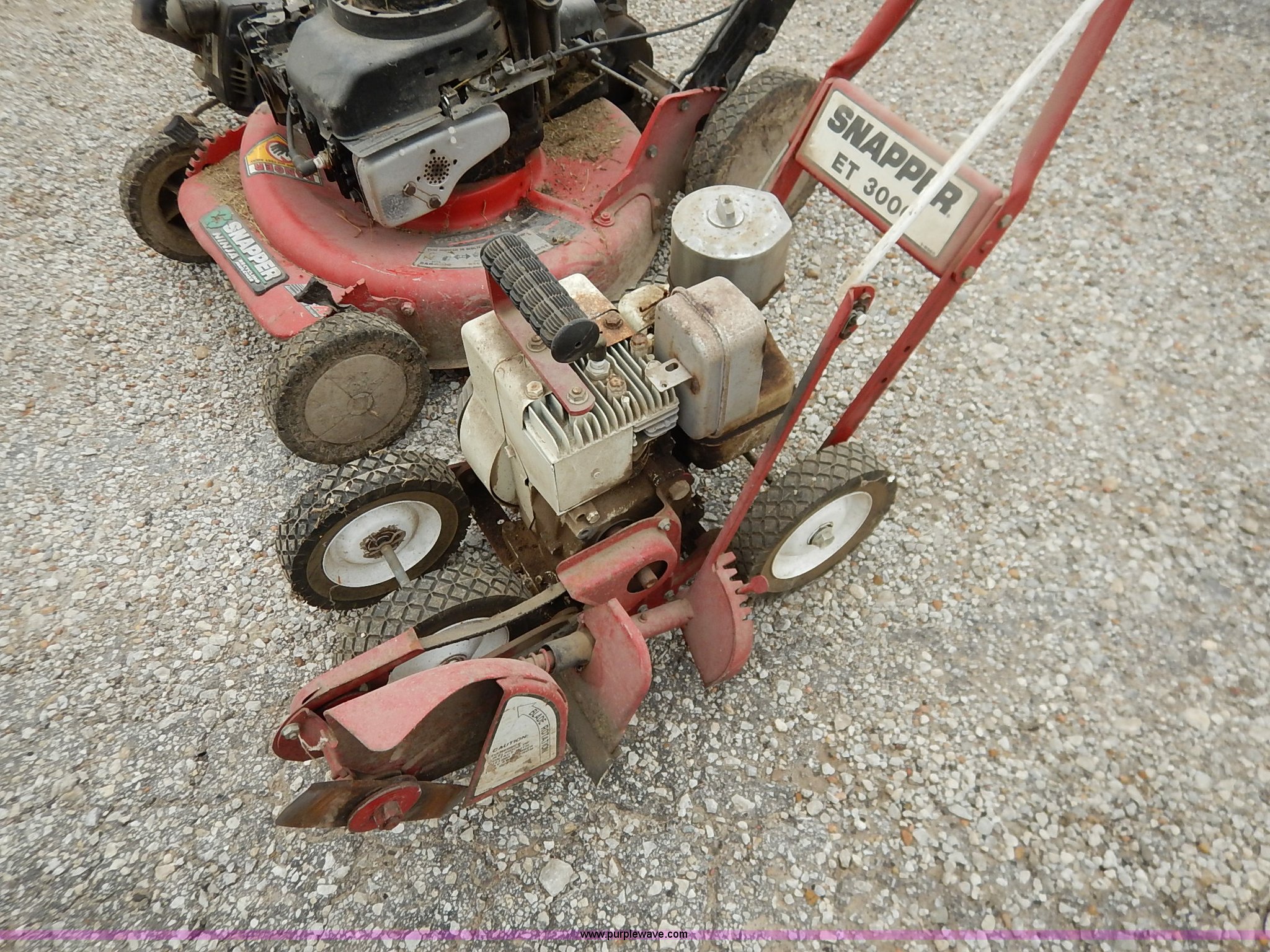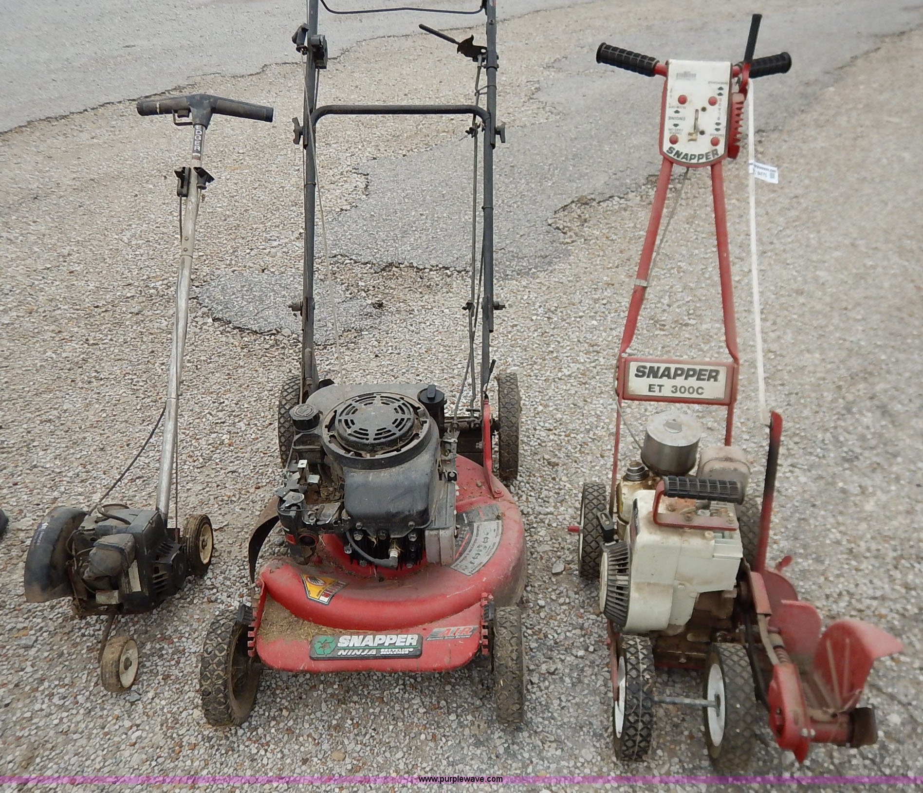 Purple Wave is selling a used Lawn and Garden in Kansas. This item is a Assorted lawn equipment with the following: Snapper ET300C edger, Snapper push mower, Parts missing, Edger, Unknown operating conditions