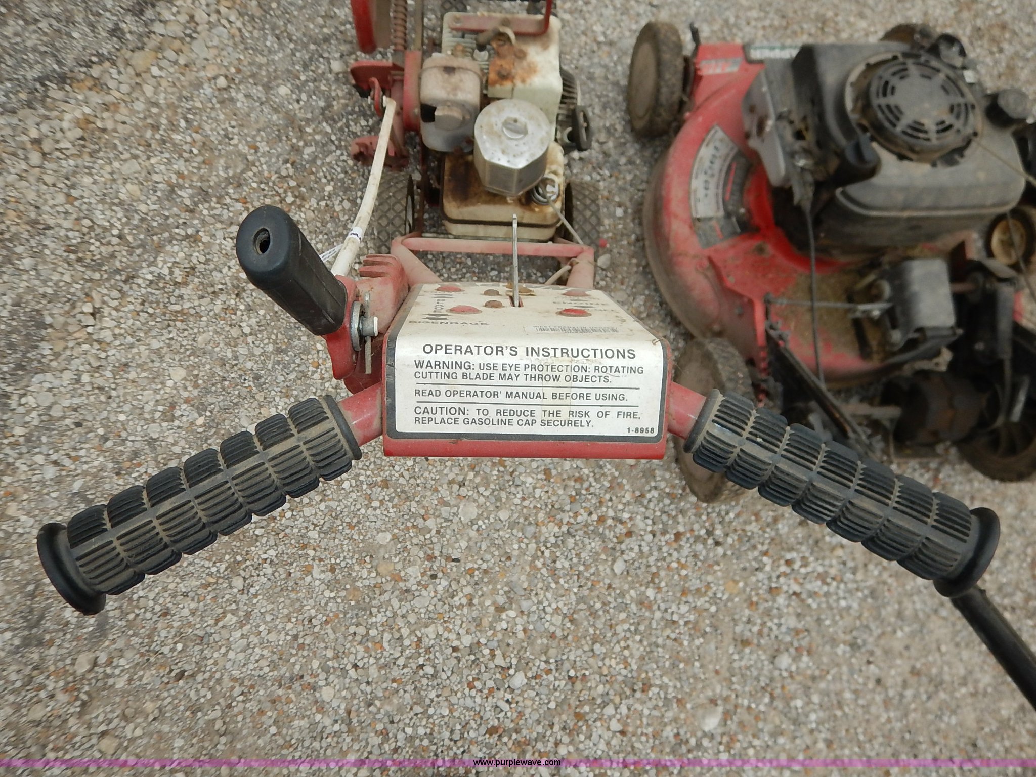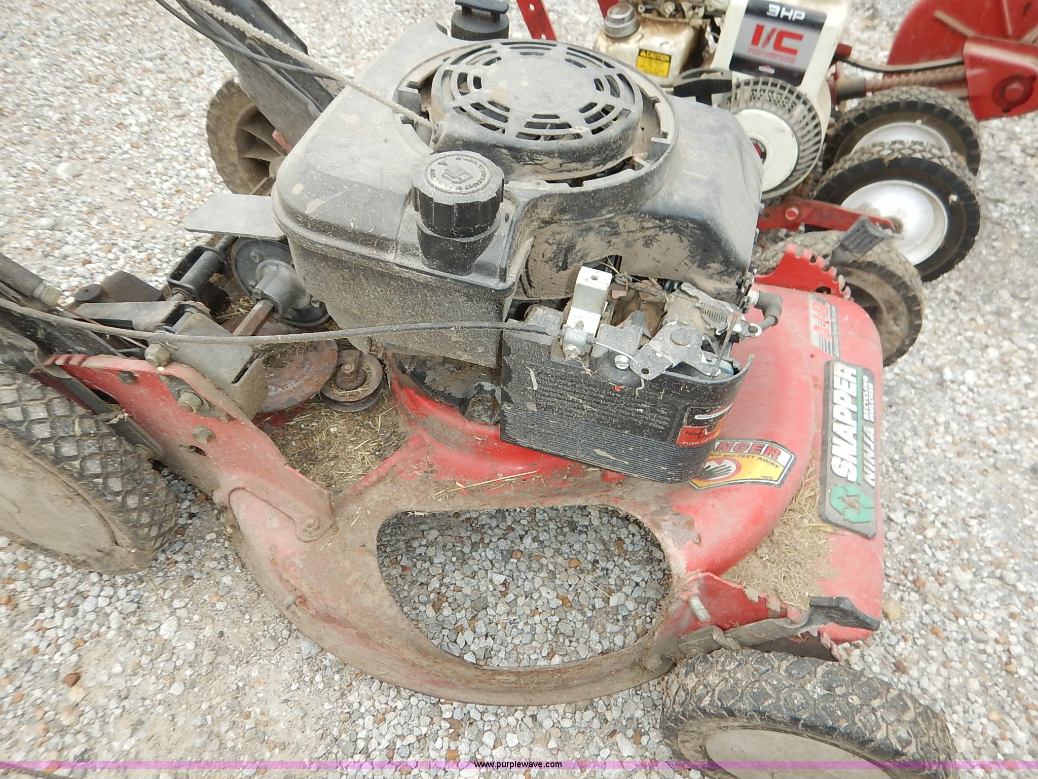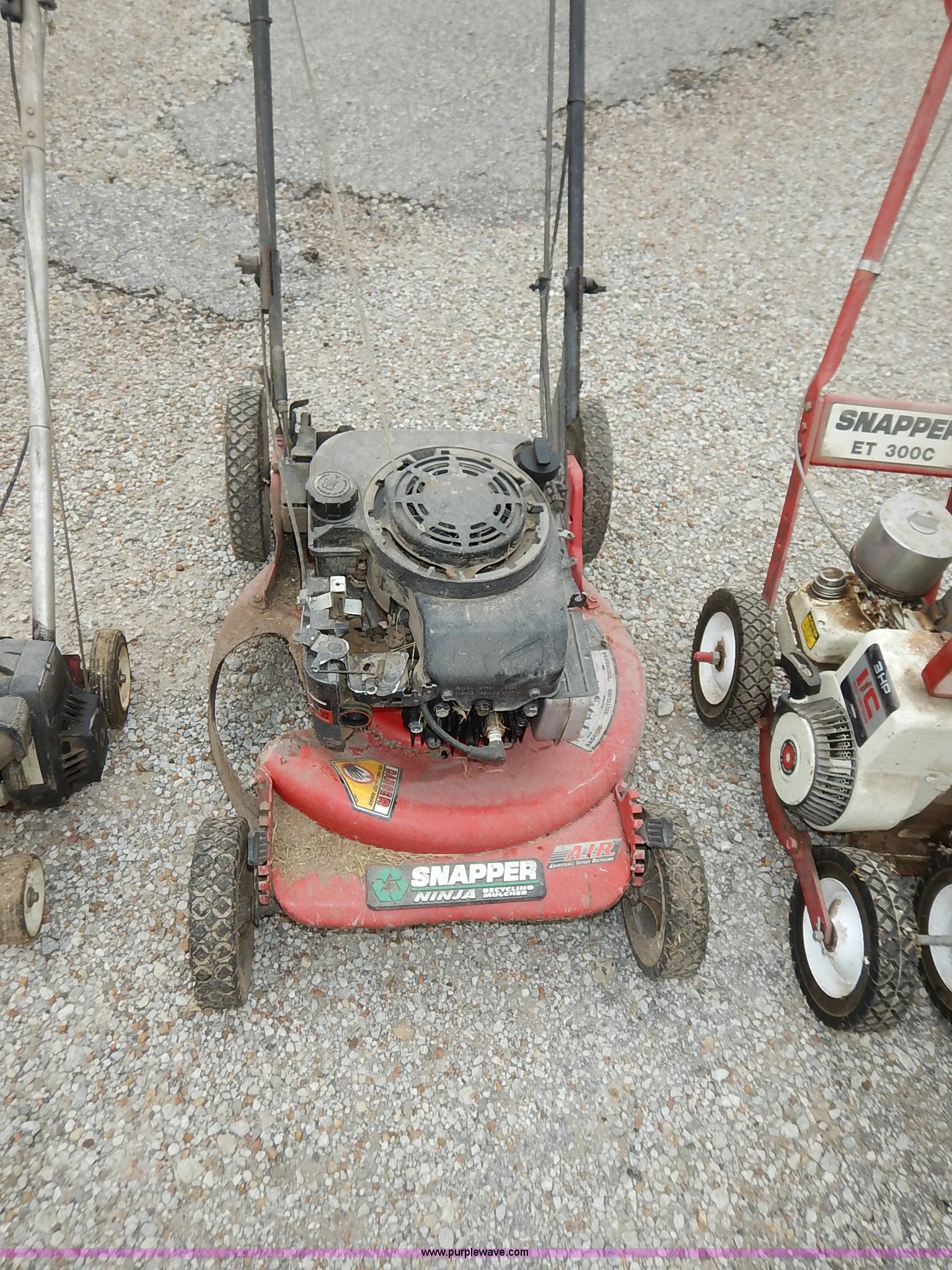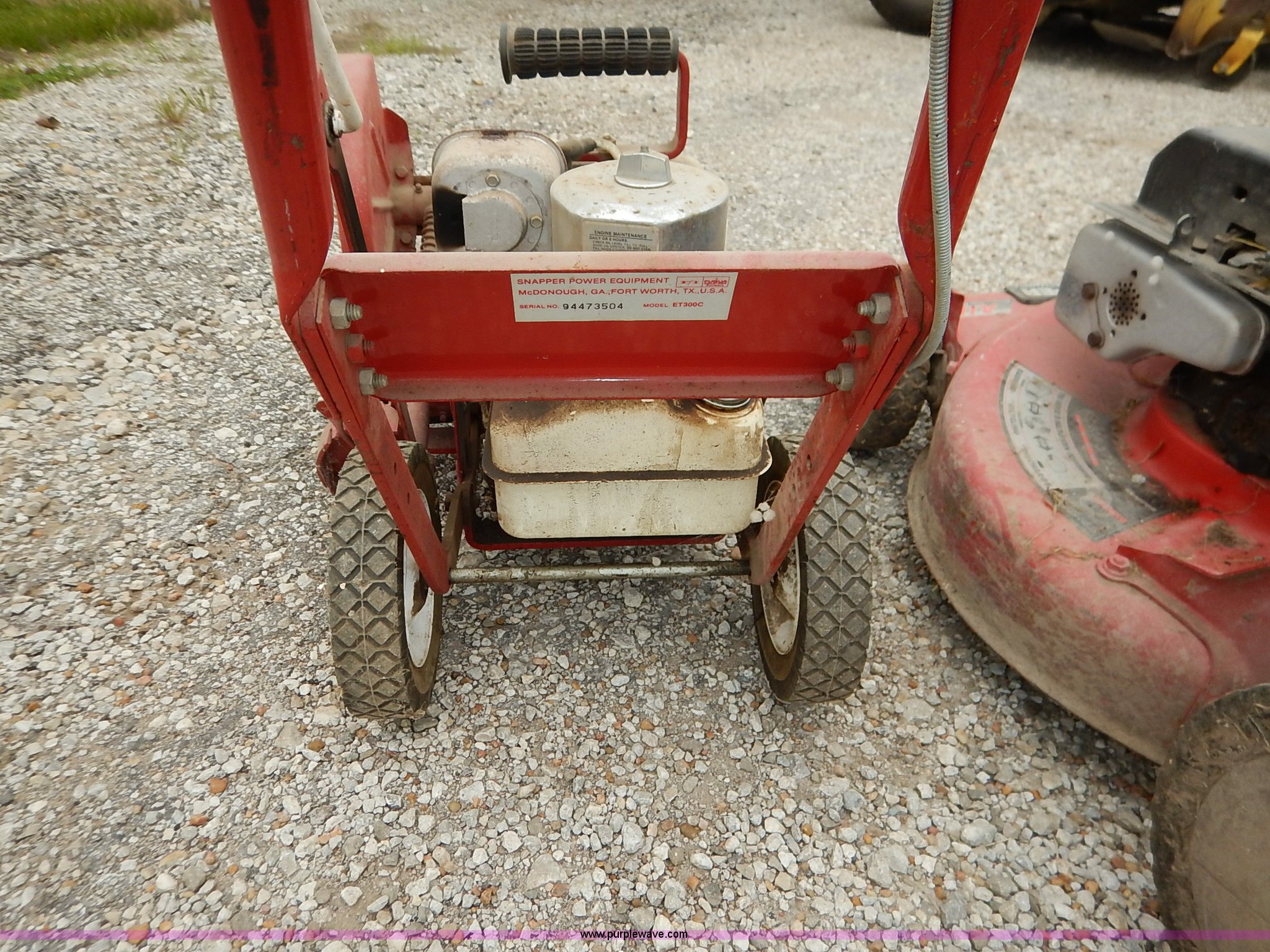 Purple Wave is selling a used Lawn and Garden in Kansas. This item is a Assorted lawn equipment with the following: Snapper ET300C edger, Snapper push mower, Parts missing, Edger, Unknown operating conditions
