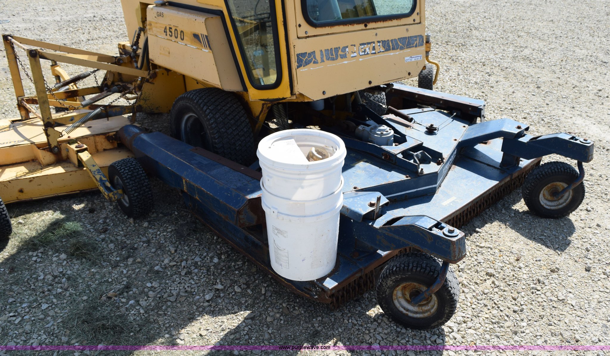 Purple Wave is selling a used Commercial Turf Mower in Kansas. This item is a Hustler 4500 lawn mower with the following: 4,601 hours on meter, 12'W cut, Four cylinder gas engine, Hydrostatic transmission, Cab, Wipers, Work lights, Counter weights, 54" snow blower attachment, Weld-on cutting edge and blade, 23x10.50-12 drive tires, Serial 8204953