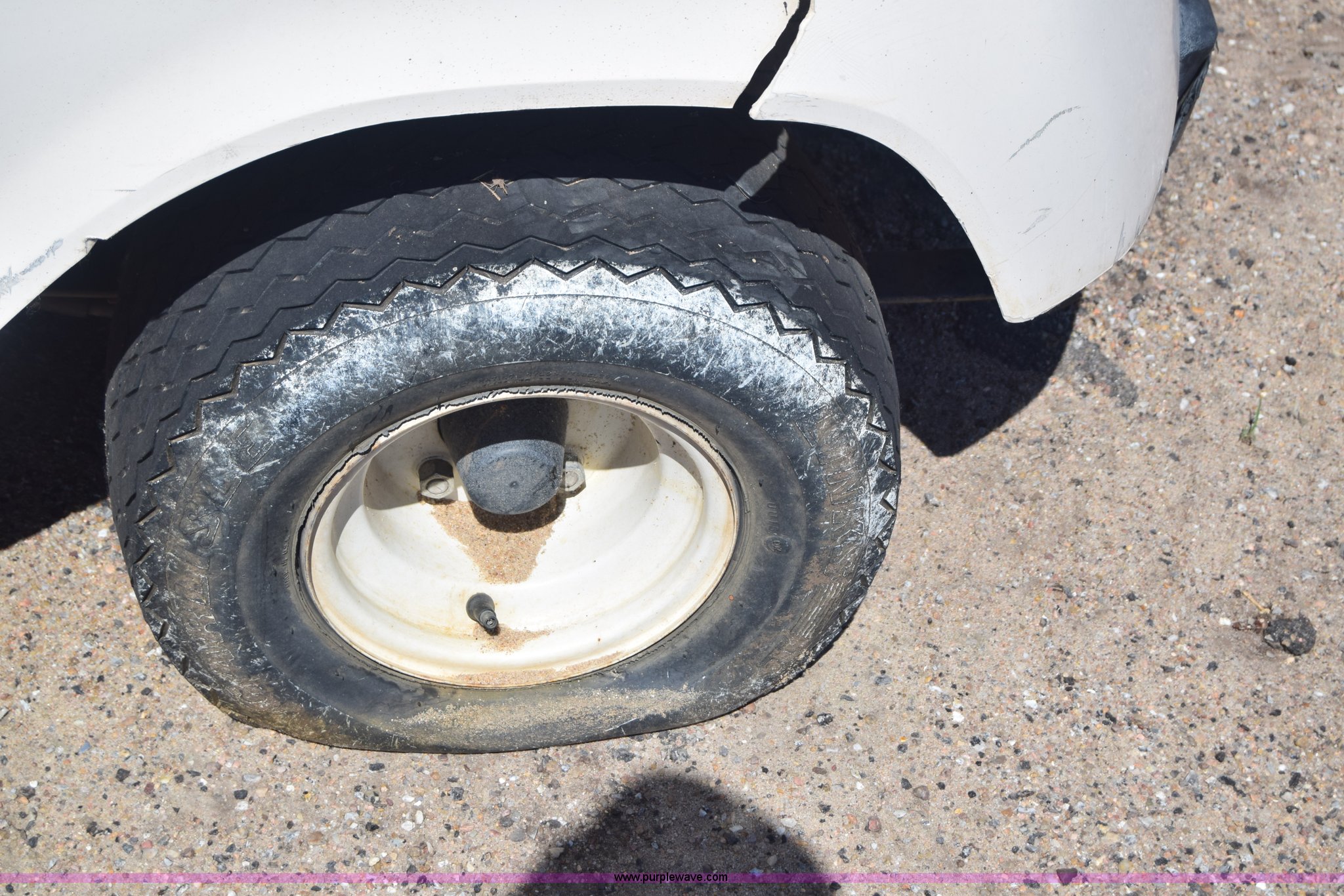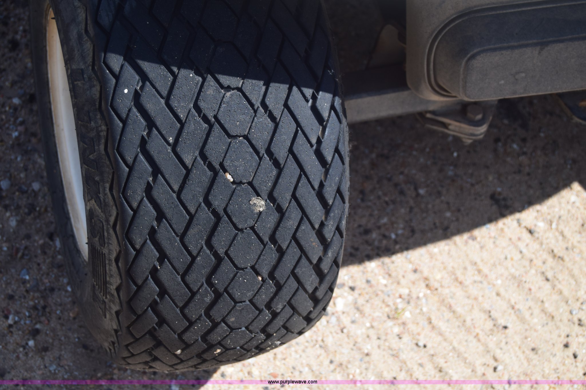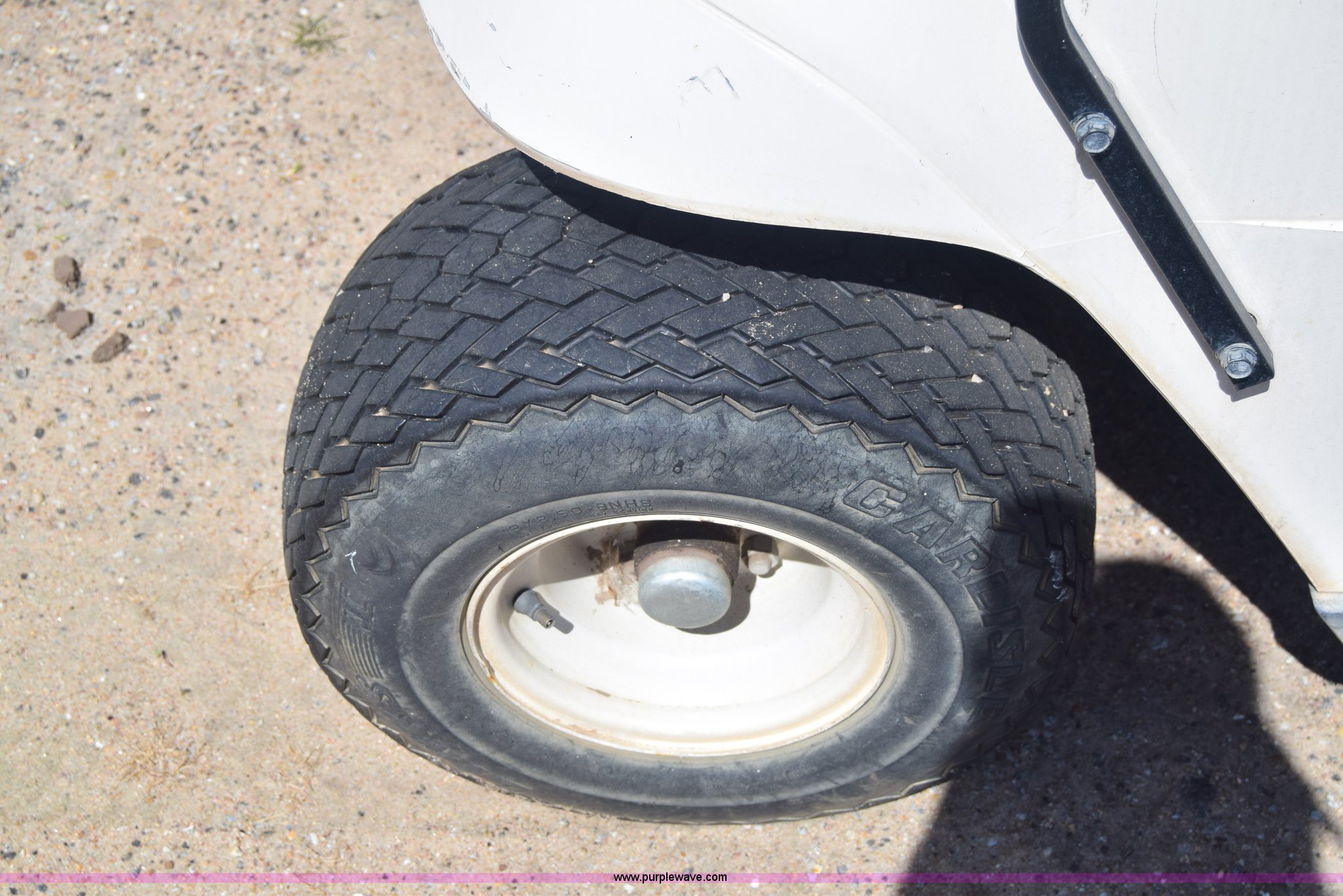 EZ GO golf cart. Forward and reverse, Canopy, Spring suspension , 18 x 18.50-8 tires, Flat tires, Non-operational unit, Serial 1291721. City of Cheney. 131 N. Main. Cheney, KS 67025