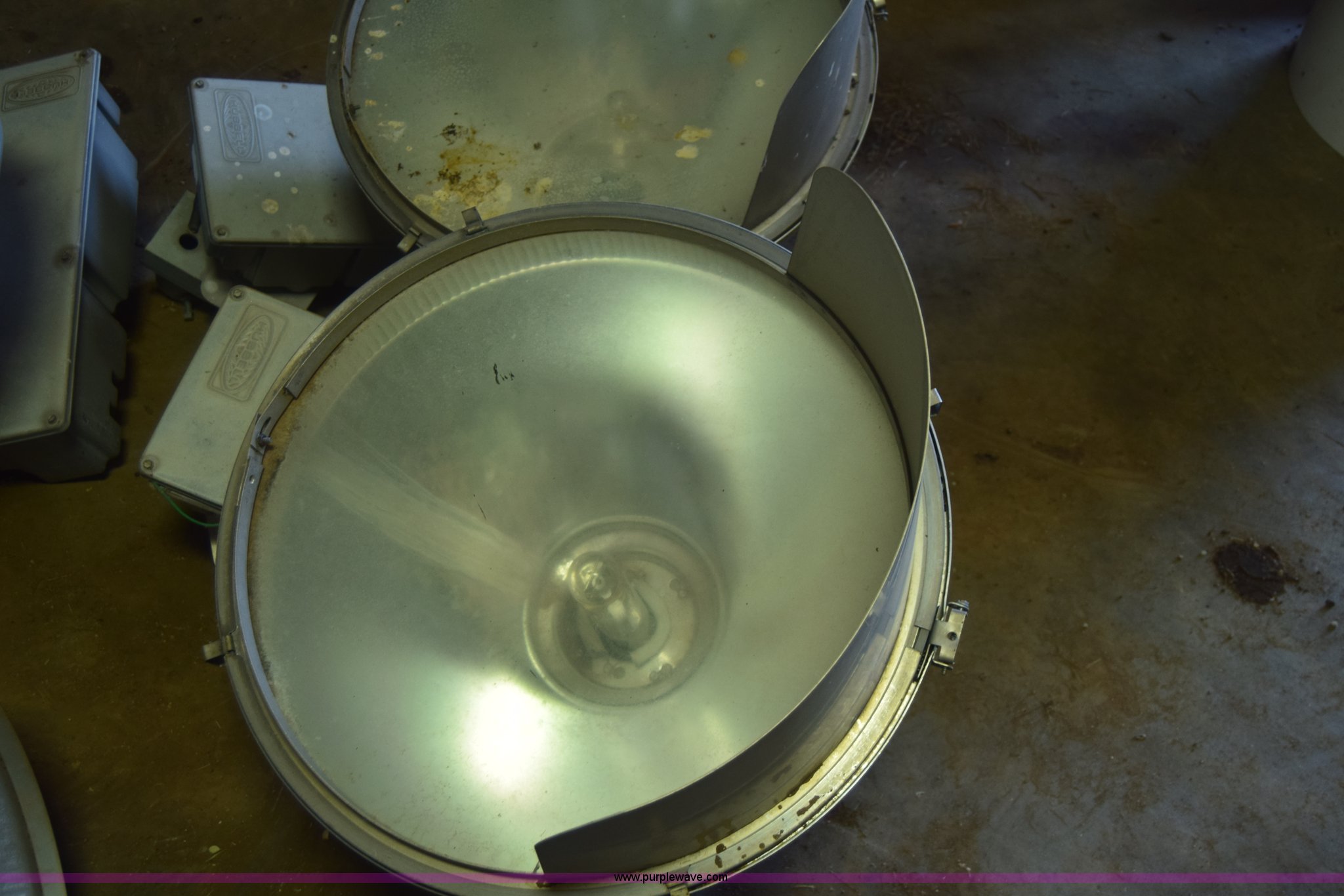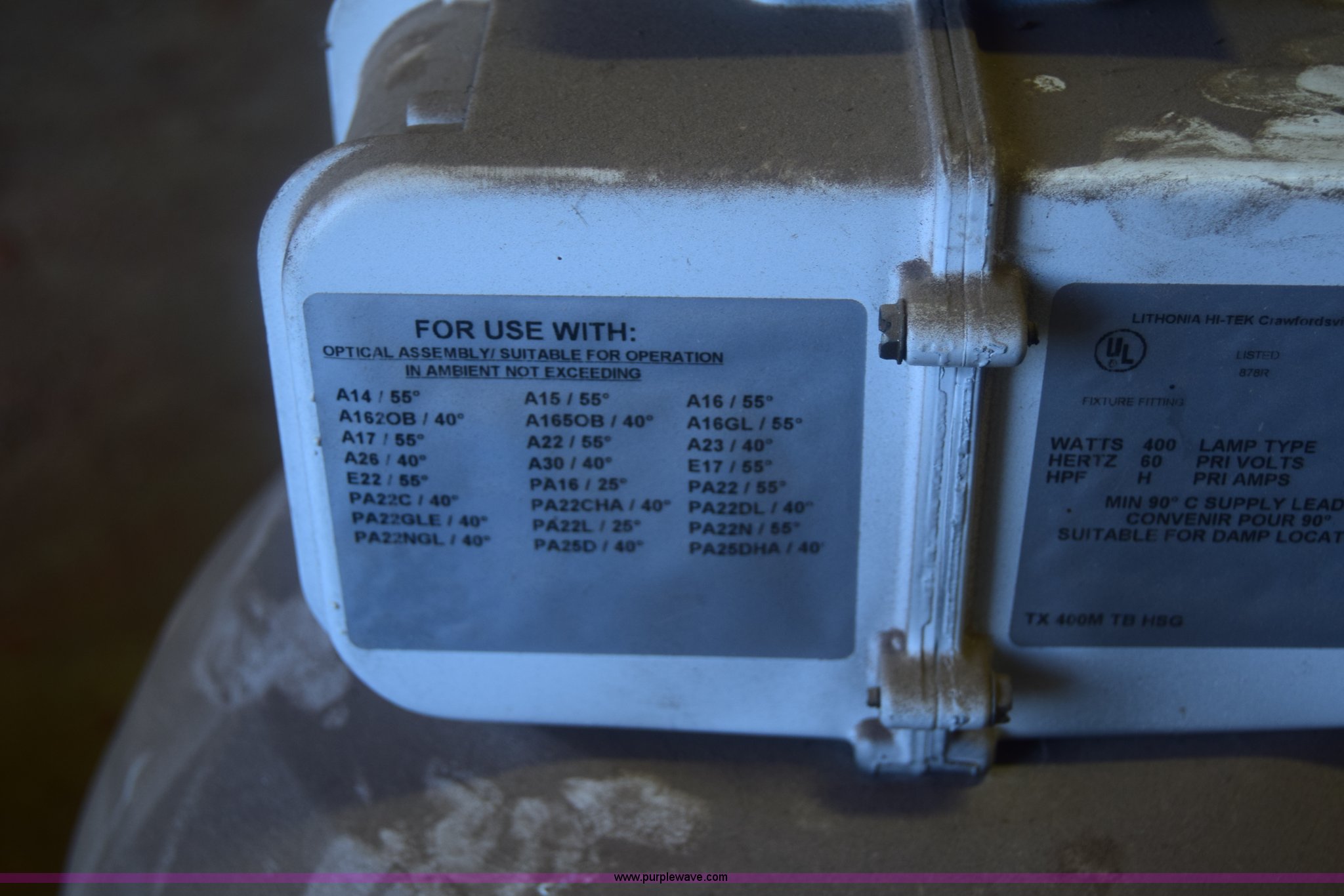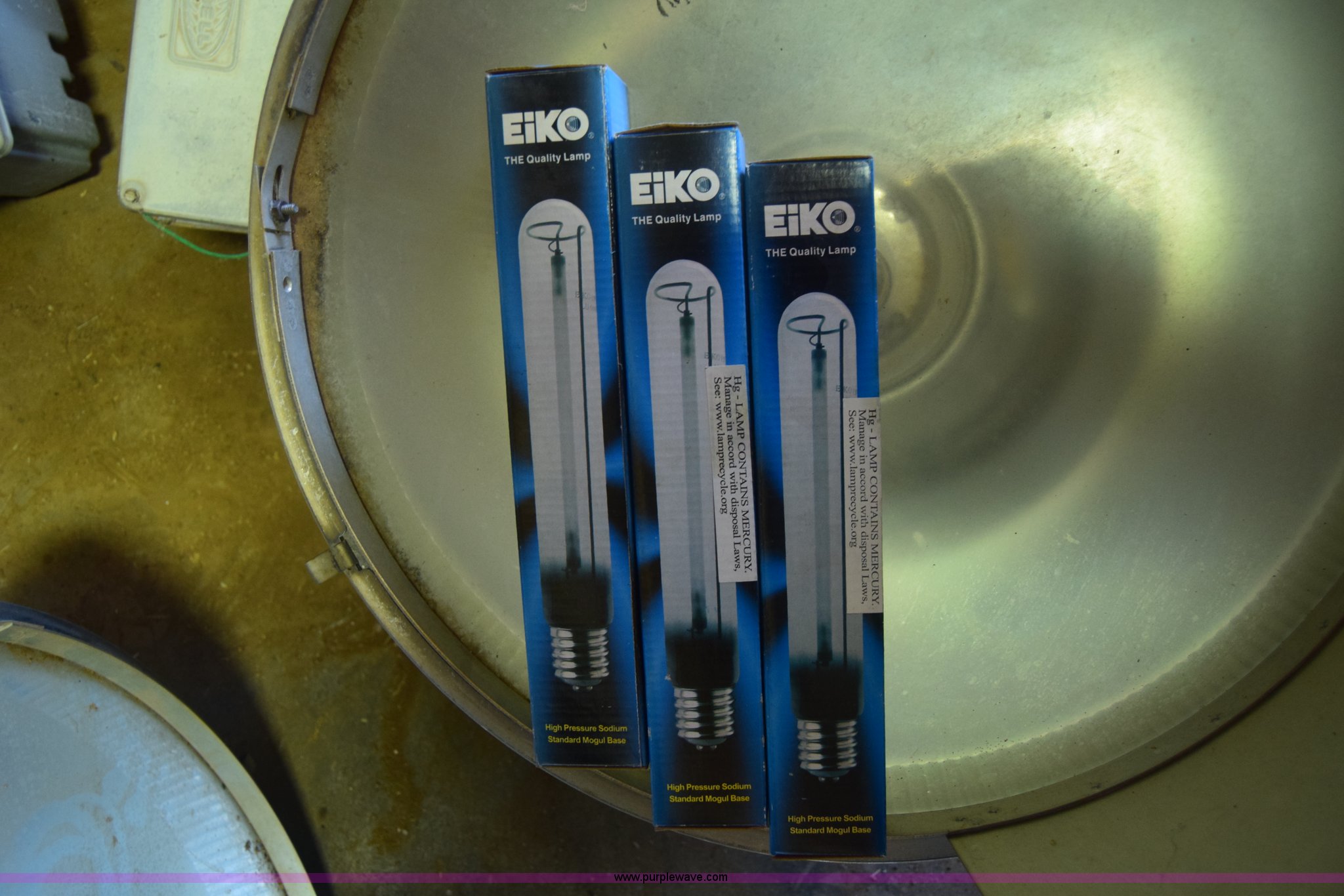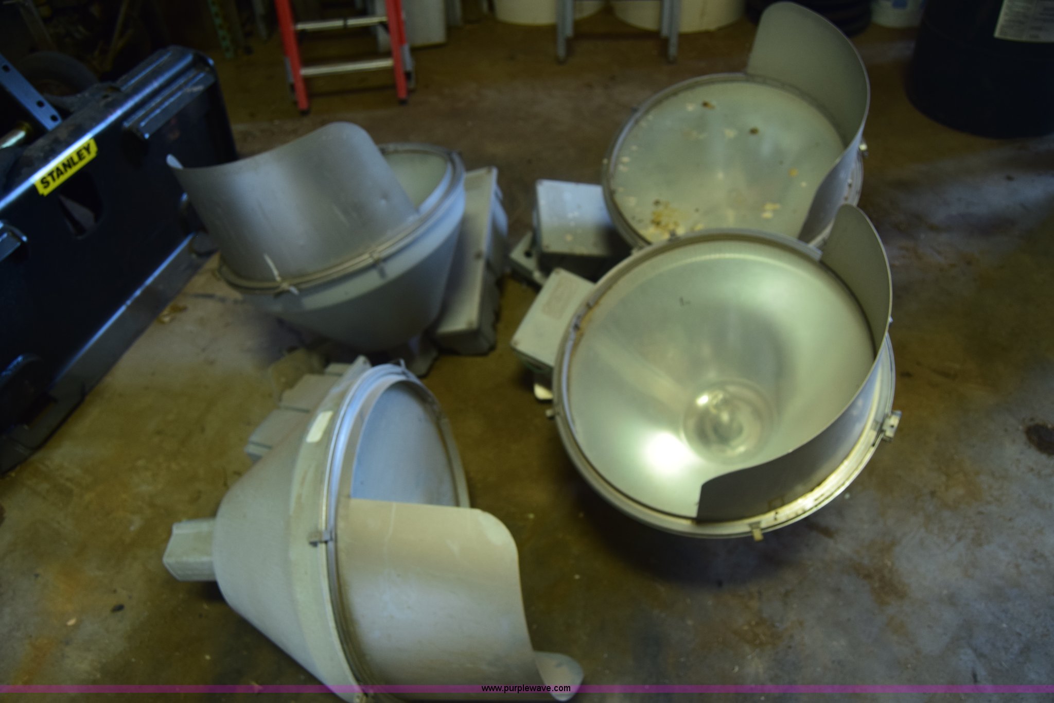 Purple Wave is selling a used Building Materials in Kansas. This item is a Assorted lights with the following: (3) Lithonia HiTek shop lights, 400 watts, (4) Hubbell lights, 600 watts, (3) additional bulbs included