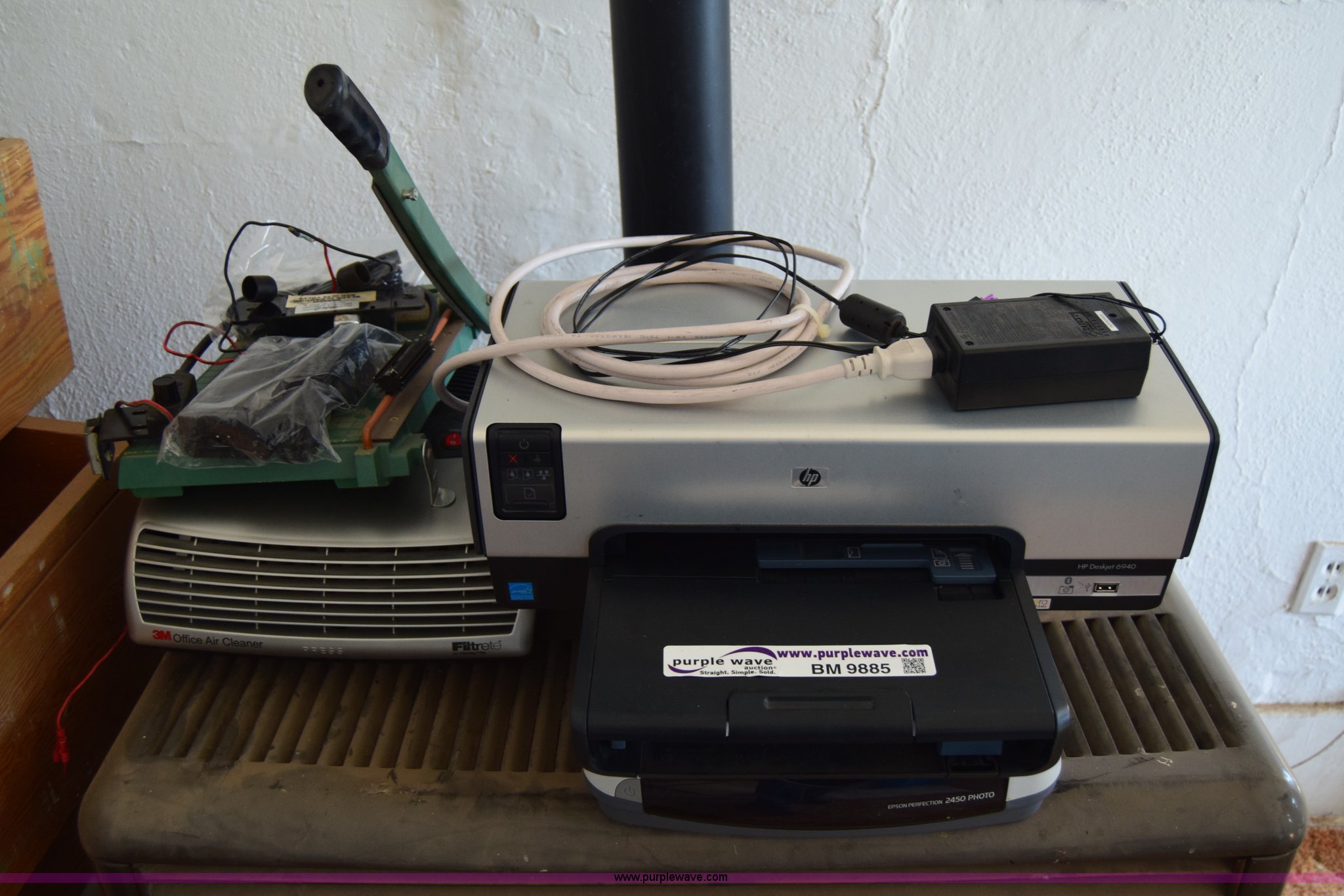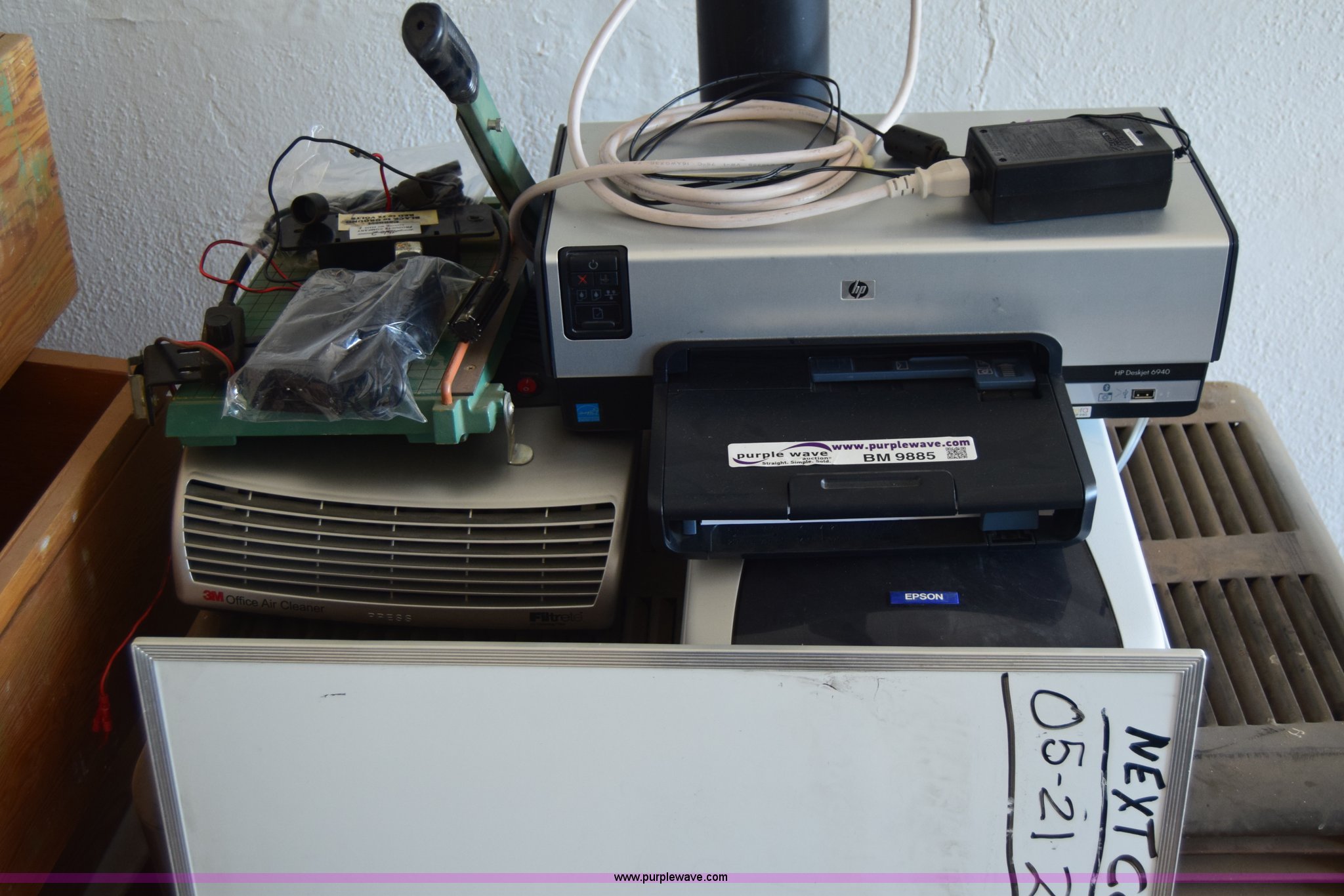 Purple Wave is selling a used Office Supplies and Equip. in Kansas. This item is a Assorted office supplies with the following: HP printer, Epson scanner, 3M air cleaner, Paper cutter, Marker board