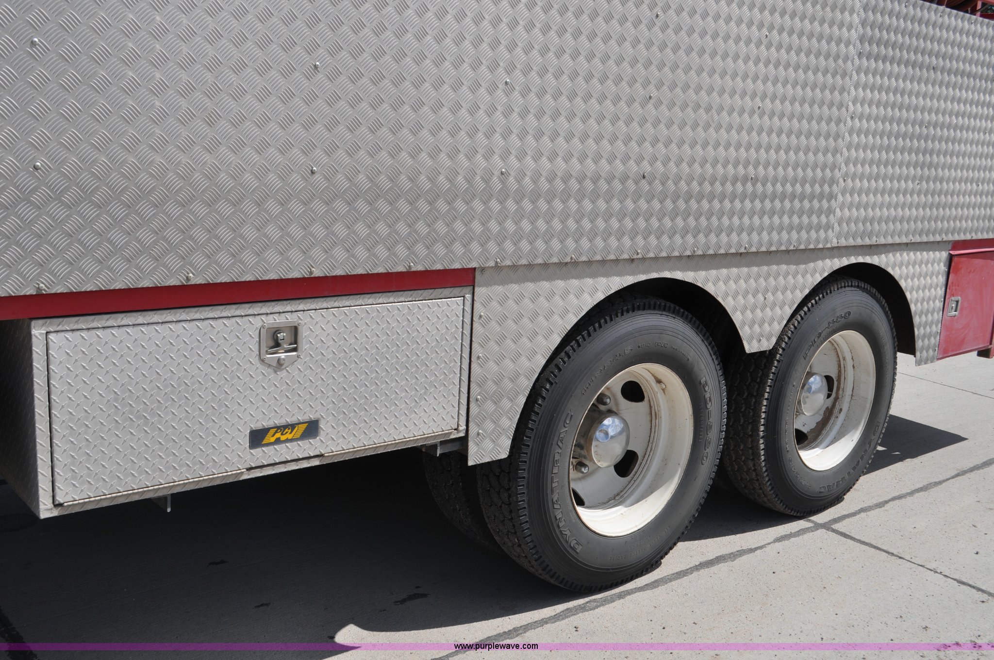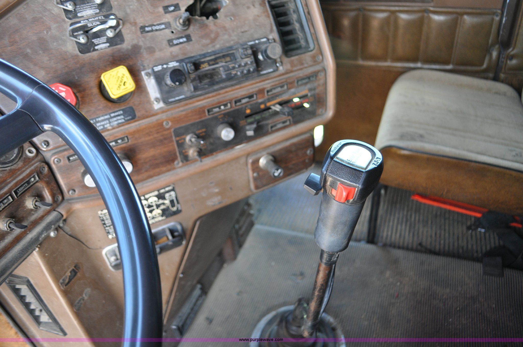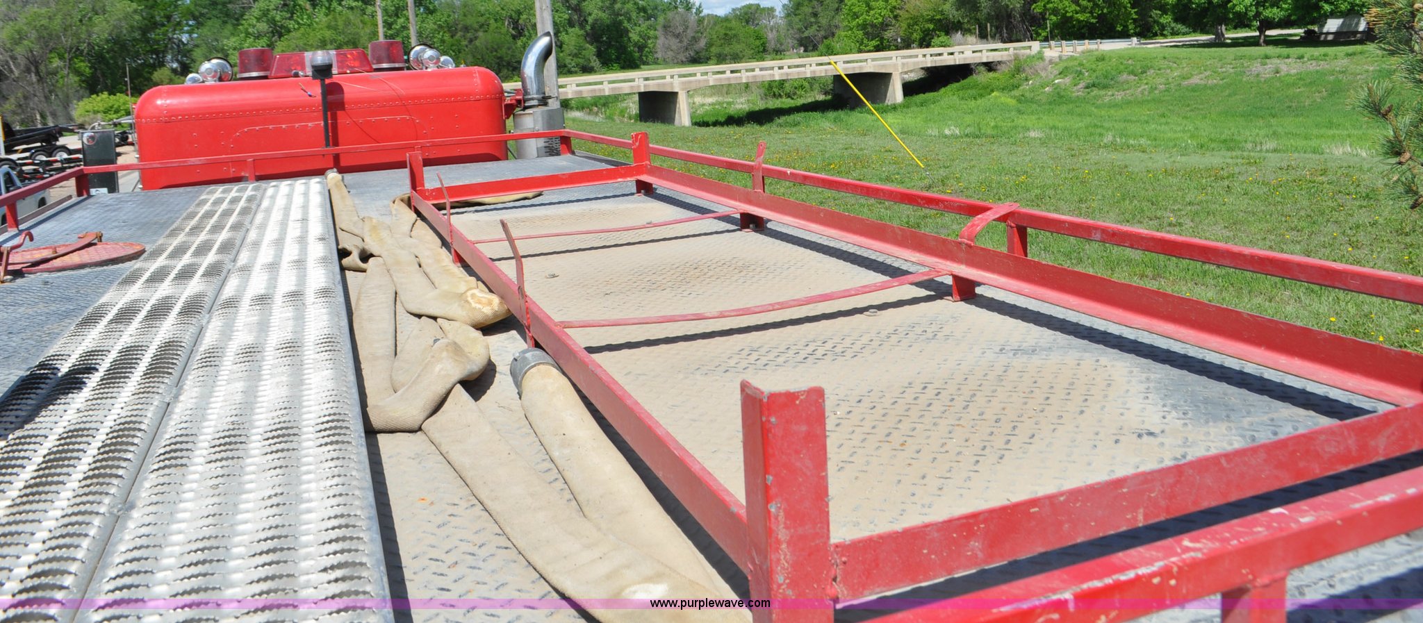 Purple Wave is selling a used Fire Truck or Emergency Vehicle in Nebraska. This item is a 1984 Freightliner FLC fire truck with the following: 553,270 miles on odometer, Cummins 400 Big Cam six cylinder turbo diesel engine, 13 speed manual transmission, Inter-axle differential lock, Heat, AM/FM/cassette, Air suspension seat, Passenger power window, Leather interior, Block heater, Visor, 18'L bed, 2' rear extension, Approx. 3,000 gallon water tank, Storage compartments, Hose and reel, Top fill, Tank water dump chute, Warning lights, Vanguard 18 HP pump motor, Non-operational,, Dual fuel tanks, Spring suspension, Air brakes, 11R24.5 tires, GVWR 46,000 lbs, FAWR 12,000 lbs, IAWR 17,000 lbs, RAWR 17,000 lbs, Transmission has been replaced
