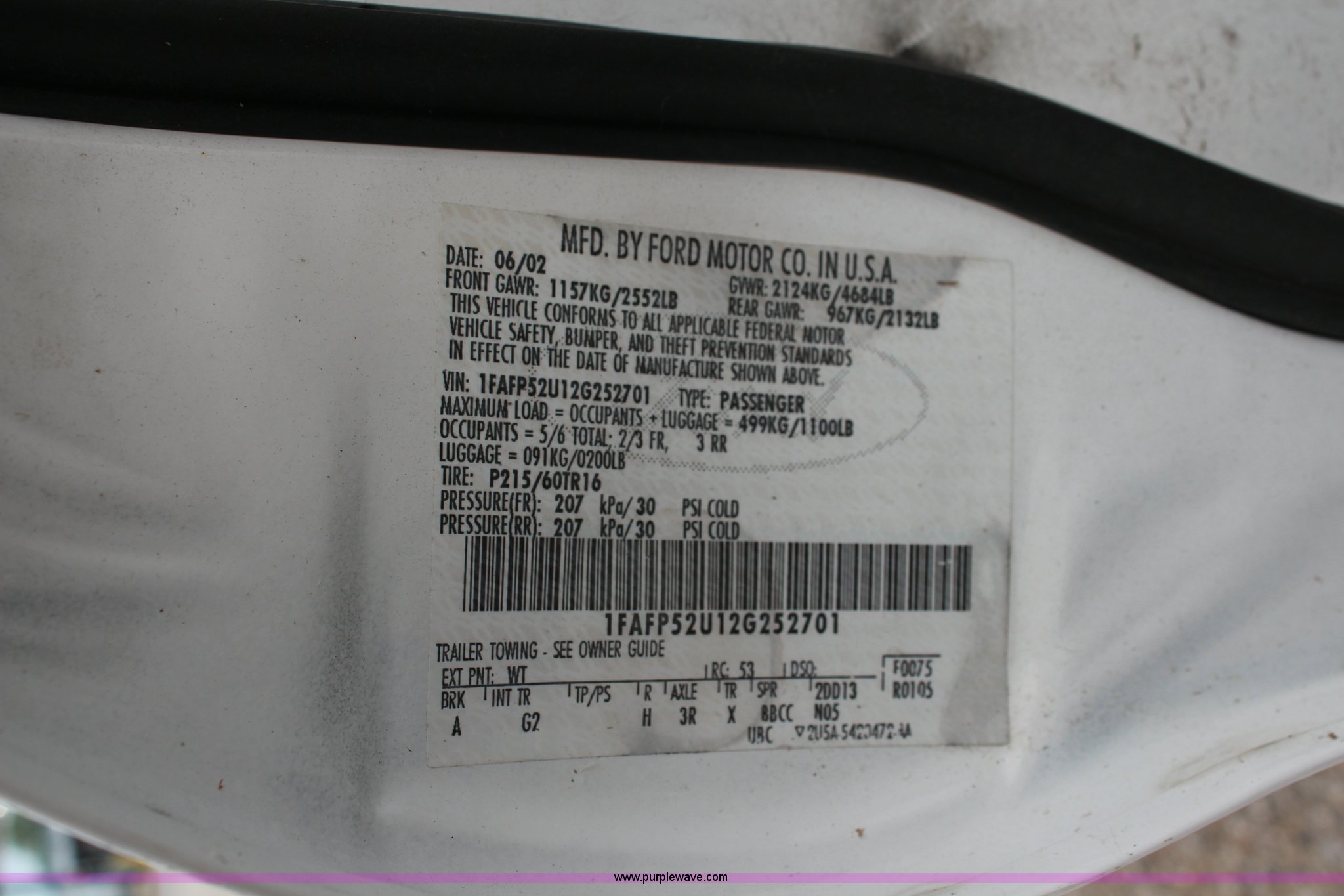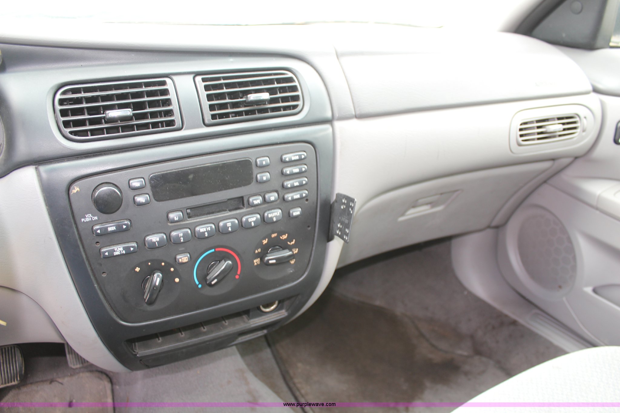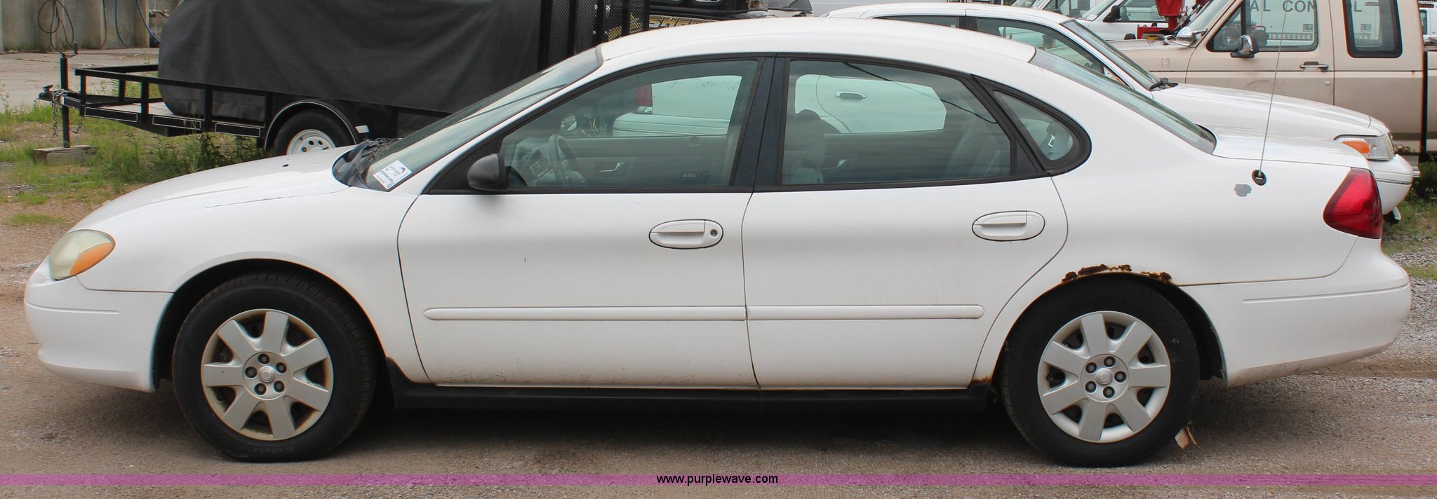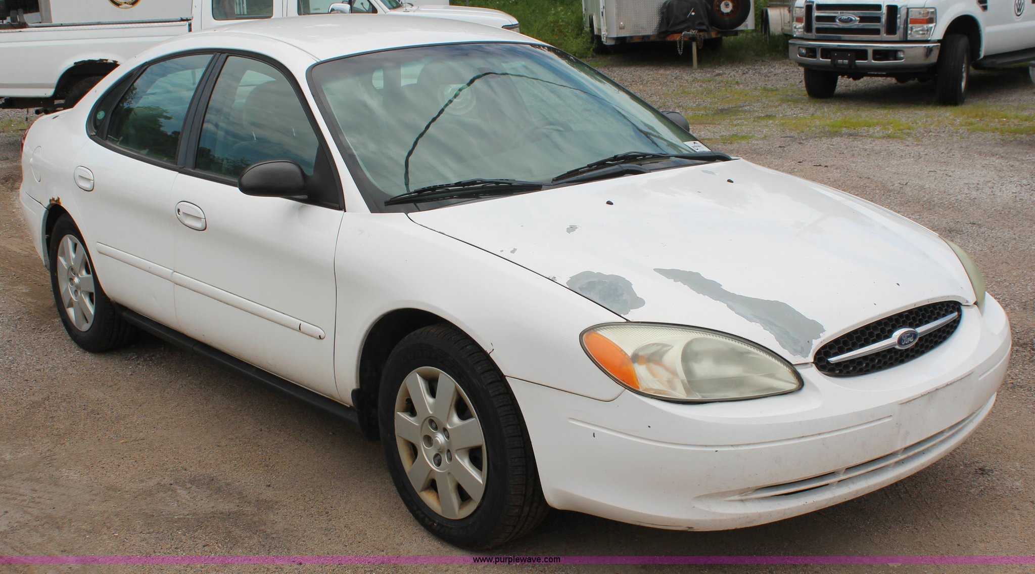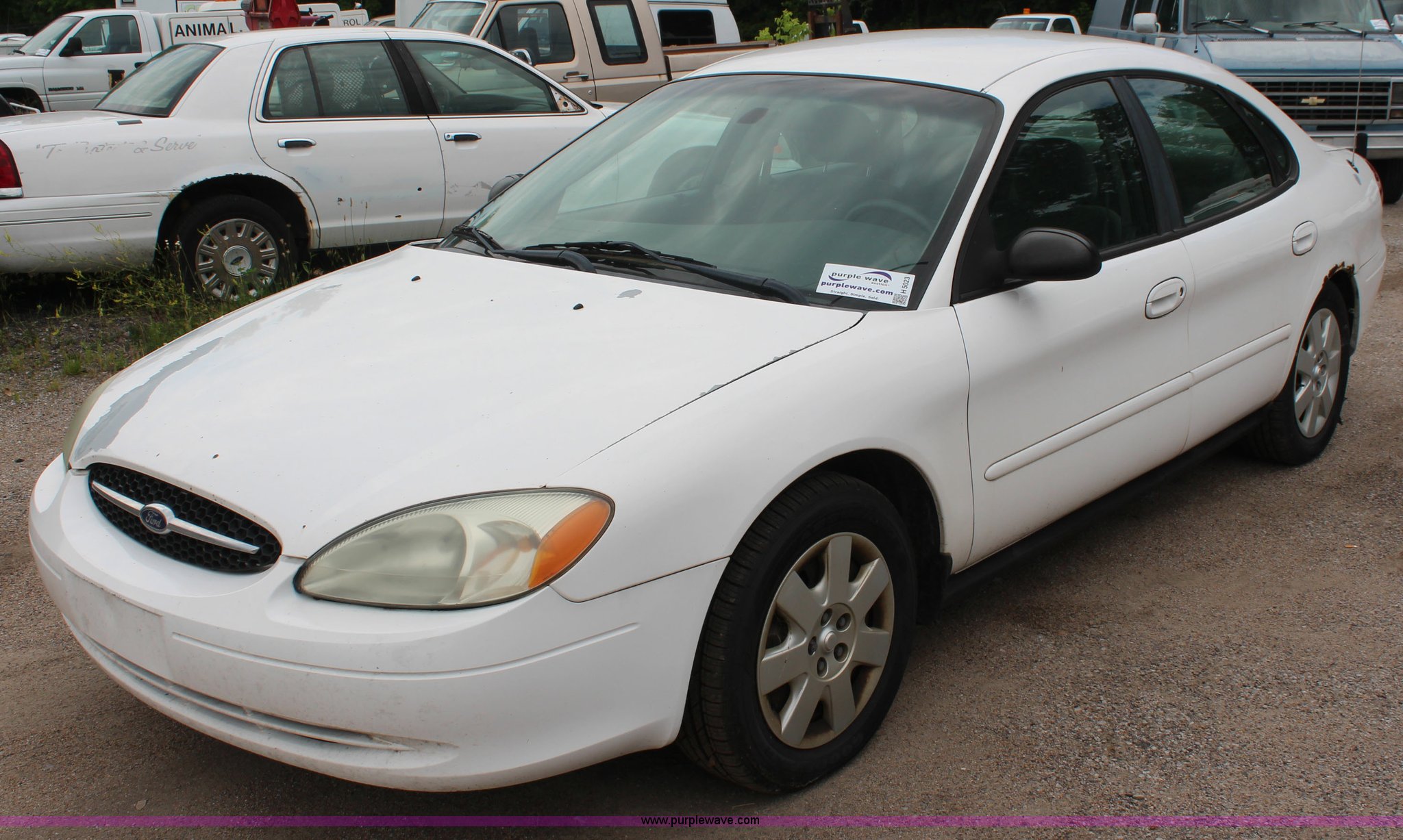Purple Wave is selling a used Passenger Vehicle in Kansas. This item is a 2002 Ford Taurus with the following: 134,460 miles on odometer, 3.0L V6 OHV 12V gas engine, Automatic transmission, AC and heat, Tilt, Cruise, AM/FM/cassette, Power windows, locks, and mirrors, Cloth interior, 215/60R16 tires, Interior/exterior cosmetic damage, Rust, Unit # 2701