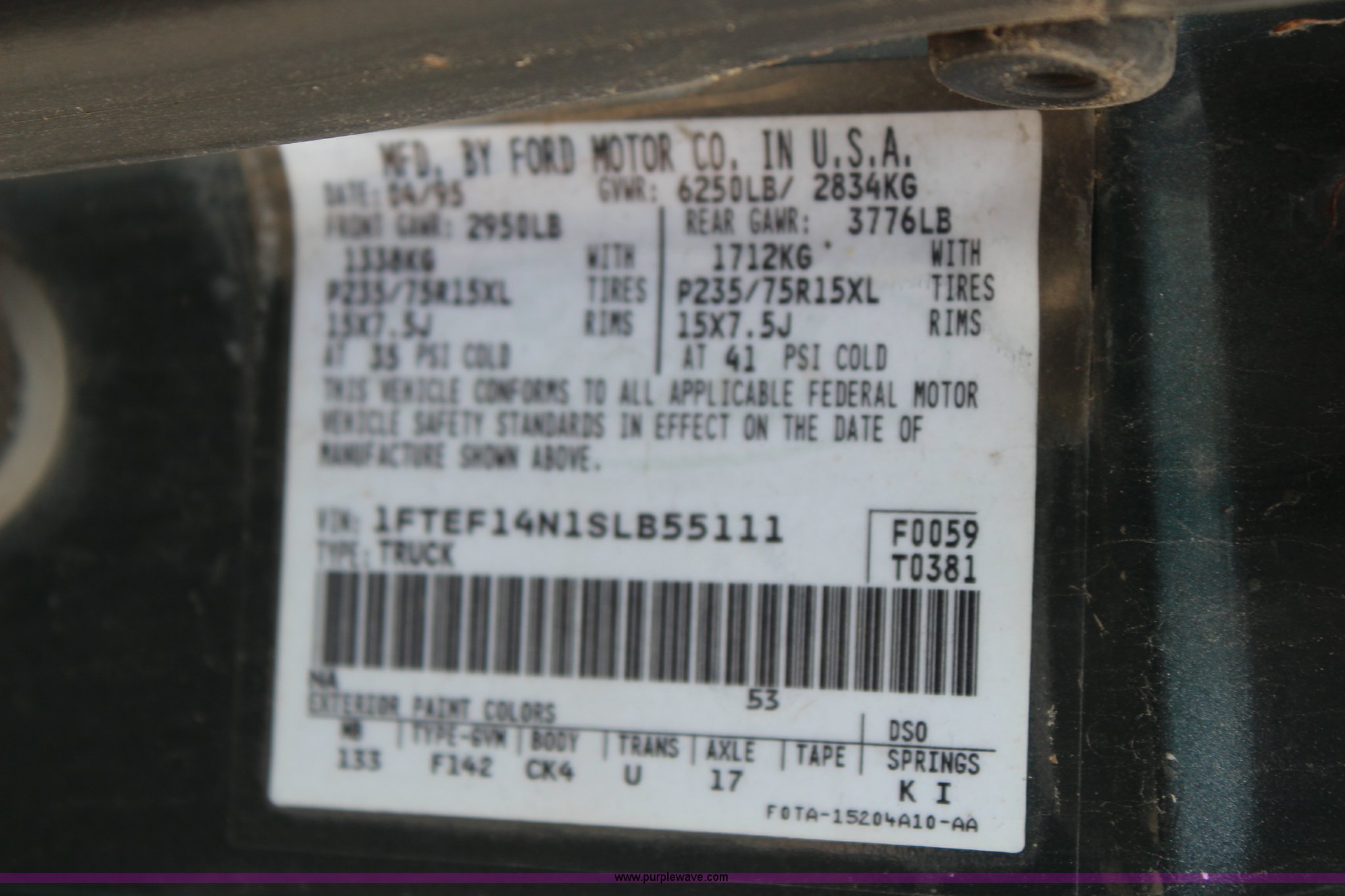 Purple Wave is selling a used 1/2 Ton Pickup or Van in Kansas. This item is a 1995 Ford F150 XL pickup truck with the following: 134,872 miles on odometer, 5.0L V8 OHV 16V gas engine, Automatic transmission, Four wheel drive, Heat, AM/FM, Manual windows and locks, Cloth interior, Weather Guard toolbox, Duel fuel tanks, 235/75R15 tires, Interior/exterior cosmetic damage, Unit# 1005