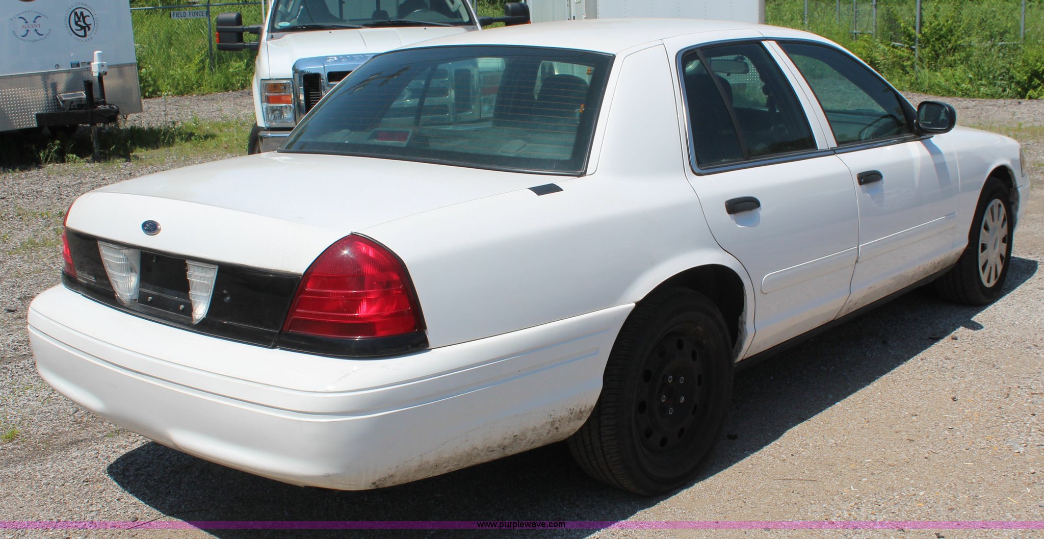Purple Wave is selling a used Passenger Vehicle in Kansas. This item is a 2008 Ford Crown Victoria Police Interceptor with the following: 164,555 miles on odometer, 4.6L V8 SOHC 16V FFV gas engine, Automatic transmission, AC and heat, Tilt, Cruise, AM/FM, Power windows, locks, mirrors, and seat, Cloth interior, 235/55R17 tires, Interior/exterior cosmetic damage, Weak battery, Low tire pressure light is on, Unit # 206