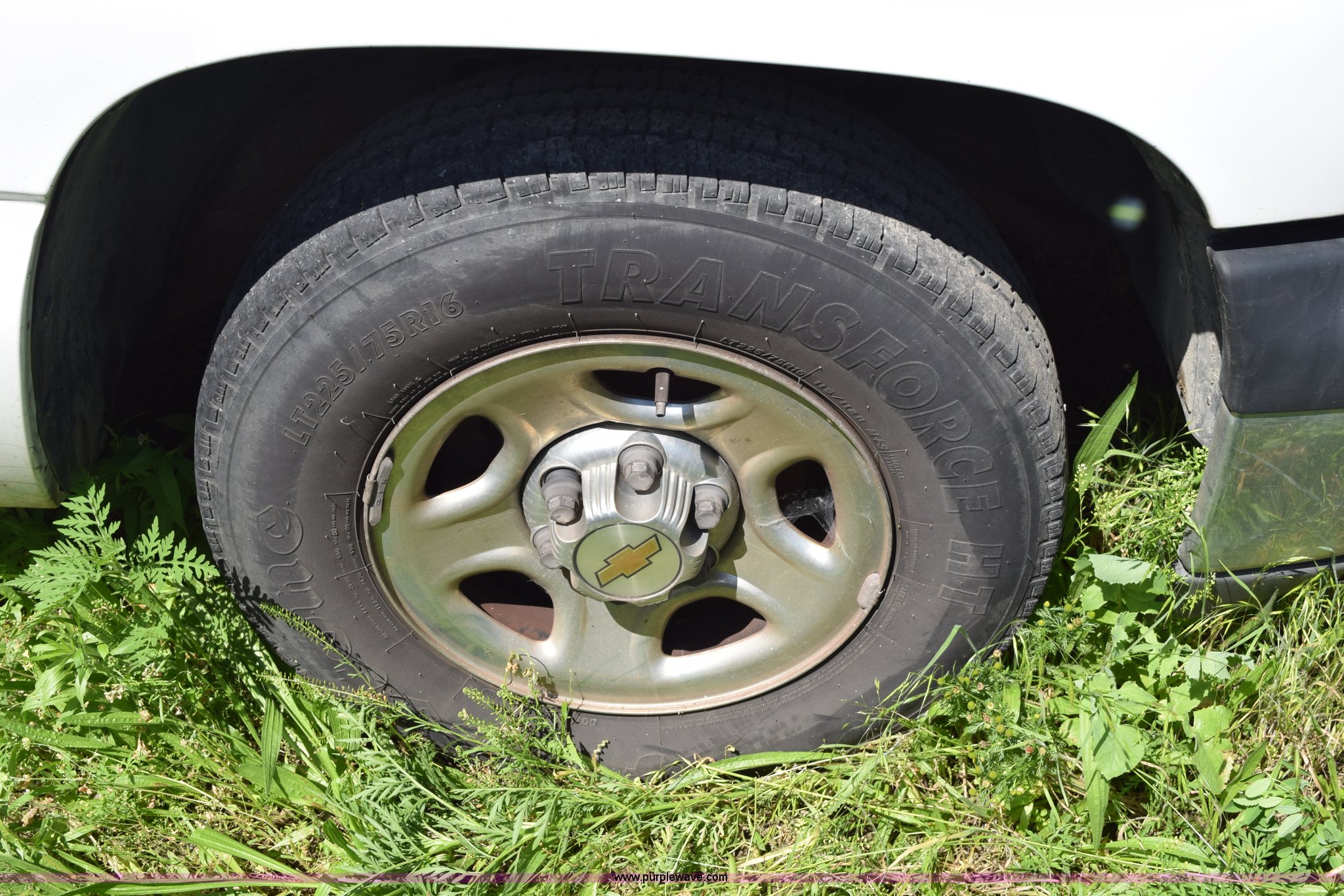 Purple Wave is selling a used 3/4 or 1 Ton Pickup or Van in Kansas. This item is a 2001 Chevrolet 1500 pickup truck with the following: 118,905 miles on odometer, 4.8L V8 gas engine, Automatic transmission, Four wheel drive, AC and heat, Tilt, AM/FM, Manual windows and locks, Cloth interior, Long bed, Tool box, 225/75R16 tires, Interior/exterior cosmetic damage, Unit # 1403