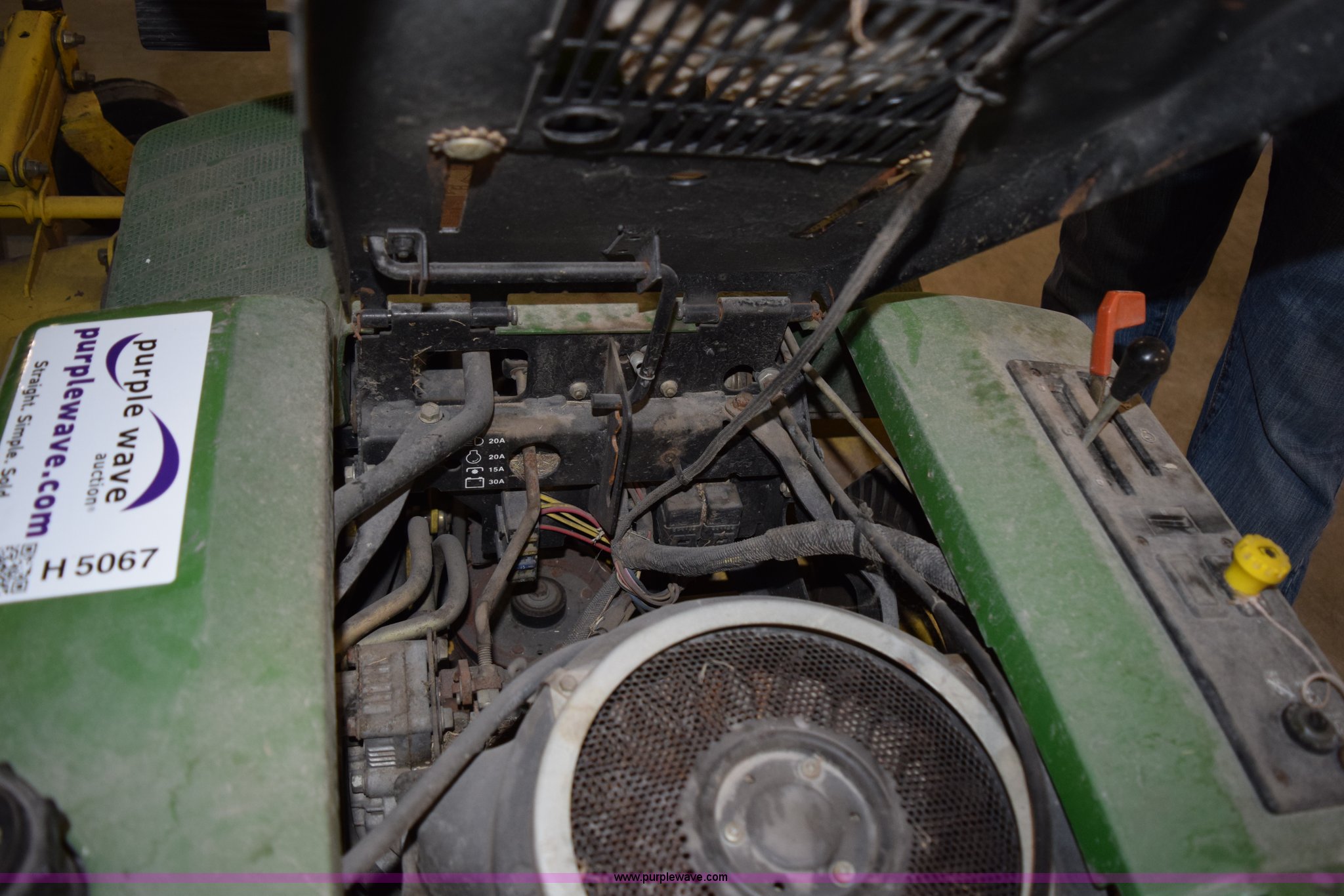 Purple Wave is selling a used Lawn Mower in Kansas. This item is a John Deere F525 riding lawn mower with the following: 598 hours on meter, 48"W cutting capacity, Kawasaki gas engine, Hydrostatic transmission, 18 x 8.50-8 drive tires, Battery and ignition switch needs replaced, Serial M0F525A143836