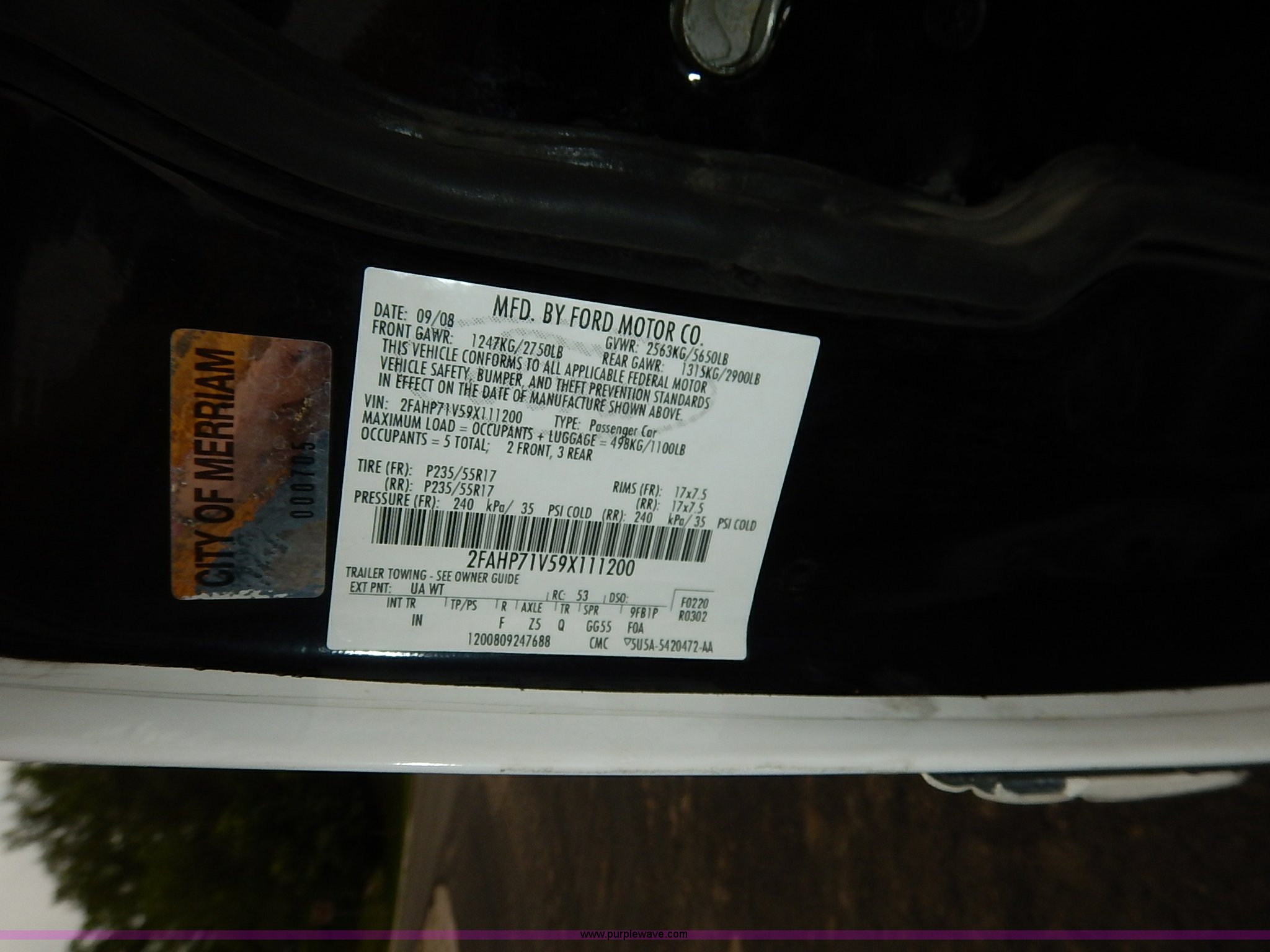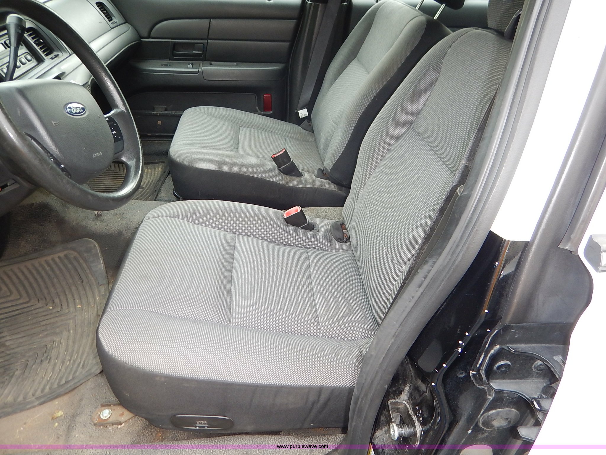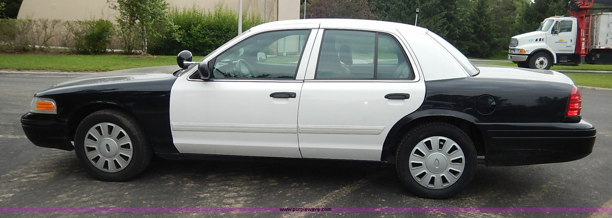 Purple Wave is selling a used Passenger Vehicle in Kansas. This item is a 2009 Ford Crown Victoria Police Interceptor with the following: 95,062 miles on odometer, 4.6L V8 SOHC 16V FFV gas engine, Automatic transmission, AC and heat, Tilt, Cruise, AM/FM, Power windows, locks, mirrors, and seat, Heated mirrors, Cloth front interior, Vinyl rear interior, Spotlight, Police trunk pak, Firestone 235/55R17 tires
