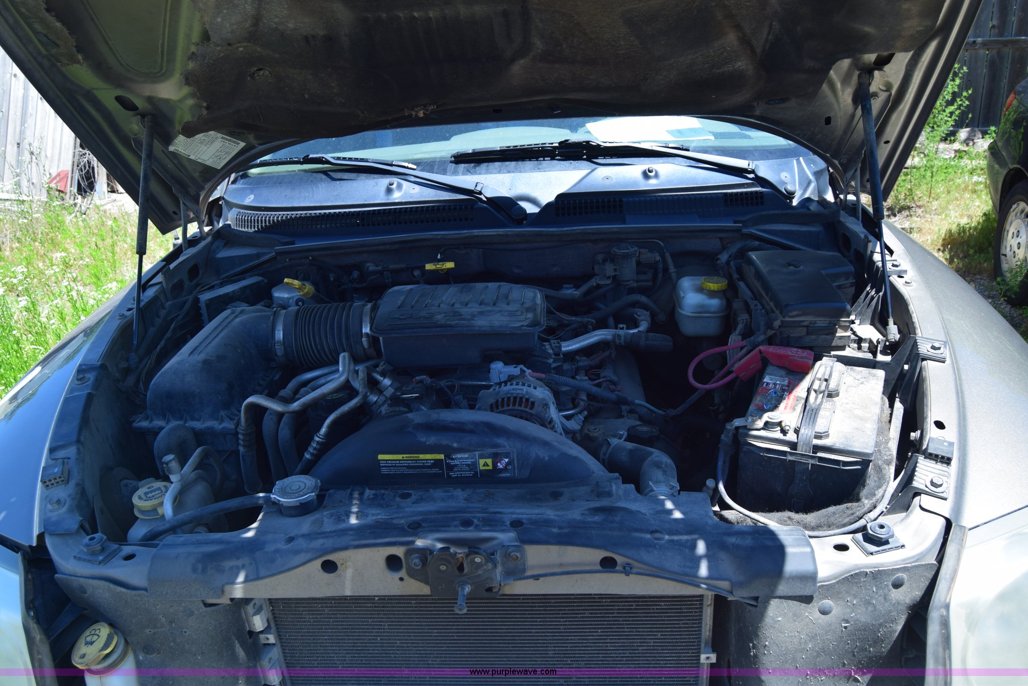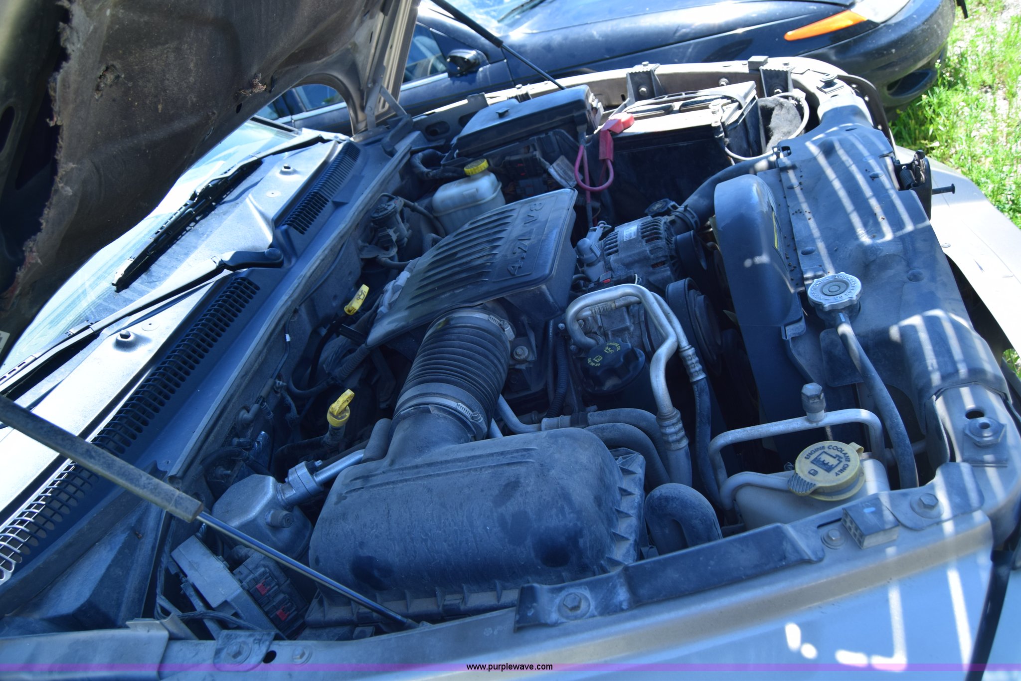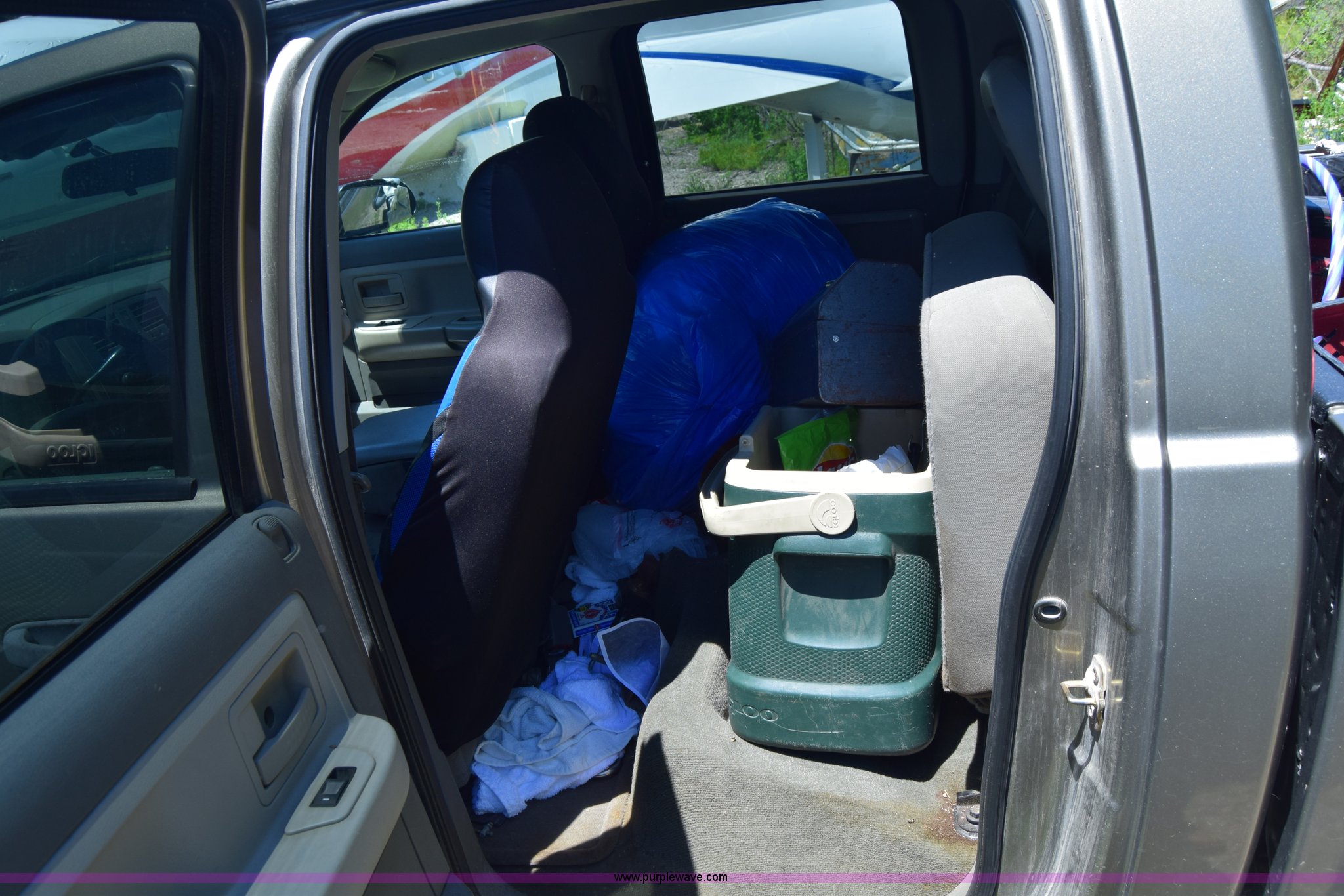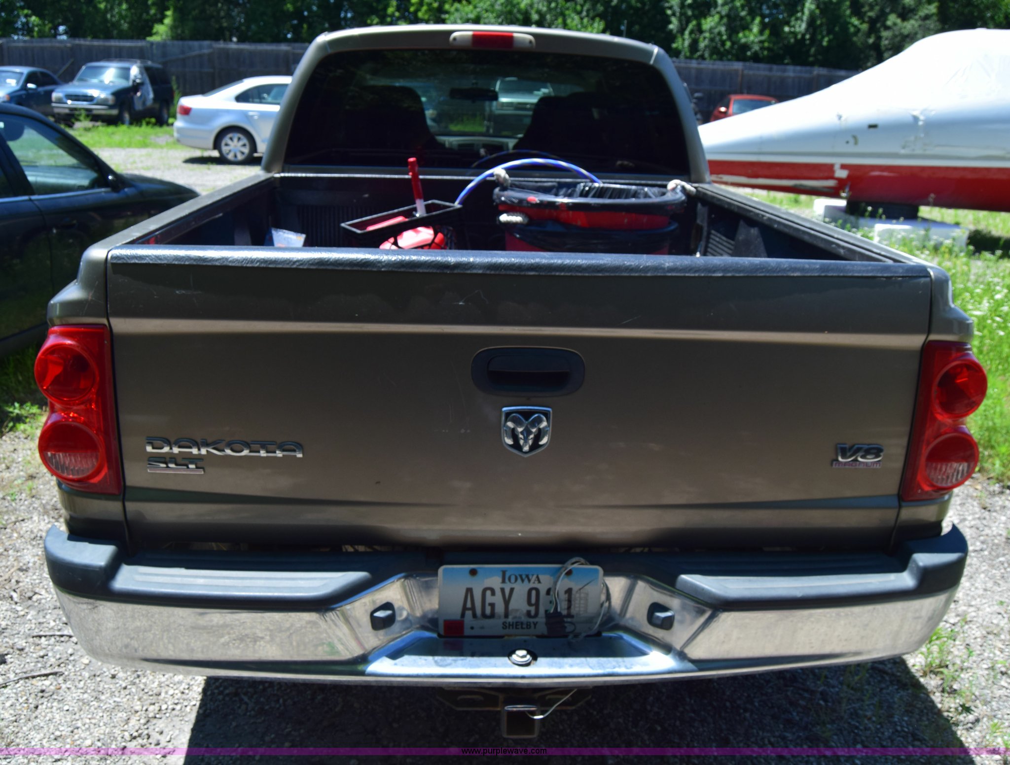 Purple Wave is selling a used Compact Pickup or Van in Kansas. This item is a 2006 Dodge Dakota SLT Quad Cab pickup truck with the following: Unknown miles on odometer, 4.7L V8 SOHC 16V gas engine, Automatic transmission, Four wheel drive, AC and heat, Tilt, Cruise, AM/FM/CD, Power windows and locks, Cloth interior, Bed liner, Receiver hitch, 245/70R16 tires, Interior/exterior cosmetic damage, Dents, Scratches, Rust, Mirror damaged, Front bumper damage, Right fender damage, Battery dead, Contents included, Unknown operating condition