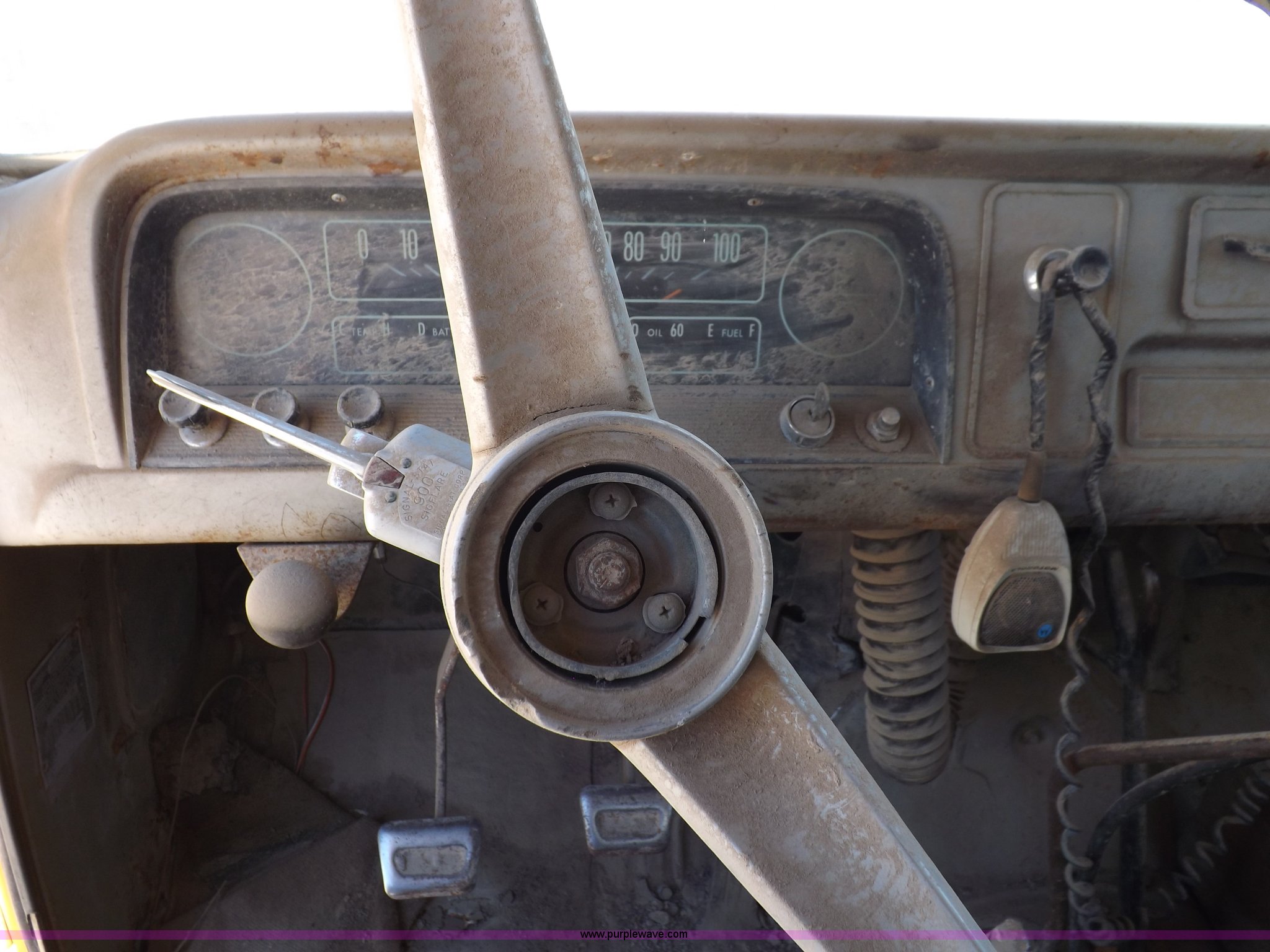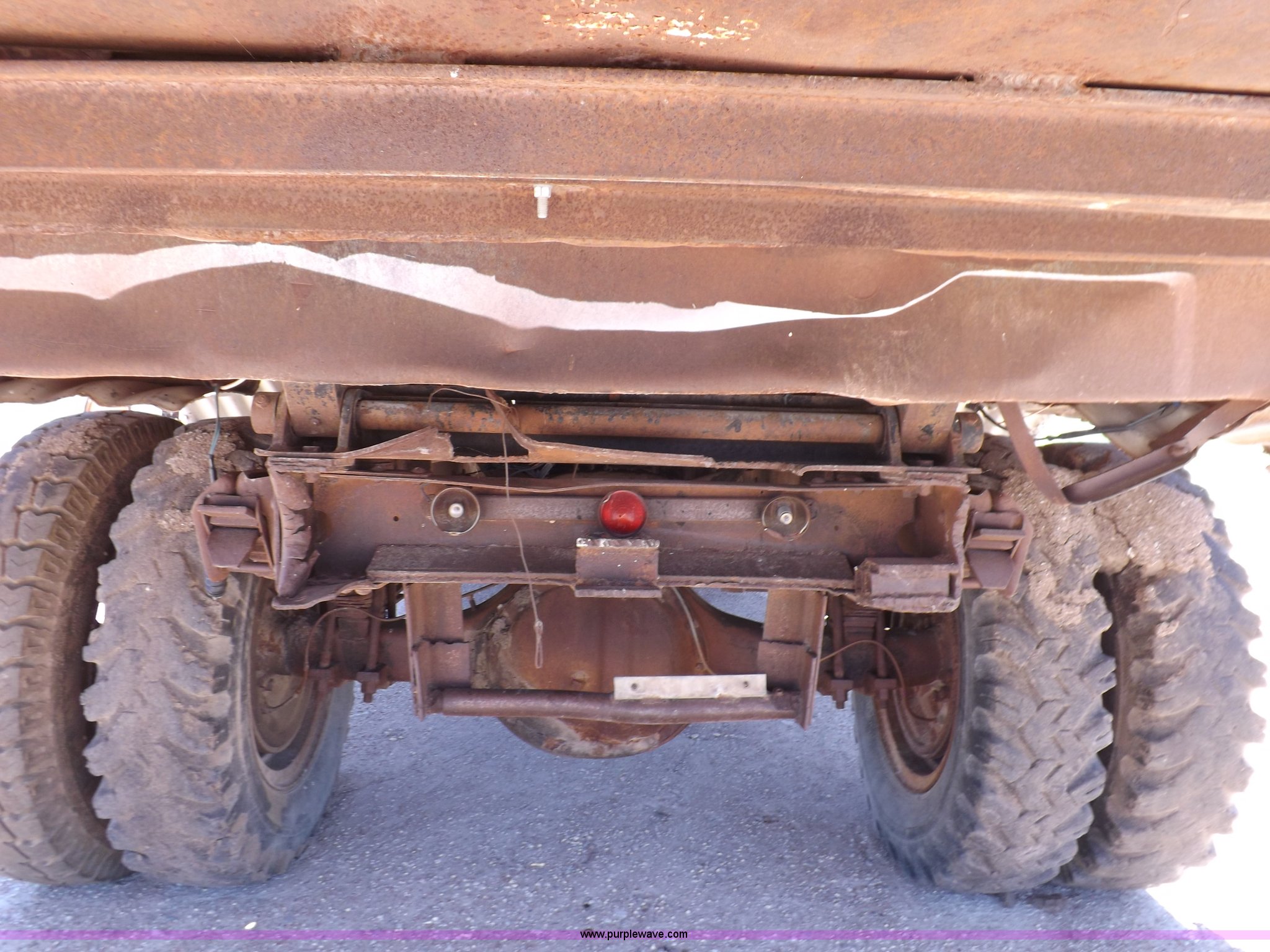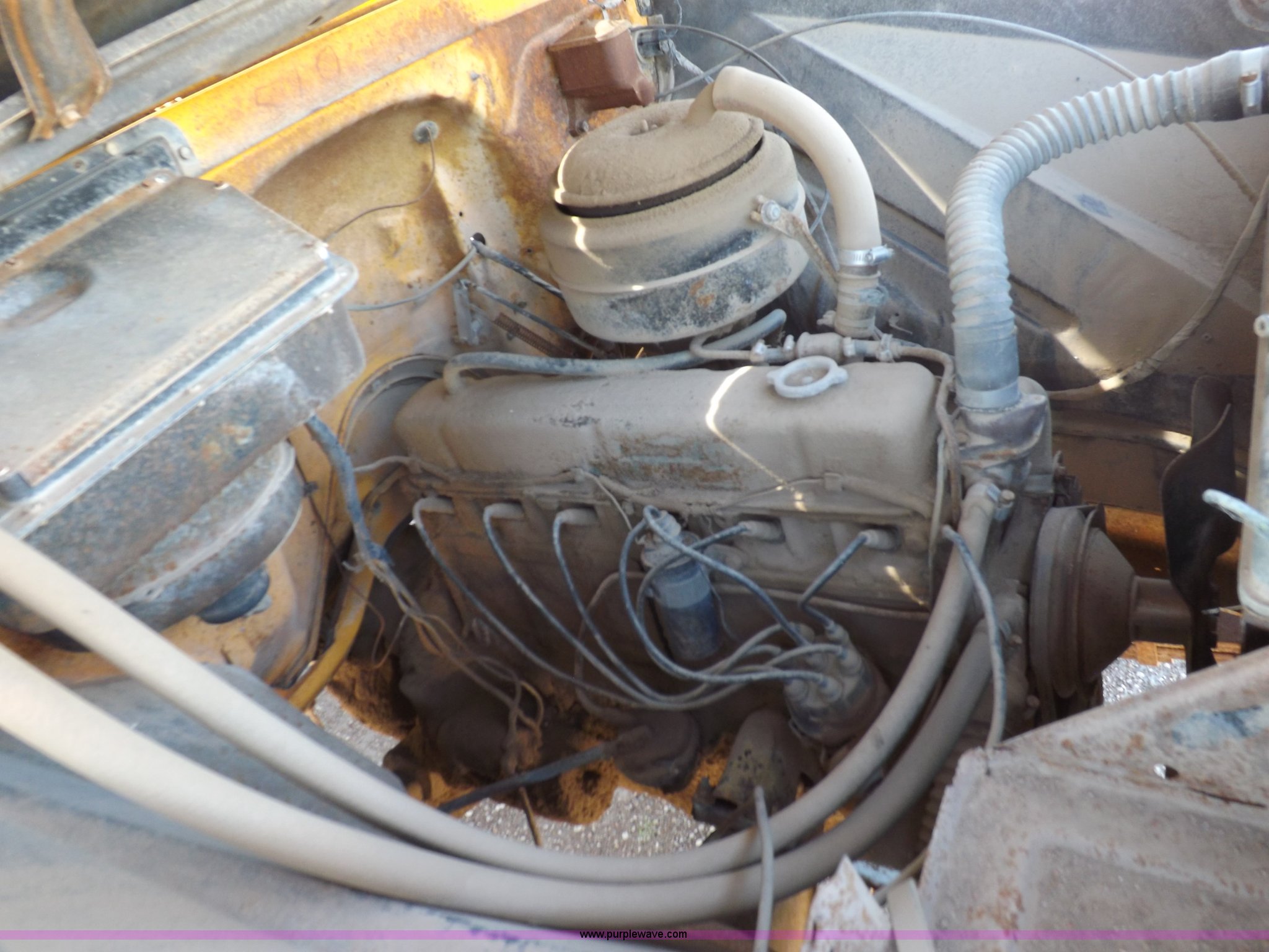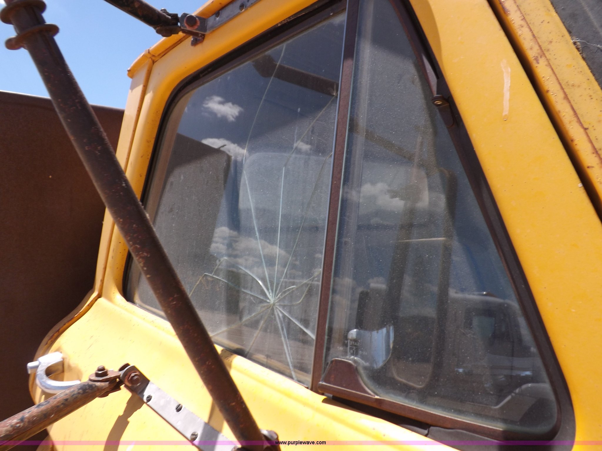 Purple Wave is selling a used Construction Dump Truck in Kansas. This item is a 1965 Chevrolet C60 dump truck with the following: 77,857 miles on odometer, Chevrolet six cylinder gas engine, Four speed manual transmission, Two speed rear end, PTO, 10'L x 7'W steel dump bed, 34"H sides, Single ram hoist, Manual end gate, Dual fuel tanks, Spring suspension, Hydraulic brakes, 156" wheelbase, 8.250-20 tires, Interior/exterior cosmetic damage, Windshield broken, Right side door glass broken, Hood sprung, Dents, Rust, Non-operational unit, Must be towed or hauled