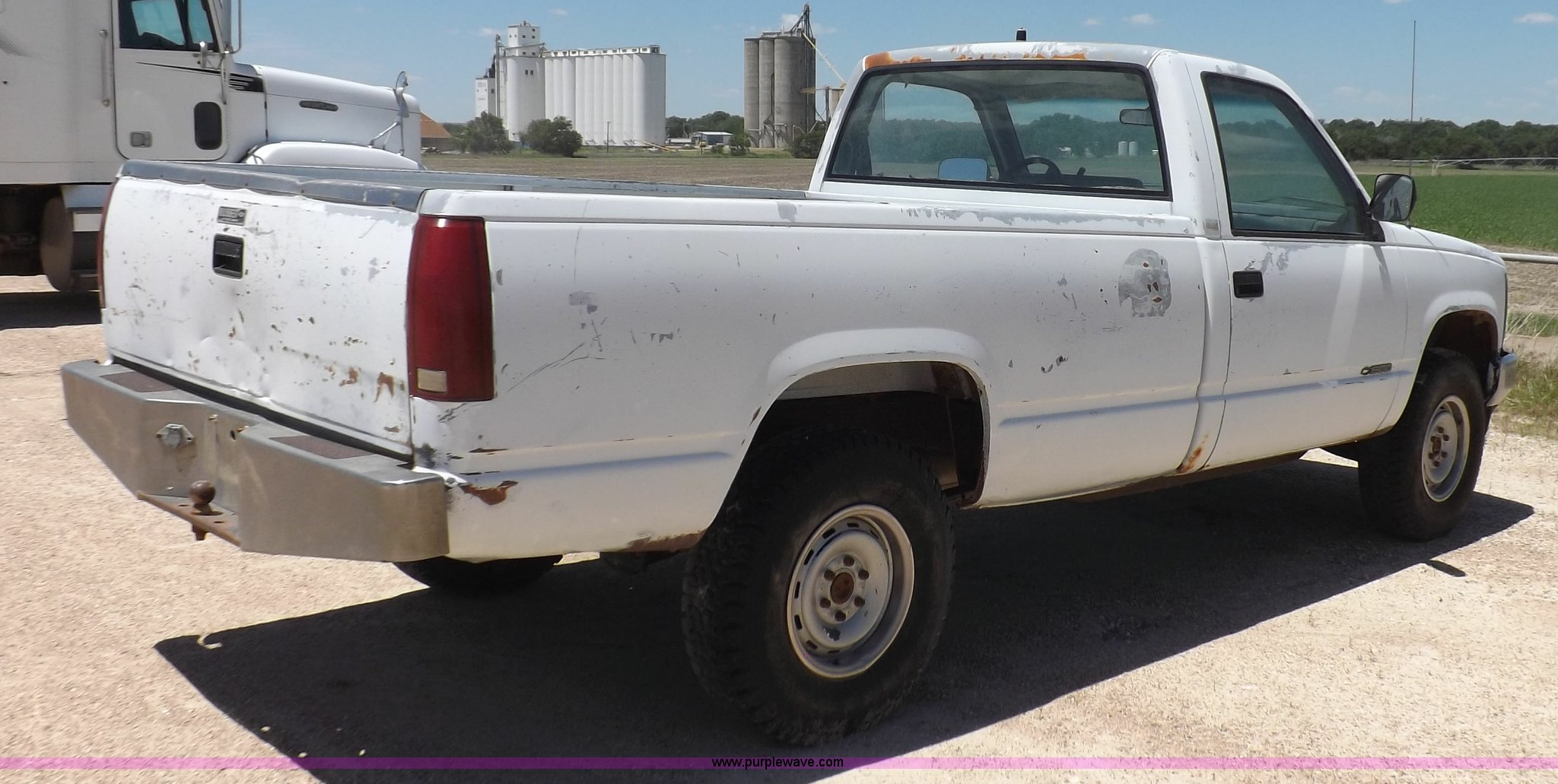 Purple Wave is selling a used 1/2 Ton Pickup or Van in Kansas. This item is a 1989 Chevrolet Cheyenne 1500 pickup truck with the following: 142,612 miles on odometer, 5.7L V8 OHV 16V gas engine, Automatic transmission, Four wheel drive, AC and heat, AM/FM, Manual windows and locks, Vinyl interior, Trailer wiring, 235/85R16 tires, Interior/exterior cosmetic damage, Paint damage, Seat damage, Chipped windshield, Headliner loose, Rust, Fuel pump needs to be replaced, Non-operational unit