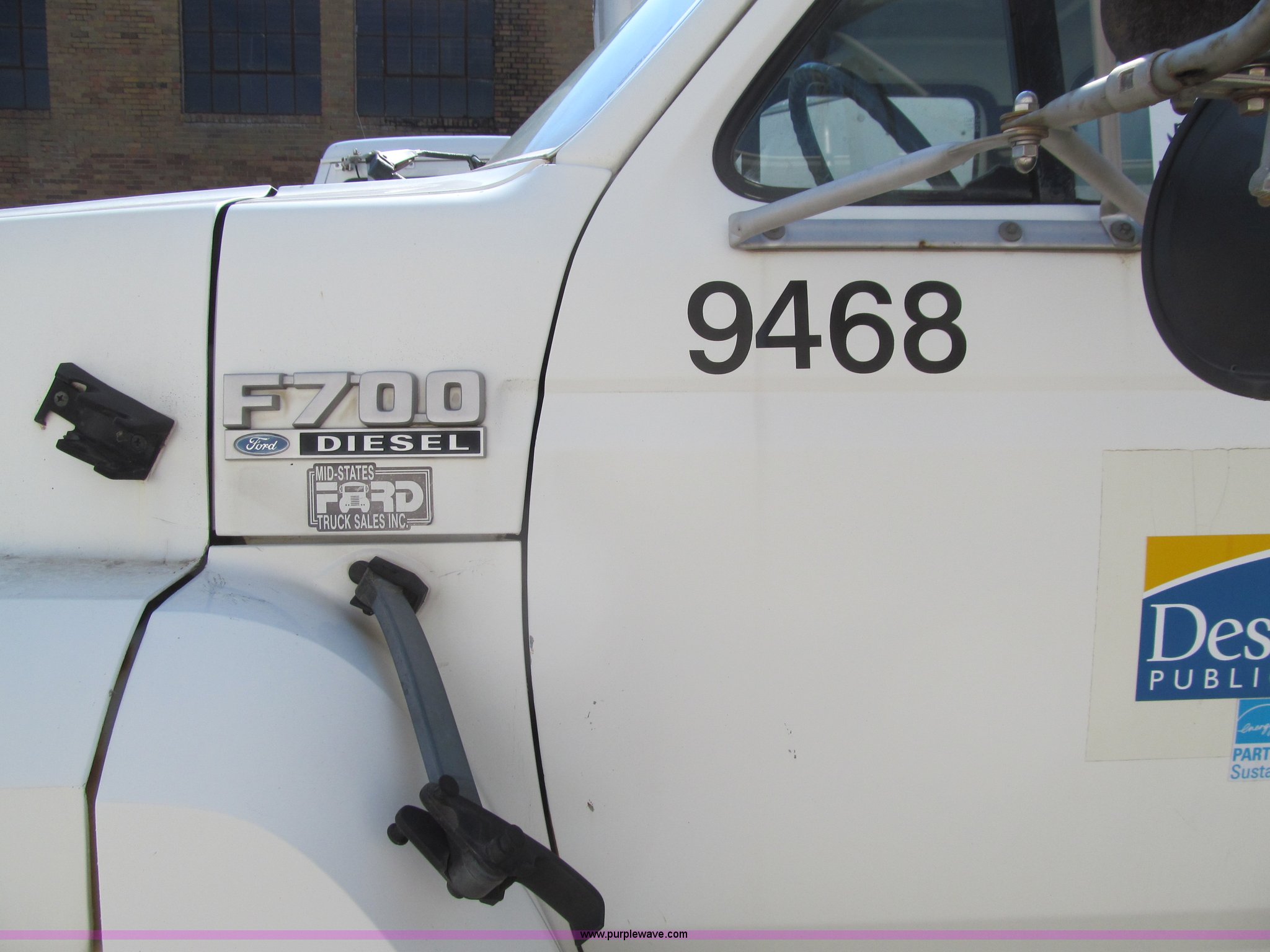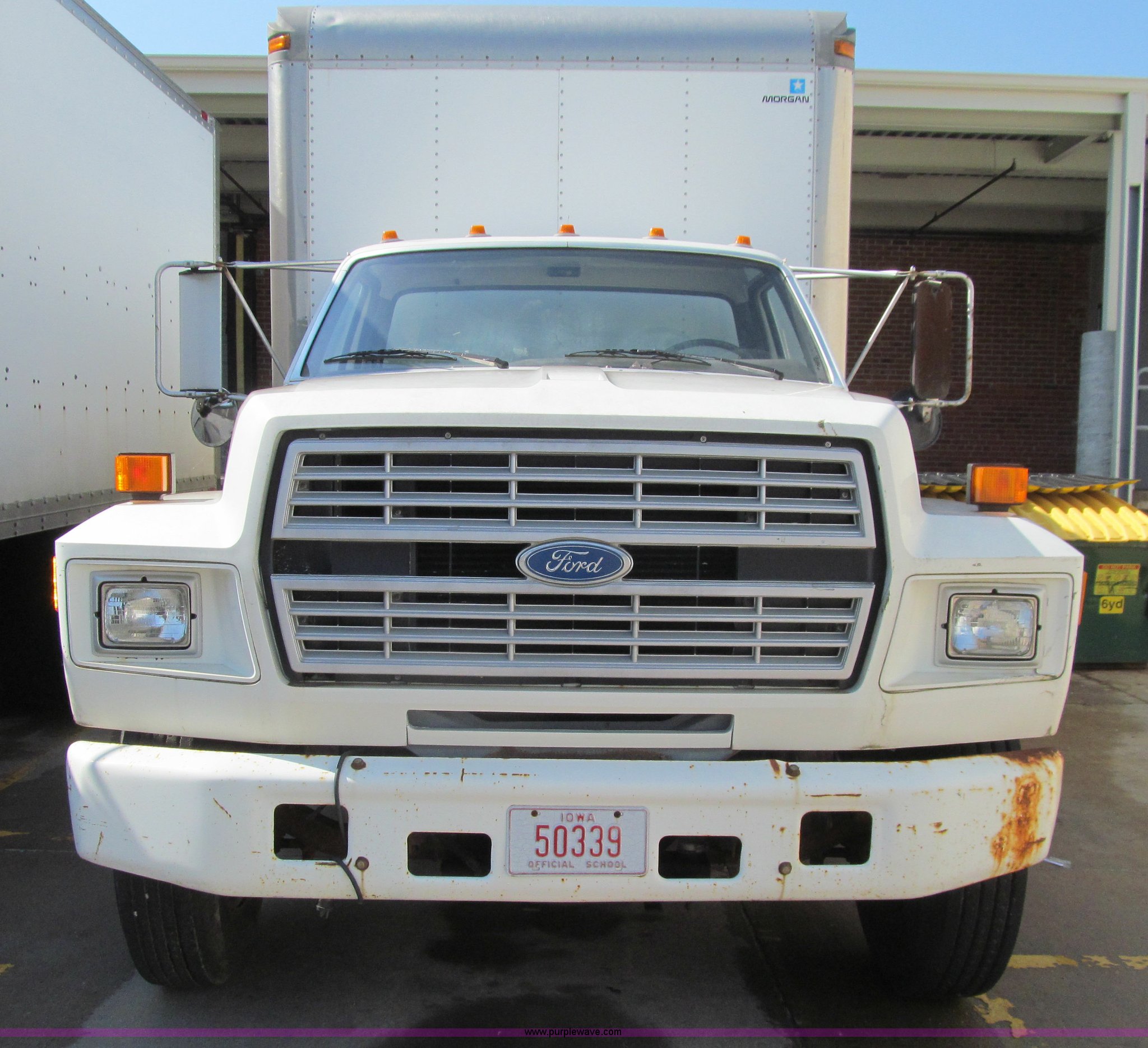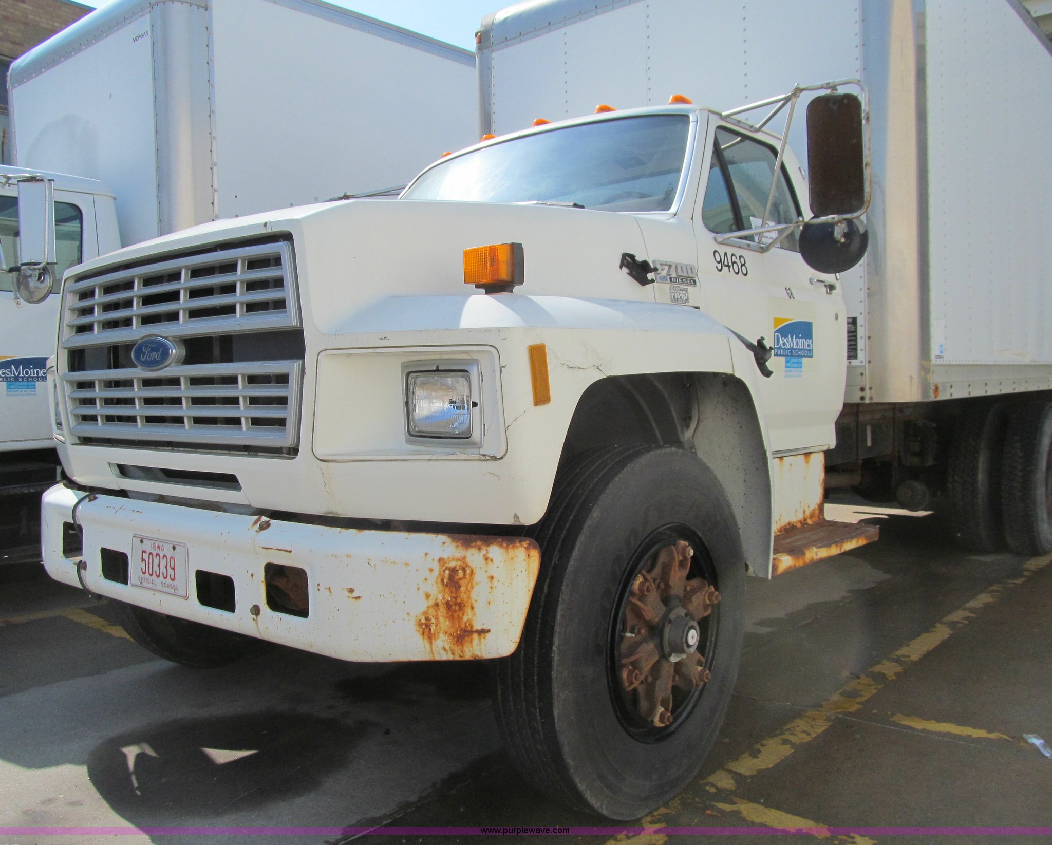 1994 Ford F700 box truck. 95,942 miles on odometer Miles may vary, still in use, Cummins ISB 5.9L L6 turbo diesel engine 175 HP, Automatic transmission, Heat, Block heater, Morgan GVSD08514096 box 14.5'L x 8'W, Wood floor, Swing side door, Roll up rear door, Level lift hydraulic tailgate, Serial 877002, Bendix air dryer, Spring suspension, Air brakes, 189" wheelbase, Firestone 10R22.5 front tires, Goodyear 10R22.5 rear tires, GVWR 22,000 lbs, Business band radio not included, Battery box cover missing, Box contents not included, Unit# 9468. Seller is a government entity who will be assigning and distributing the title. Please contact the seller for distribution questions. 1FDWK74C0RVA43220. Des Moines Public Schools. 1225 Second Avenue. Des Moines, IA 50310
