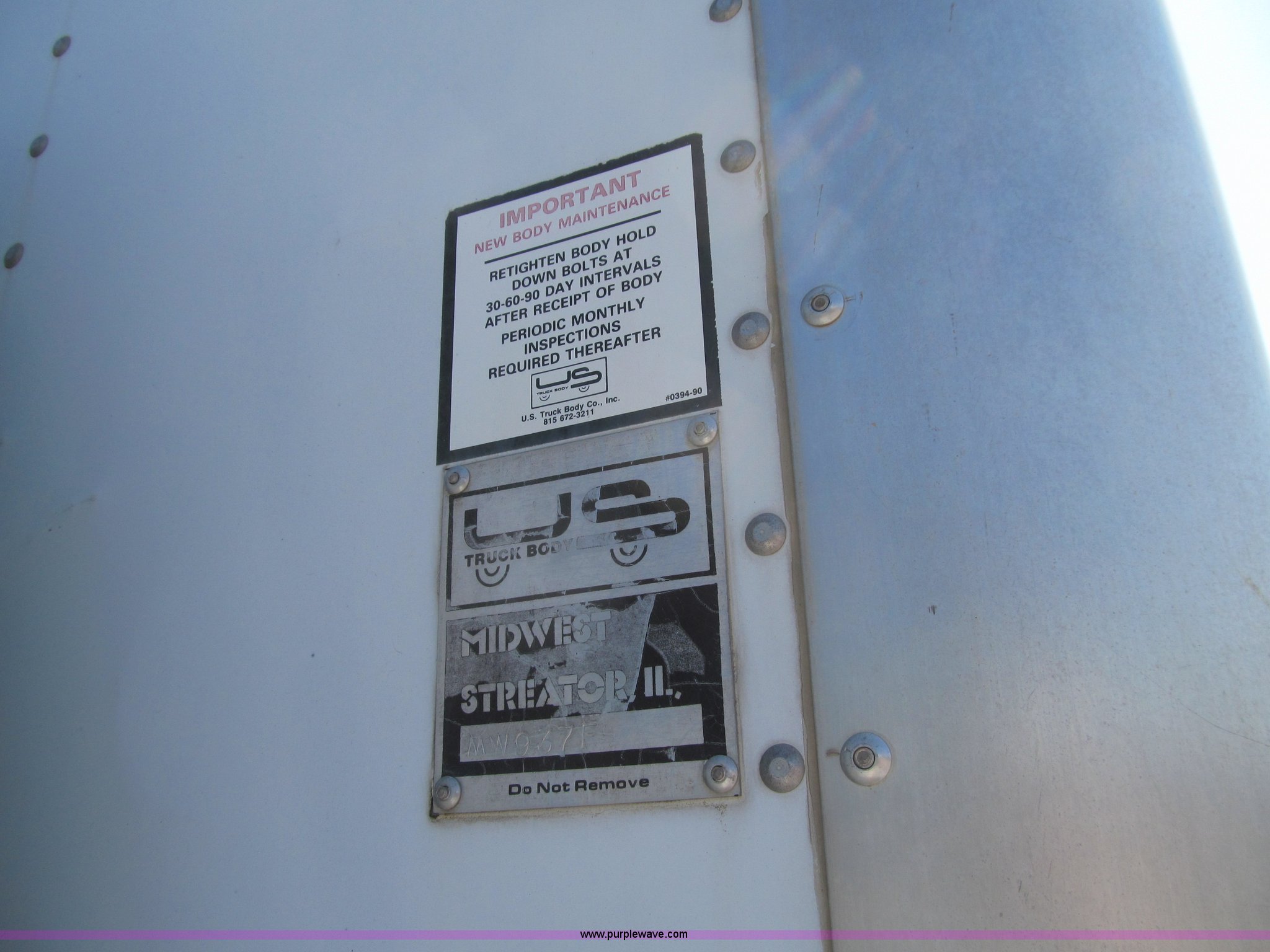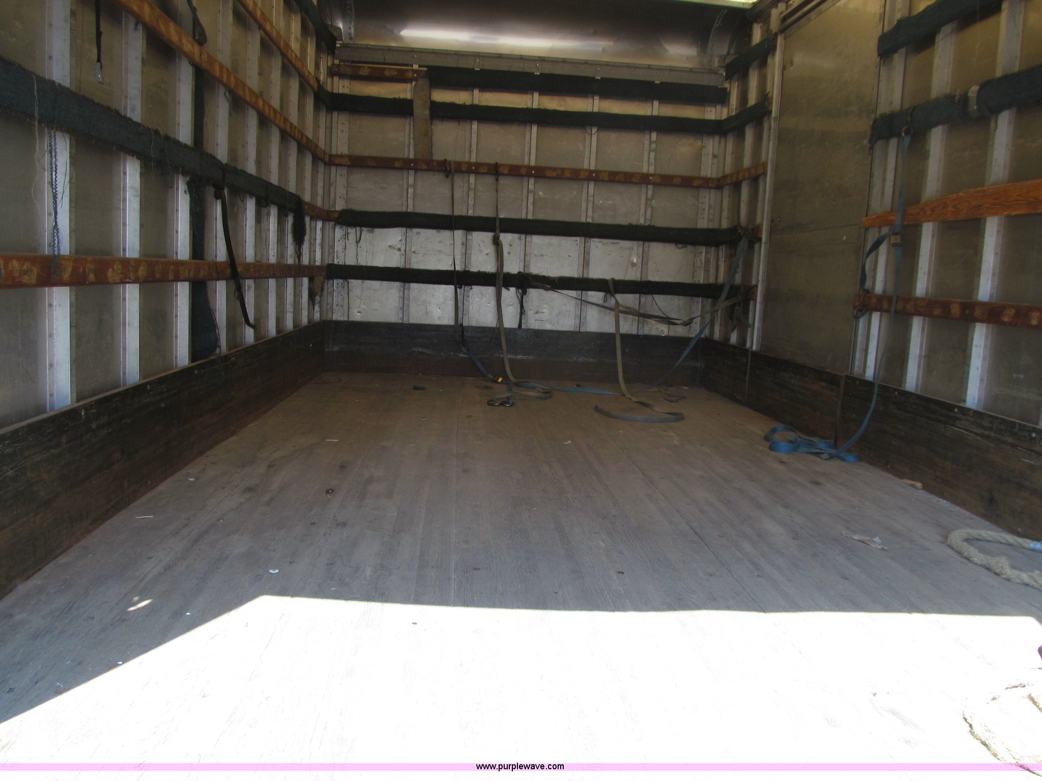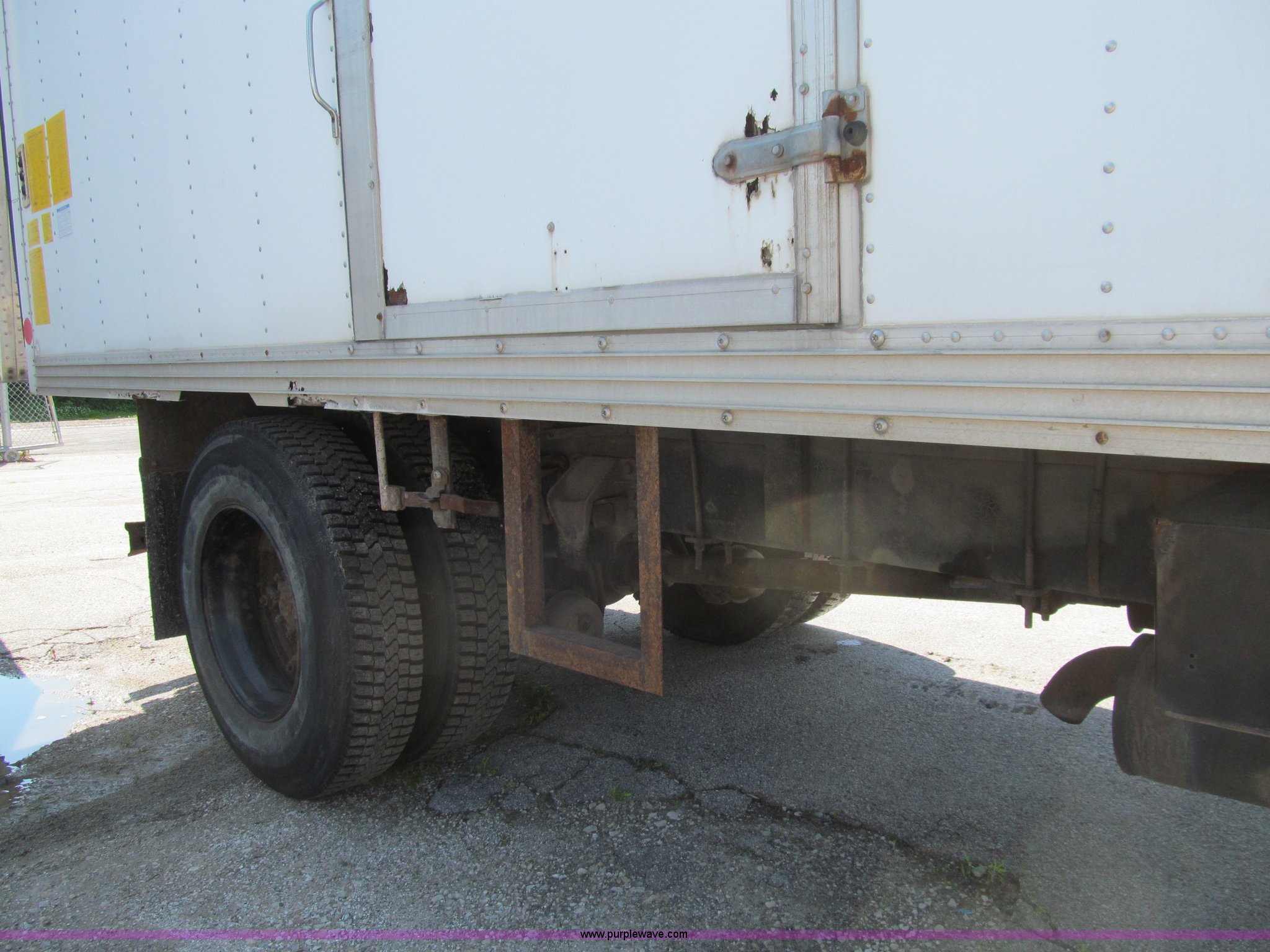 Purple Wave is selling a used Box Truck in Iowa. This item is a 1998 Ford F800 box truck with the following: 101,878 miles on odometer, Miles may vary, still in use, Cummins ISB 5.9L L6 diesel engine, Automatic transmission, Heat, Backup alarm, Block heater, US Truck box, 14.5'L x 8'W, Wood floor, Translucent box roof, Swing side door, Roll up rear door, Level lift hydraulic tailgate, 4,400 lbs capacity, Serial MW9371, Spring suspension, Air brakes, 178" wheelbase, Firestone 11R22.5 tires, GVWR 26,000 lbs, Business band radio not included, Oil leak at front of engine, Right side cosmetic damage, Unit# 9738