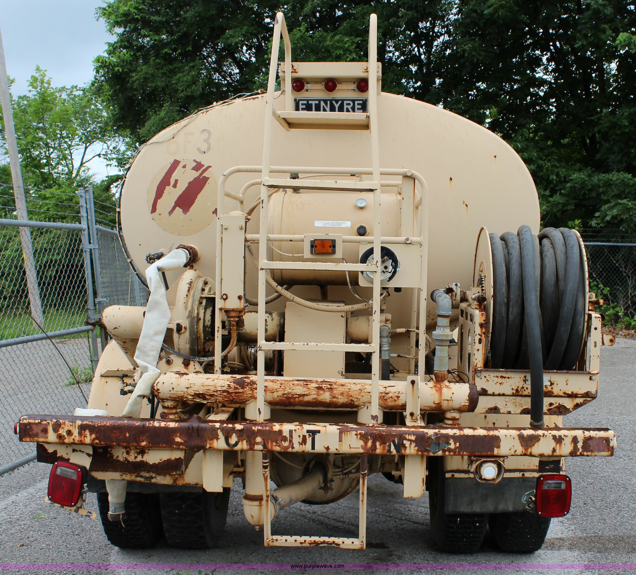 Purple Wave is selling a used Tank Truck or Water Truck in Kansas. This item is a 1994 Ford F800 tank truck with the following: 19,622 miles on odometer, 8.3L L6 diesel engine, Automatic transmission, Heat, Suspension seat, PTO, Etnyre NS/H tank, 1,900 gallon capacity, Serial L-2270, Rear hose reel, Front and side discharge, Hydraulic driven pump, Spring suspension, Air brakes, 10.00R20 tires, Unit# 1005