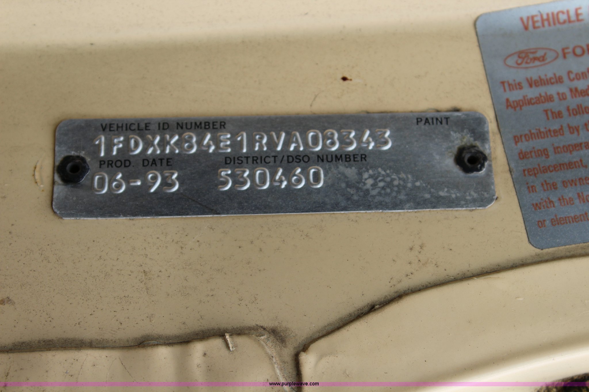 1994 Ford F800 tank truck. 19,622 miles on odometer, 8.3L L6 diesel engine, Automatic transmission, Heat, Suspension seat, PTO, Etnyre NS/H tank 1,900 gallon capacity, Serial L-2270, Rear hose reel, Front and side discharge, Hydraulic driven pump, Spring suspension, Air brakes, 10.00R20 tires, Unit# 1005. 1FDXK84E1RVA08343. Unified Government of Wyandotte County. 5033 State Ave. Kansas City, KS 66102