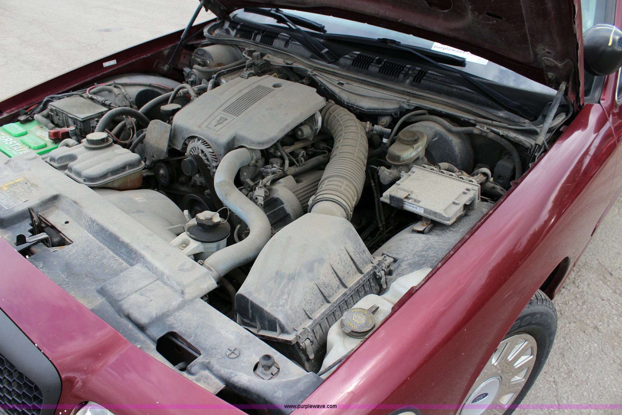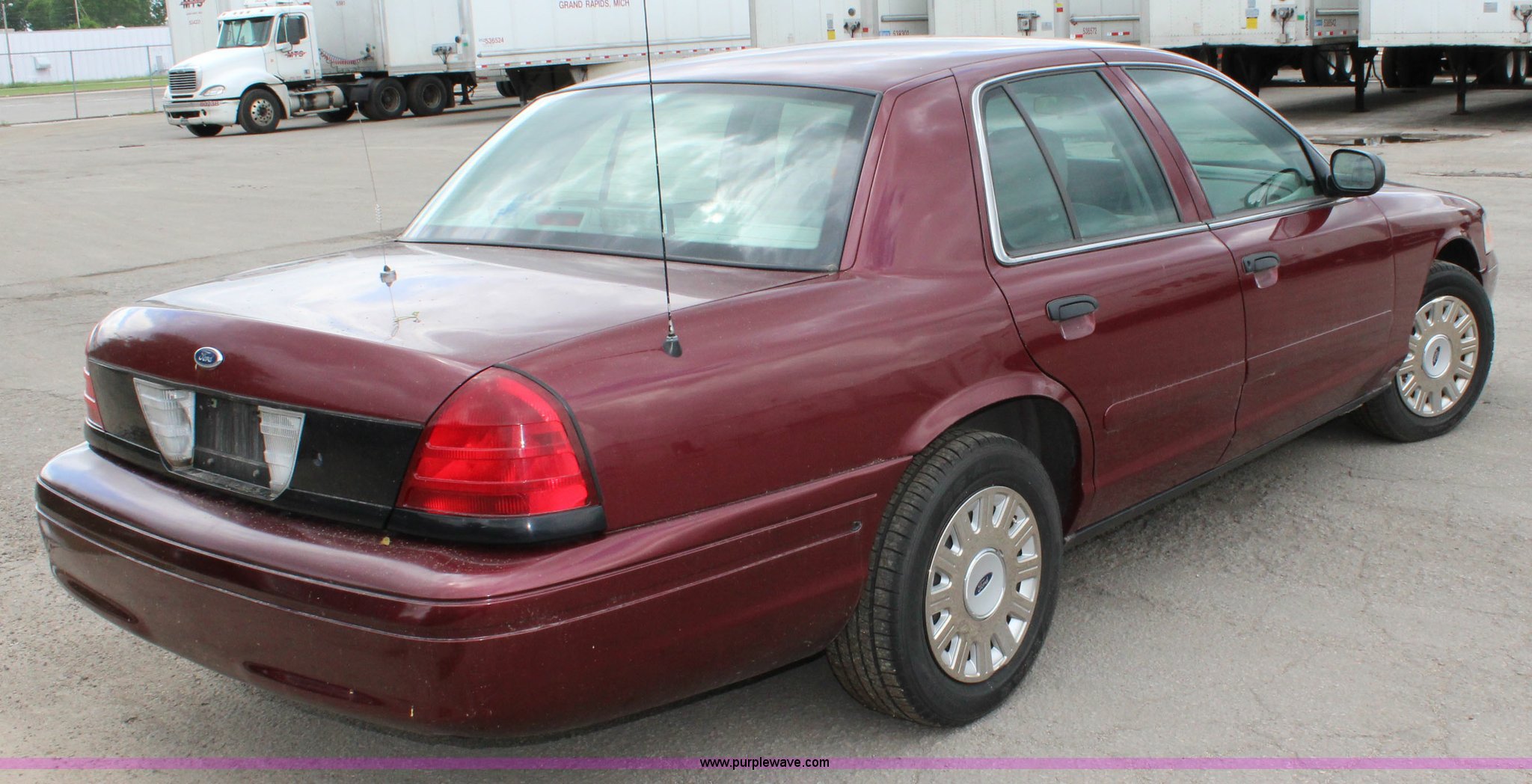Purple Wave is selling a used Passenger Vehicle in Kansas. This item is a 2005 Ford Crown Victoria Police Interceptor with the following: 184,853 miles on odometer, 4.6L V8 SOHC 16V gas engine, Automatic transmission, AC and heat, Tilt, Cruise, AM/FM/cassette, Power windows, locks, mirrors, and seat, Cloth interior, 225/60R16 tires, Lights and business radio are not included and will be removed prior to auction