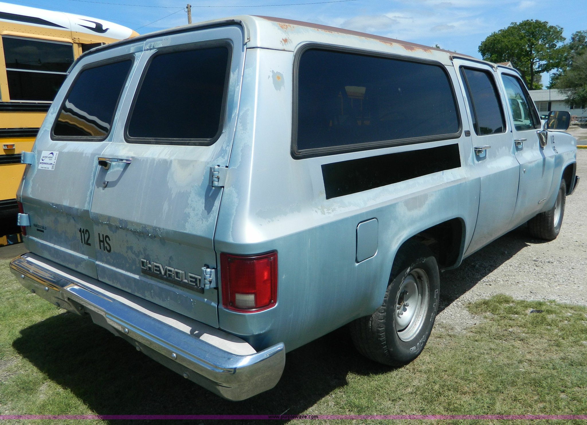 Purple Wave is selling a used 1/2 Ton Pickup or Van in Kansas. This item is a 1991 Chevrolet Suburban 1500 SUV with the following: 179,004 miles on odometer, 5.7L V8 gas engine, Automatic transmission, AC and heat, Tilt, Cruise, AM/FM, Manual windows, Power locks, Cloth interior, P235/75R15 tires, Interior/exterior cosmetic damage, Rust, Weak battery, Dash cracked