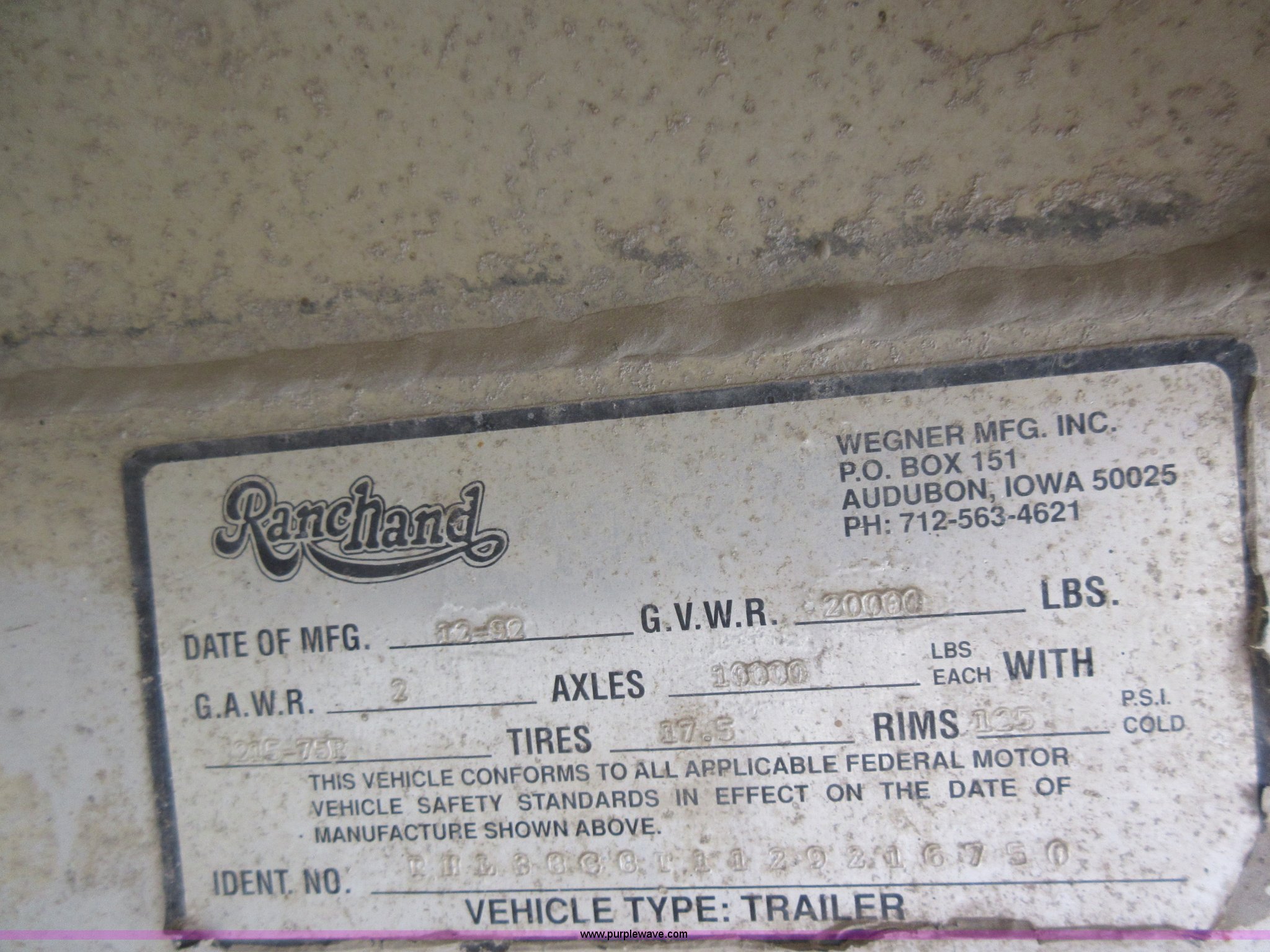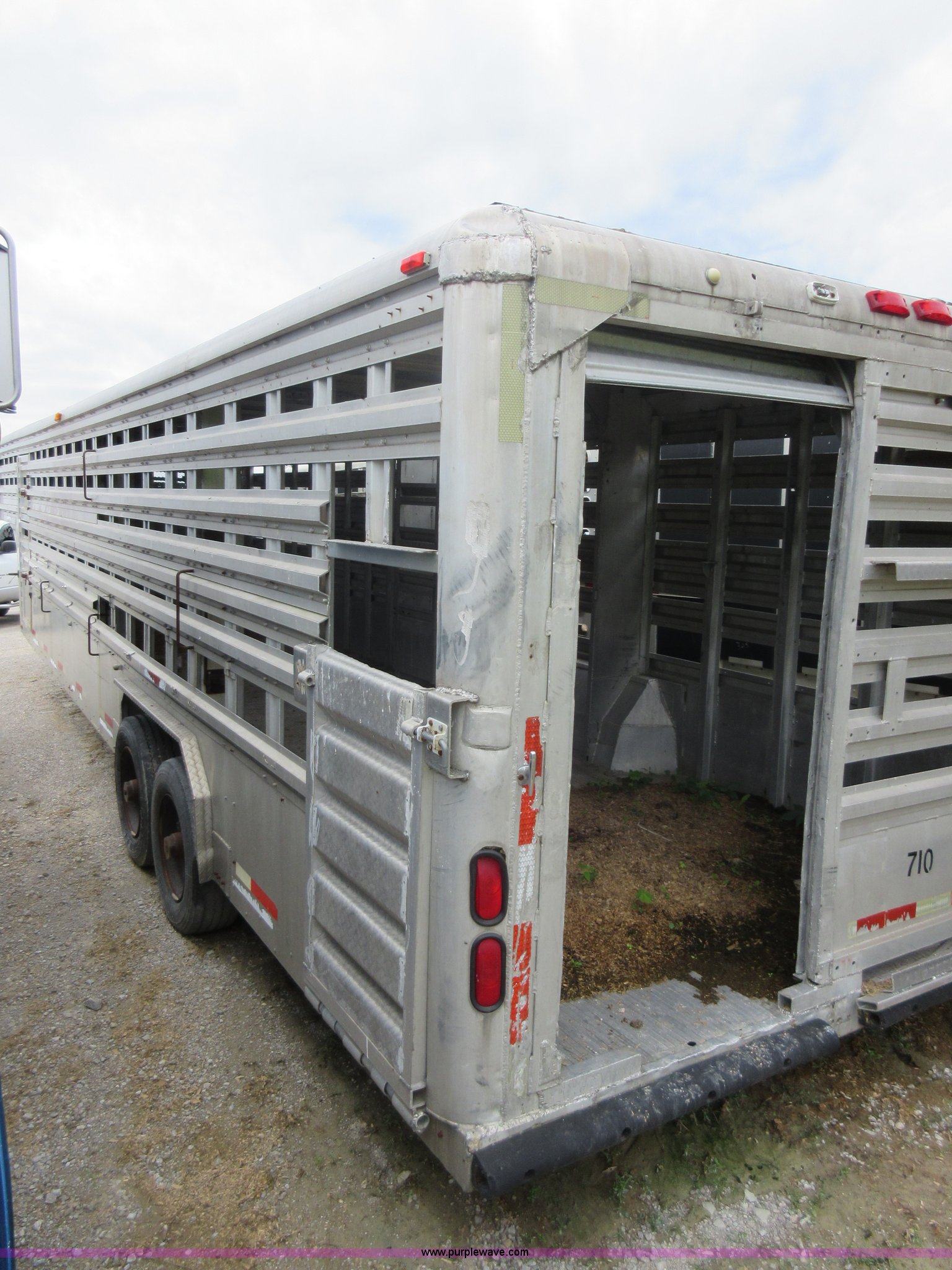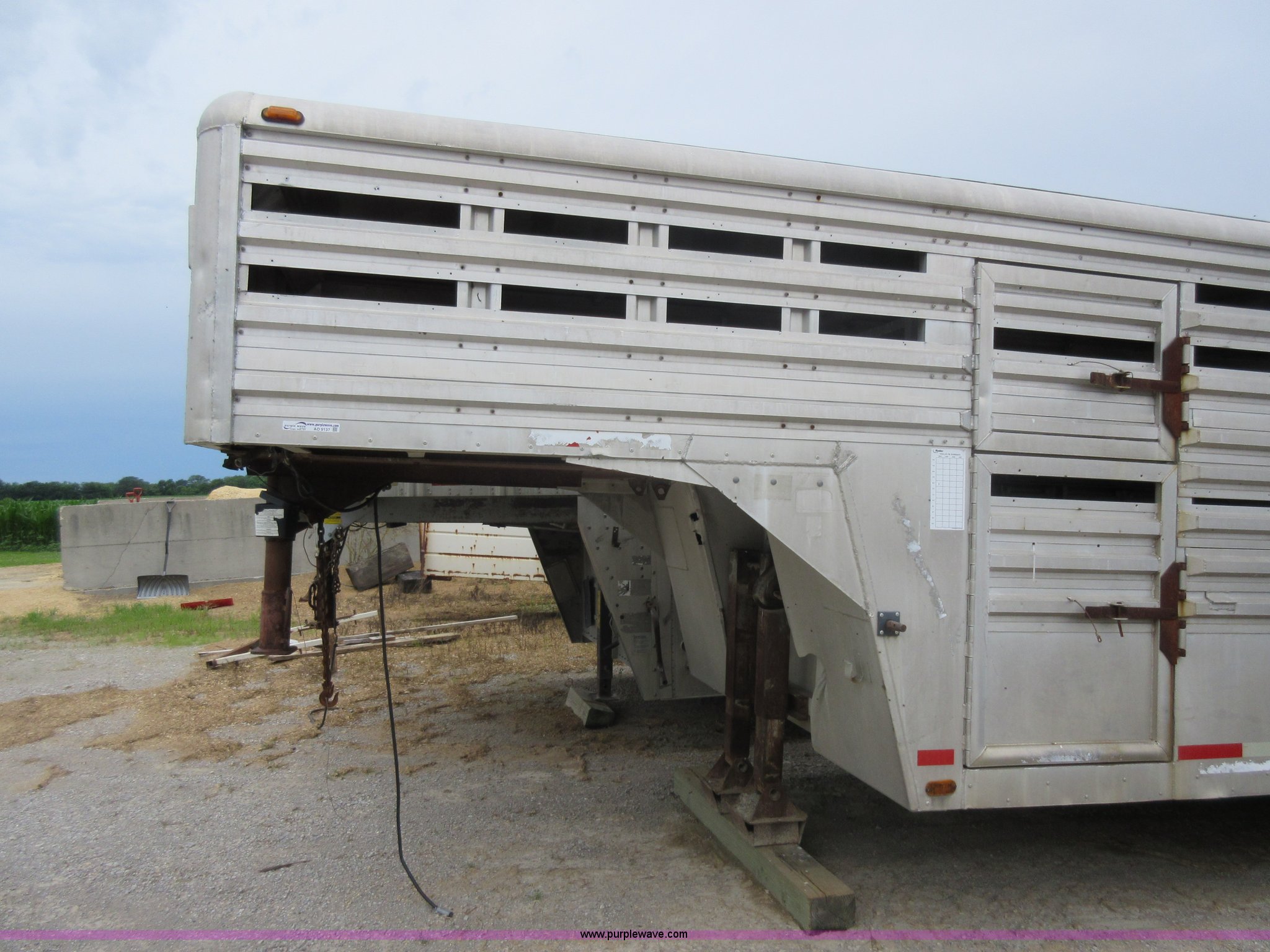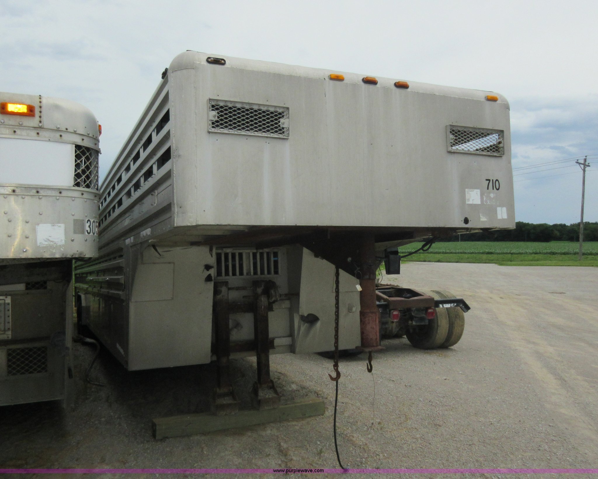 Purple Wave is selling a used Livestock Trailer in Illinois. This item is a 1992 Ranch-hand livestock trailer with the following: 37'L overall, 31'L deck, Approx. 99"W outside, Manual jack, Spring suspension, Electric brakes, 235/75R17.5 tires, GVWR 20,000 lbs, GAWR 13,000 lbs, Cosmetic damage, Hole in roof, Unit# 710