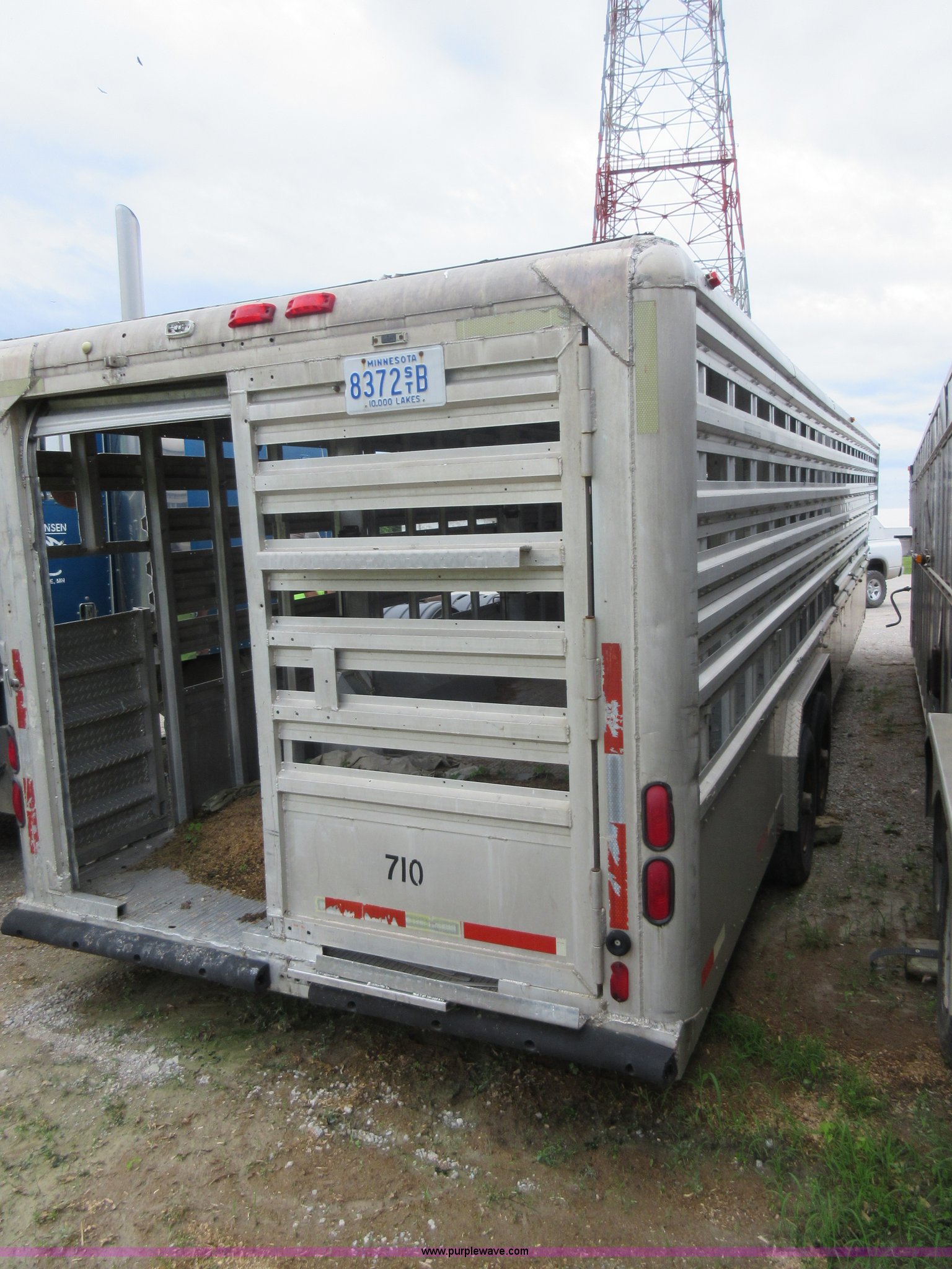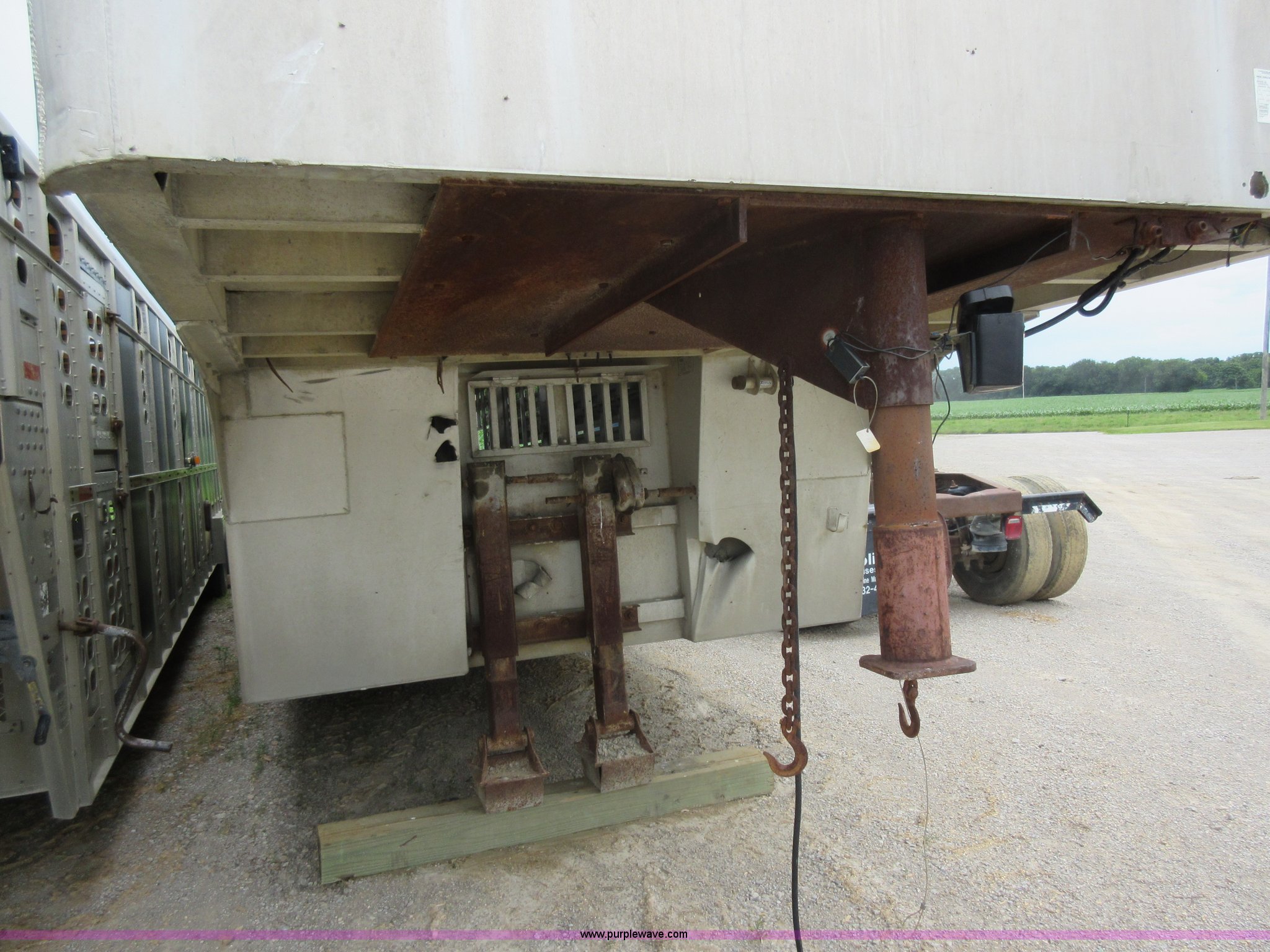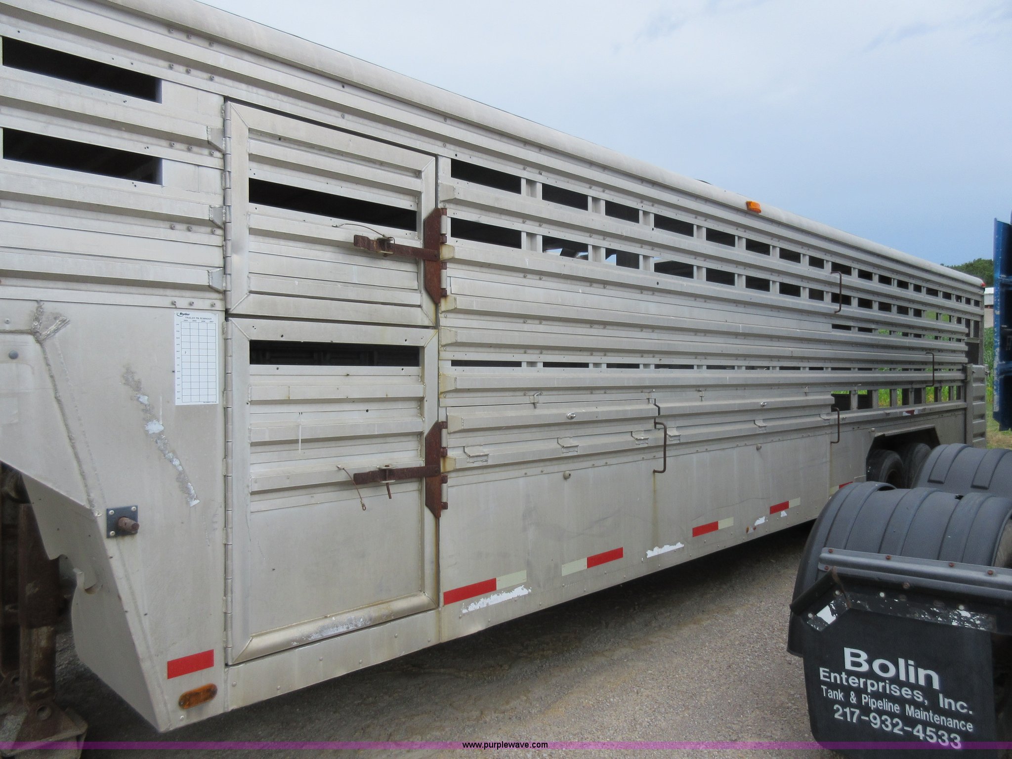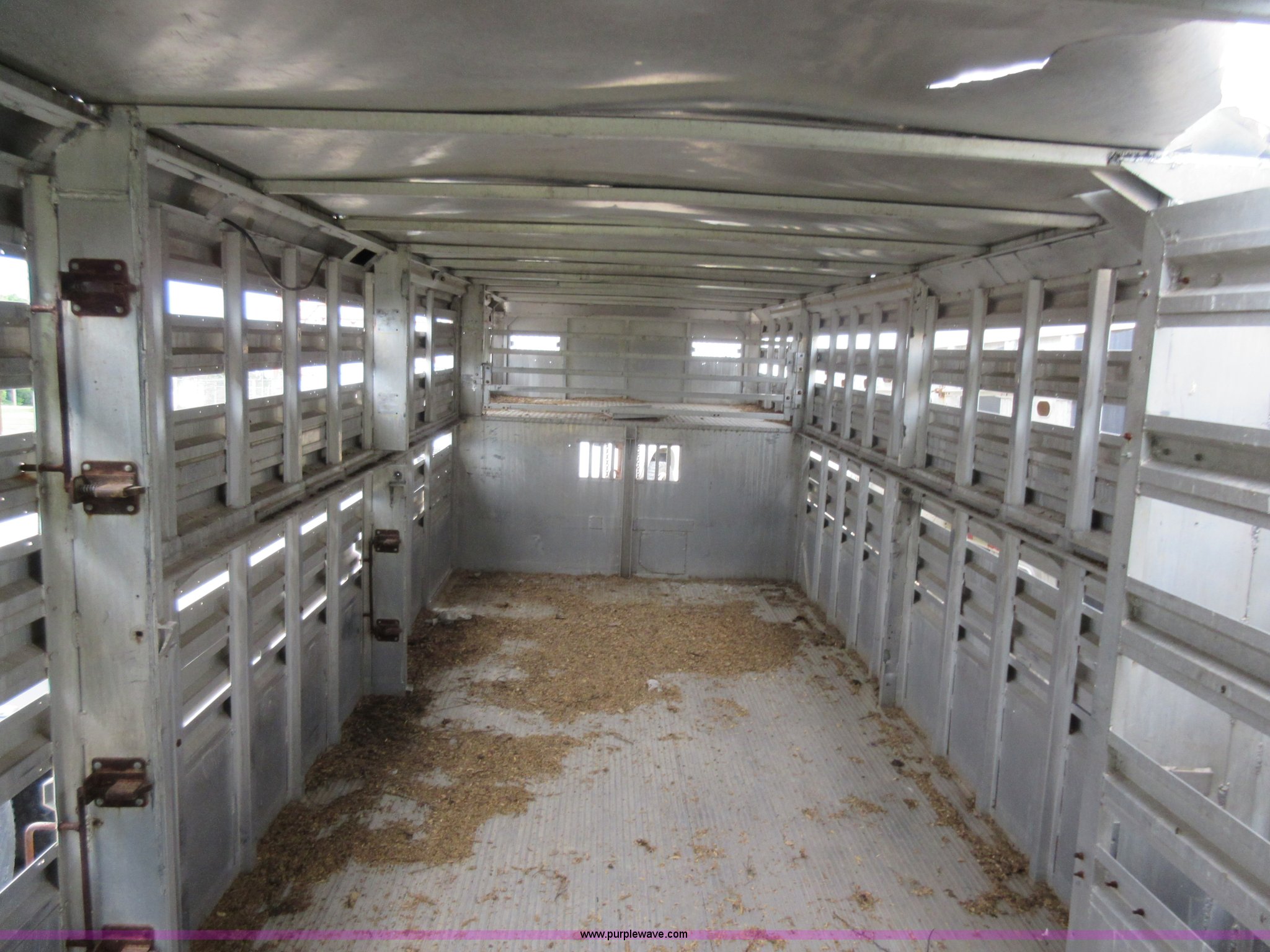 Purple Wave is selling a used Livestock Trailer in Illinois. This item is a 1992 Ranch-hand livestock trailer with the following: 37'L overall, 31'L deck, Approx. 99"W outside, Manual jack, Spring suspension, Electric brakes, 235/75R17.5 tires, GVWR 20,000 lbs, GAWR 13,000 lbs, Cosmetic damage, Hole in roof, Unit# 710