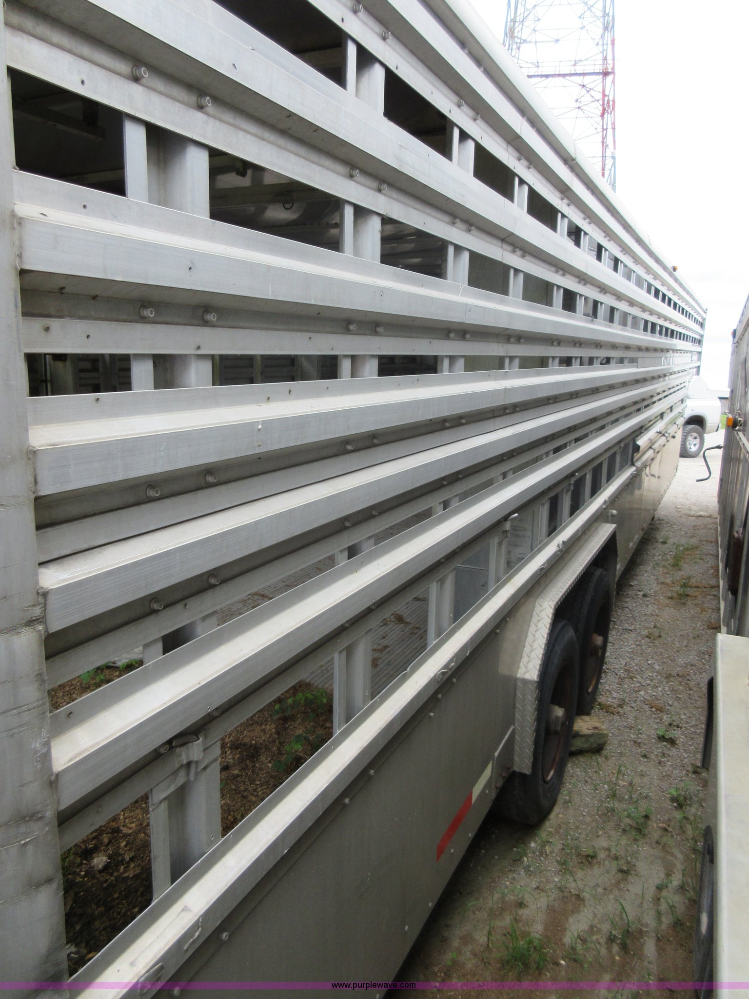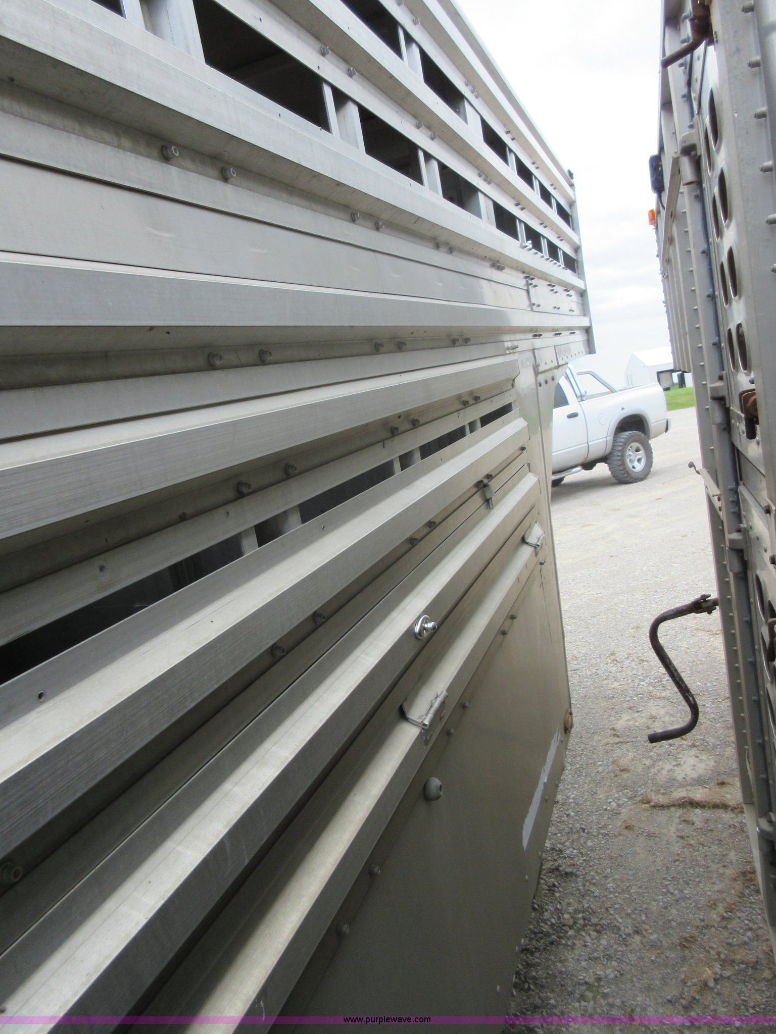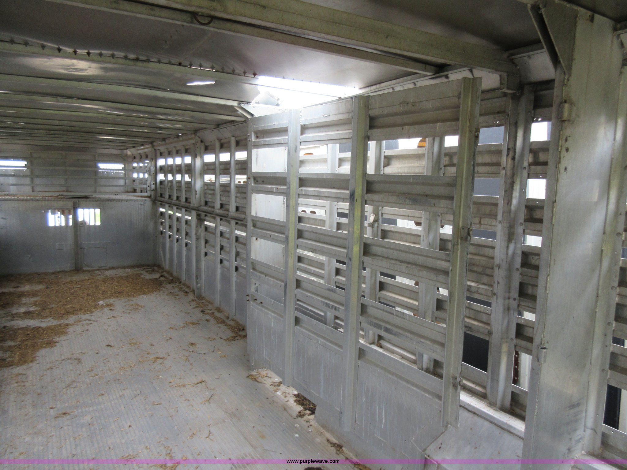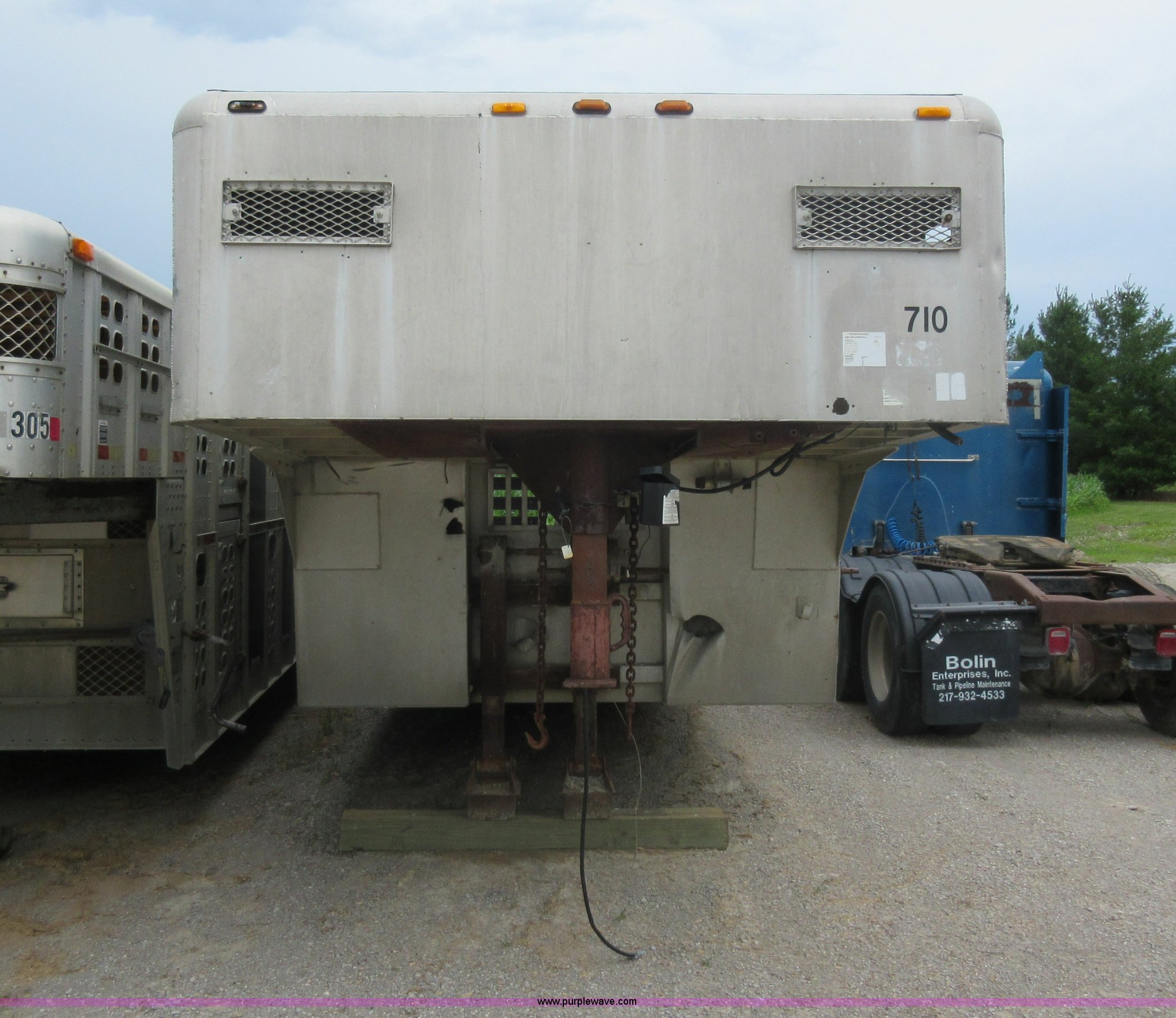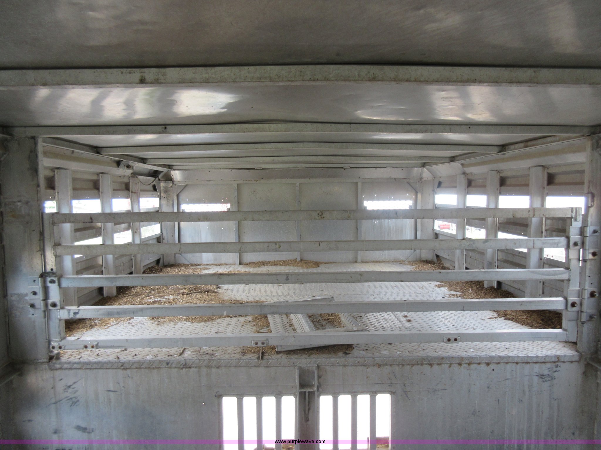 Purple Wave is selling a used Livestock Trailer in Illinois. This item is a 1992 Ranch-hand livestock trailer with the following: 37'L overall, 31'L deck, Approx. 99"W outside, Manual jack, Spring suspension, Electric brakes, 235/75R17.5 tires, GVWR 20,000 lbs, GAWR 13,000 lbs, Cosmetic damage, Hole in roof, Unit# 710