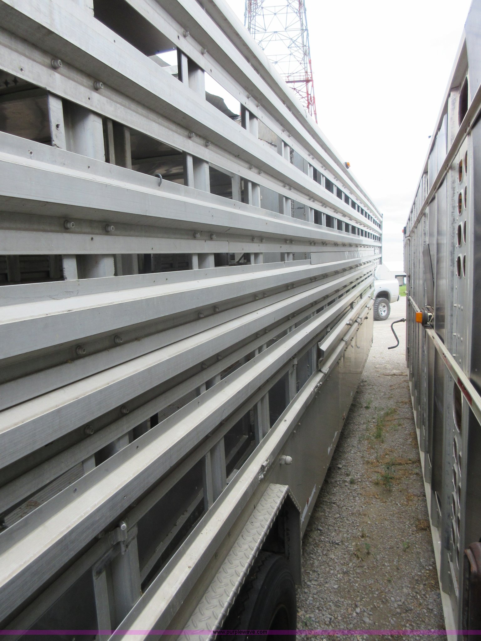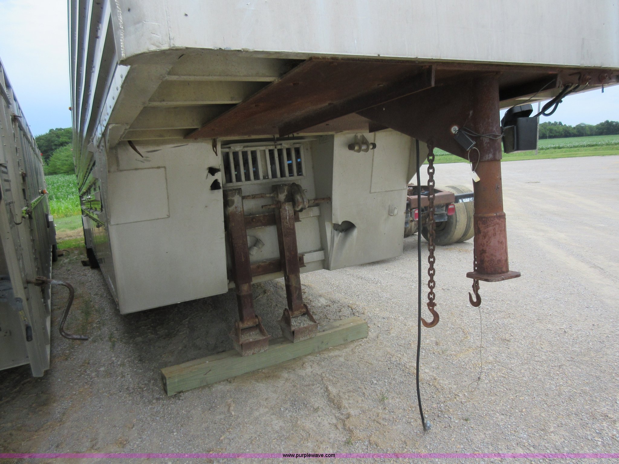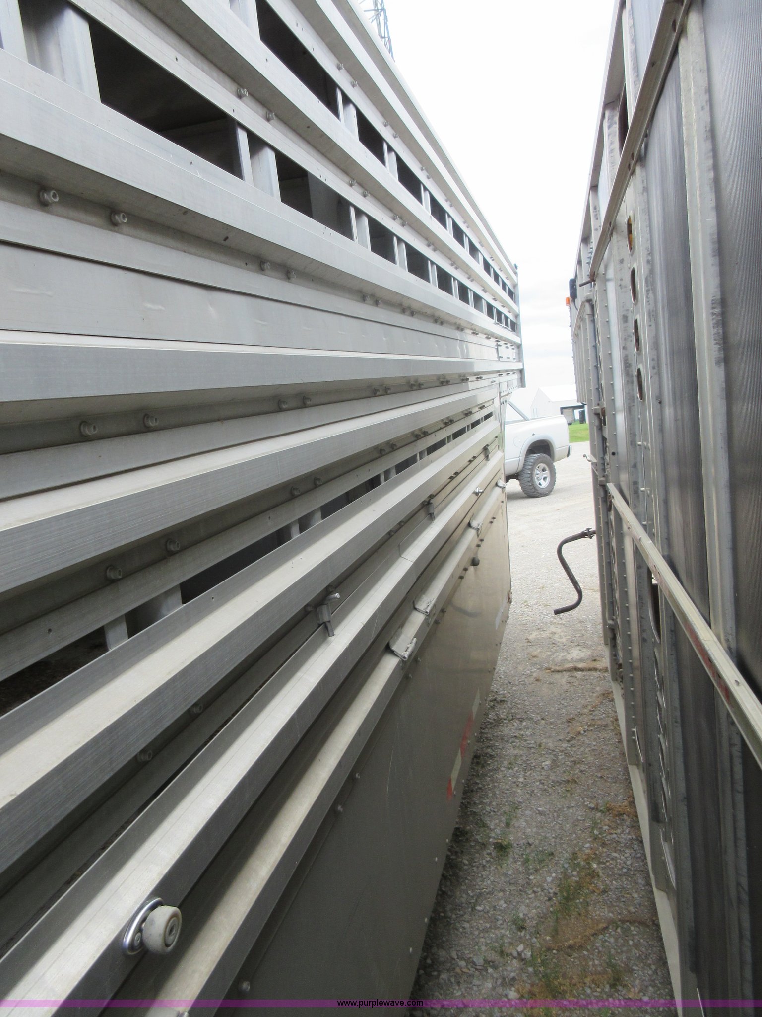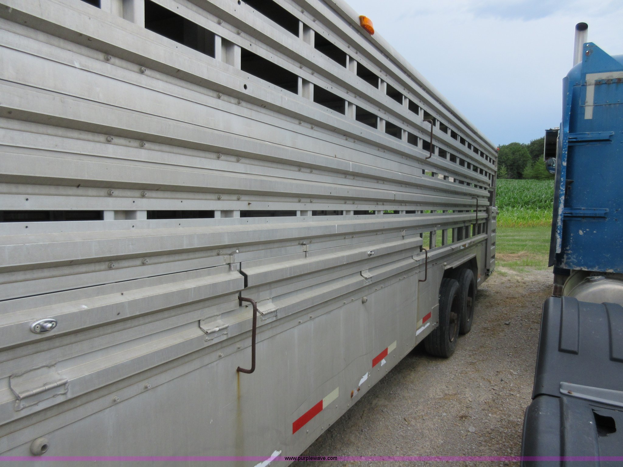 Purple Wave is selling a used Livestock Trailer in Illinois. This item is a 1992 Ranch-hand livestock trailer with the following: 37'L overall, 31'L deck, Approx. 99"W outside, Manual jack, Spring suspension, Electric brakes, 235/75R17.5 tires, GVWR 20,000 lbs, GAWR 13,000 lbs, Cosmetic damage, Hole in roof, Unit# 710
