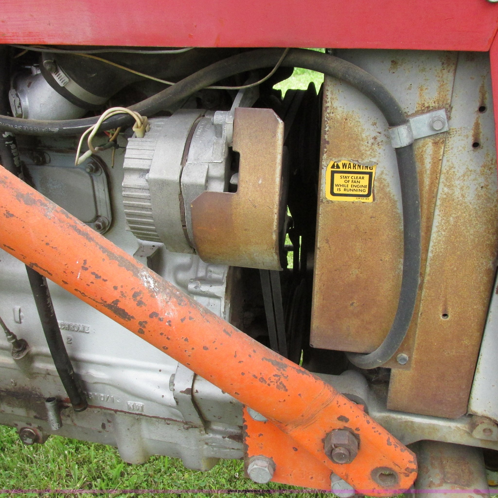 Purple Wave is selling a used Tractor in Missouri. This item is a 1979 Massey-Ferguson 285 tractor with the following: 2,759 hours on meter, Four cylinder diesel engine, Manual transmission, 3F-3R gears, Suspension seat, Loader, Toothed bucket, Lever controls, Rear bale spear, Three point, Draw bar, Auxiliary outlet, 540 PTO, 9.5L-15SL front tires, 16.9-38 rear tires, Serial 9AJ34538
